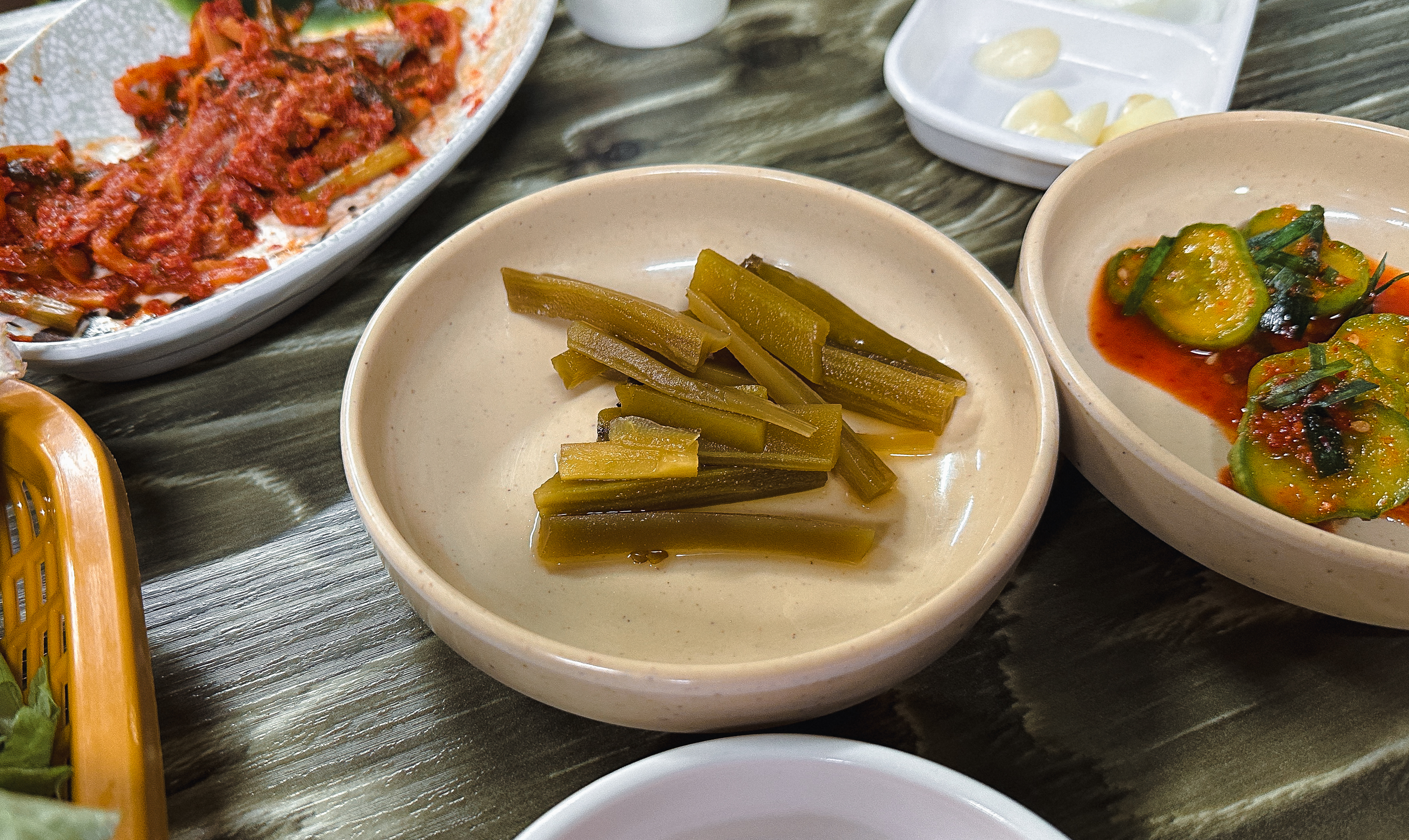 특히 같이 나온 반찬들도 하나같이 맛있었는데, 부추무침은 그때그때 양념을 하여 무쳐주셨고, 아삭한 식감의 궁채나물도 고기와 곁들이니 별미였습니다. 그밖에 오이소박이와 섞박지도 고기와 잘 어울려서 맛있게 먹을 수 있었습니다.