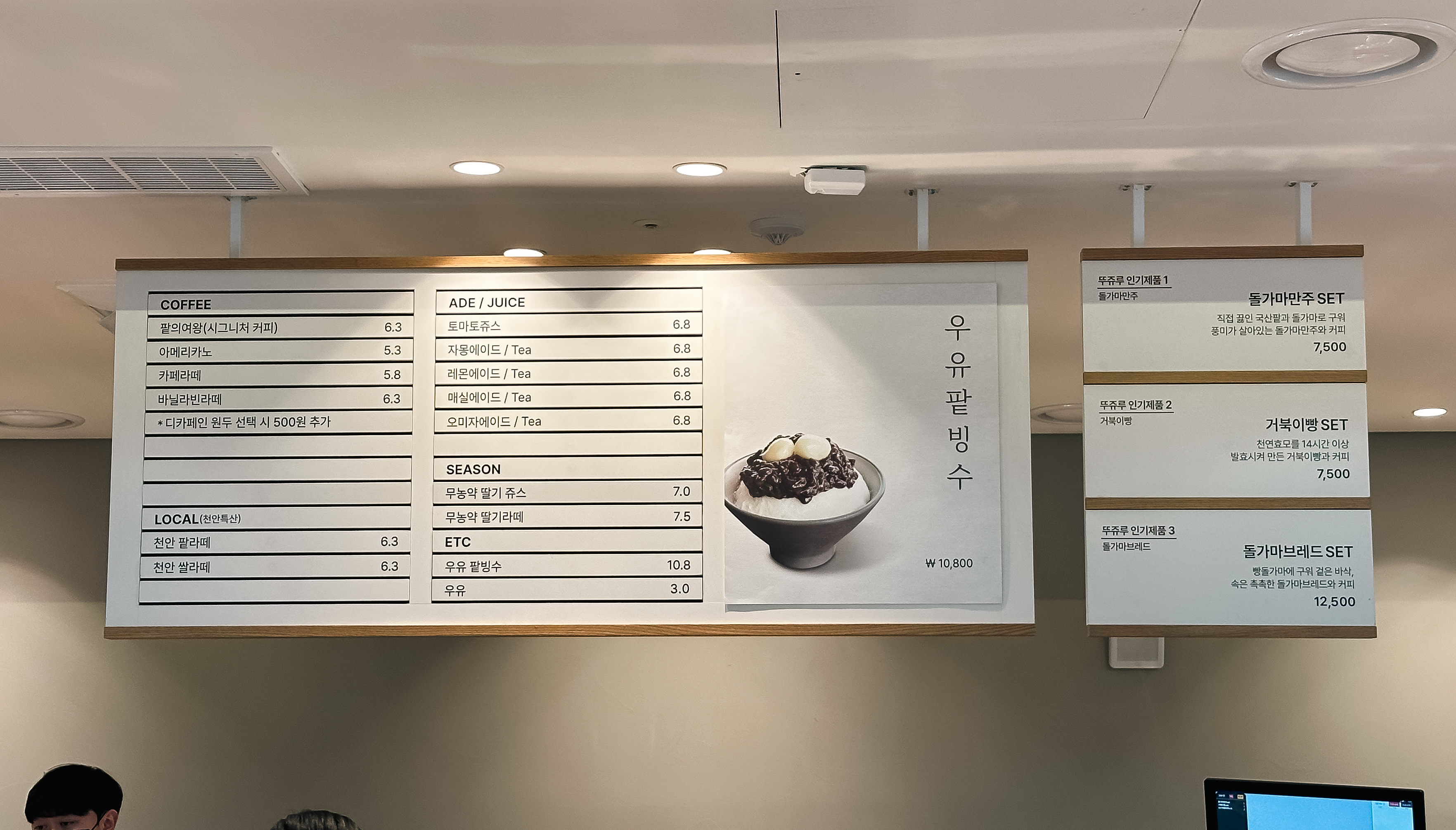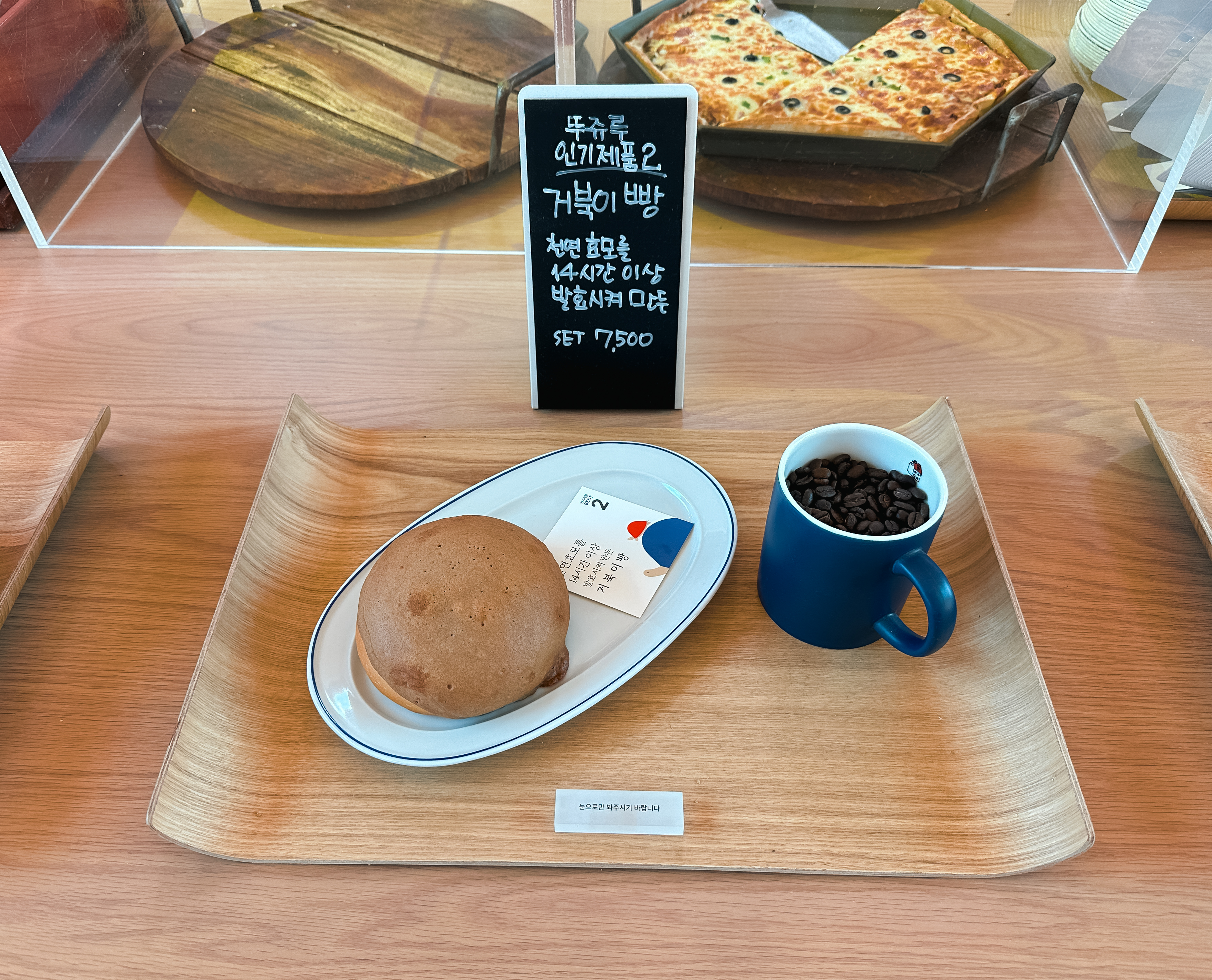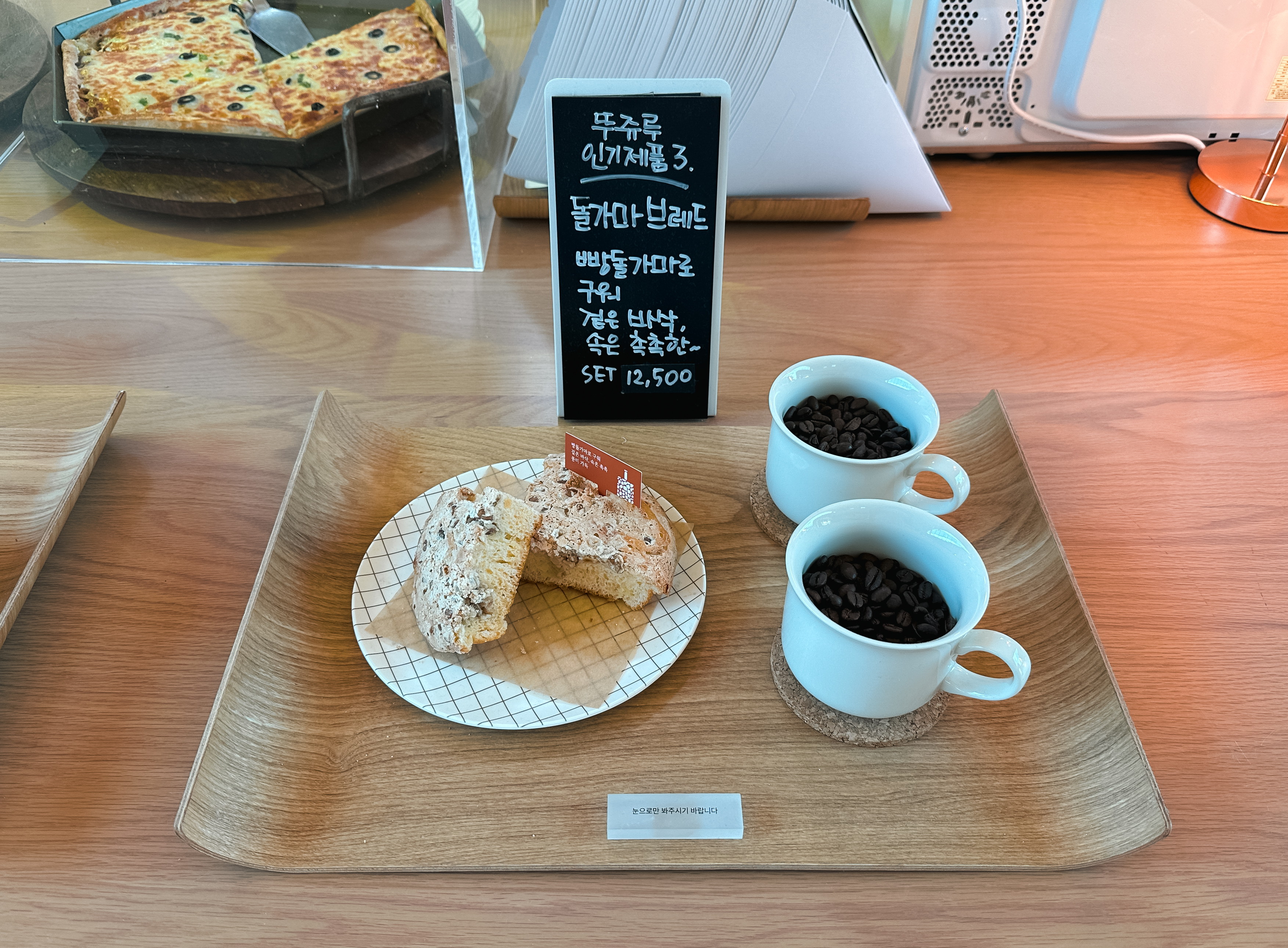천안 뚜쥬루 빵마을 카페에서 판매하는 베스트셀러 3가지를 살펴보면, 돌가마만쥬, 거북이빵, 돌가마브레드가 있었습니다. 저희는 앞서 천안팥을직접끓임에서 만든 팥을 넣은 돌가마만쥬와 거북이빵과 커피로 구성된 세트를 주문하여 먹었습니다. 뚜쥬루의 빵은 전체적으로 직접 구운 빵을 바로 먹어서 그런지 따뜻하기도 하고 촉촉하고 맛있었습니다.
