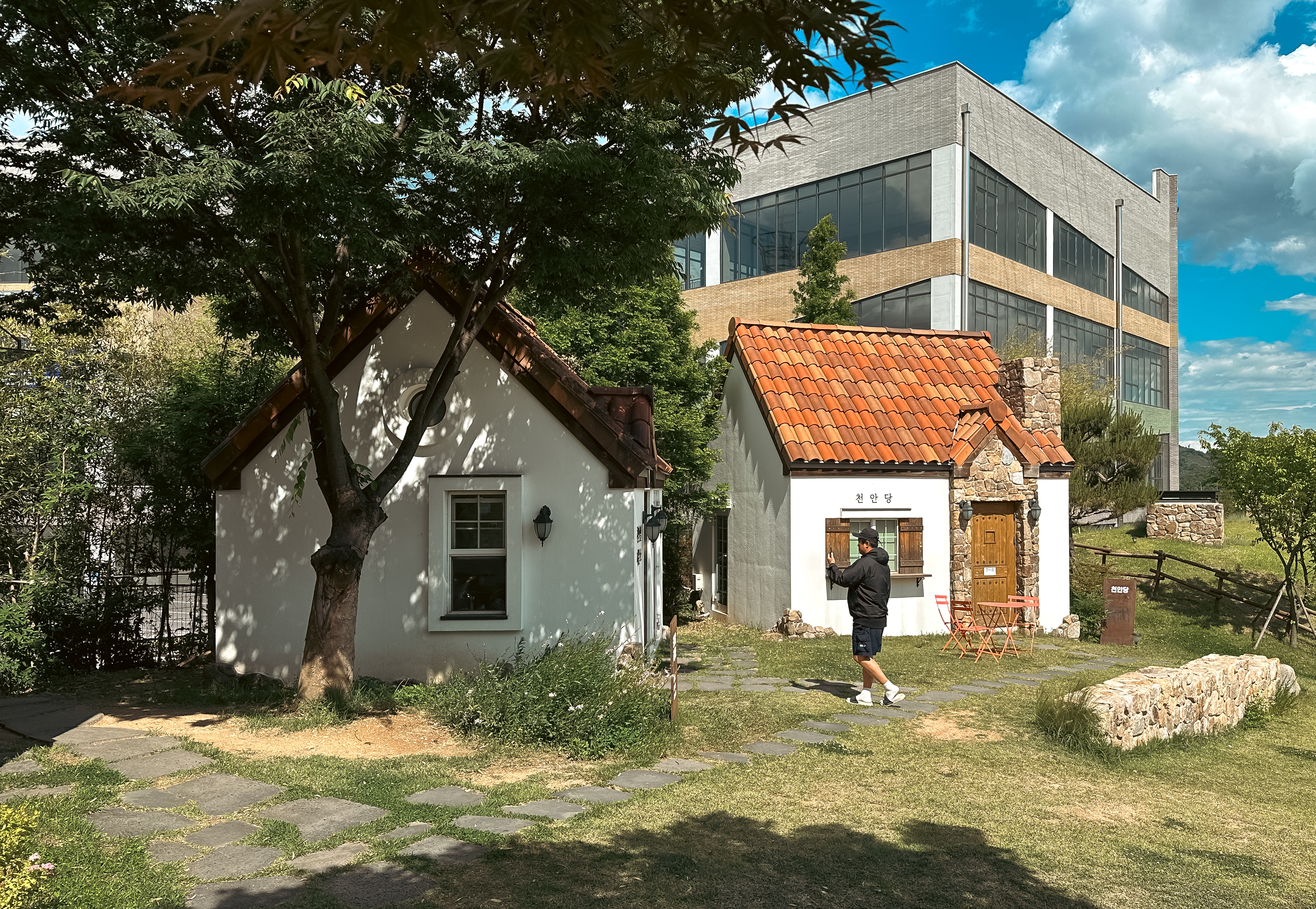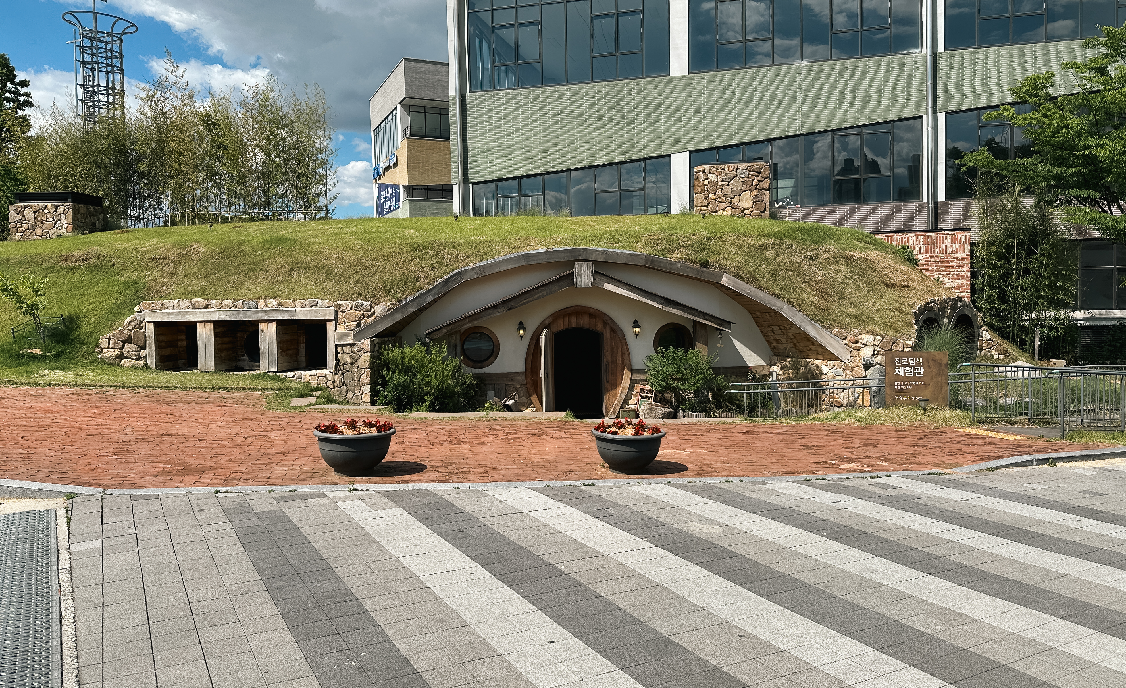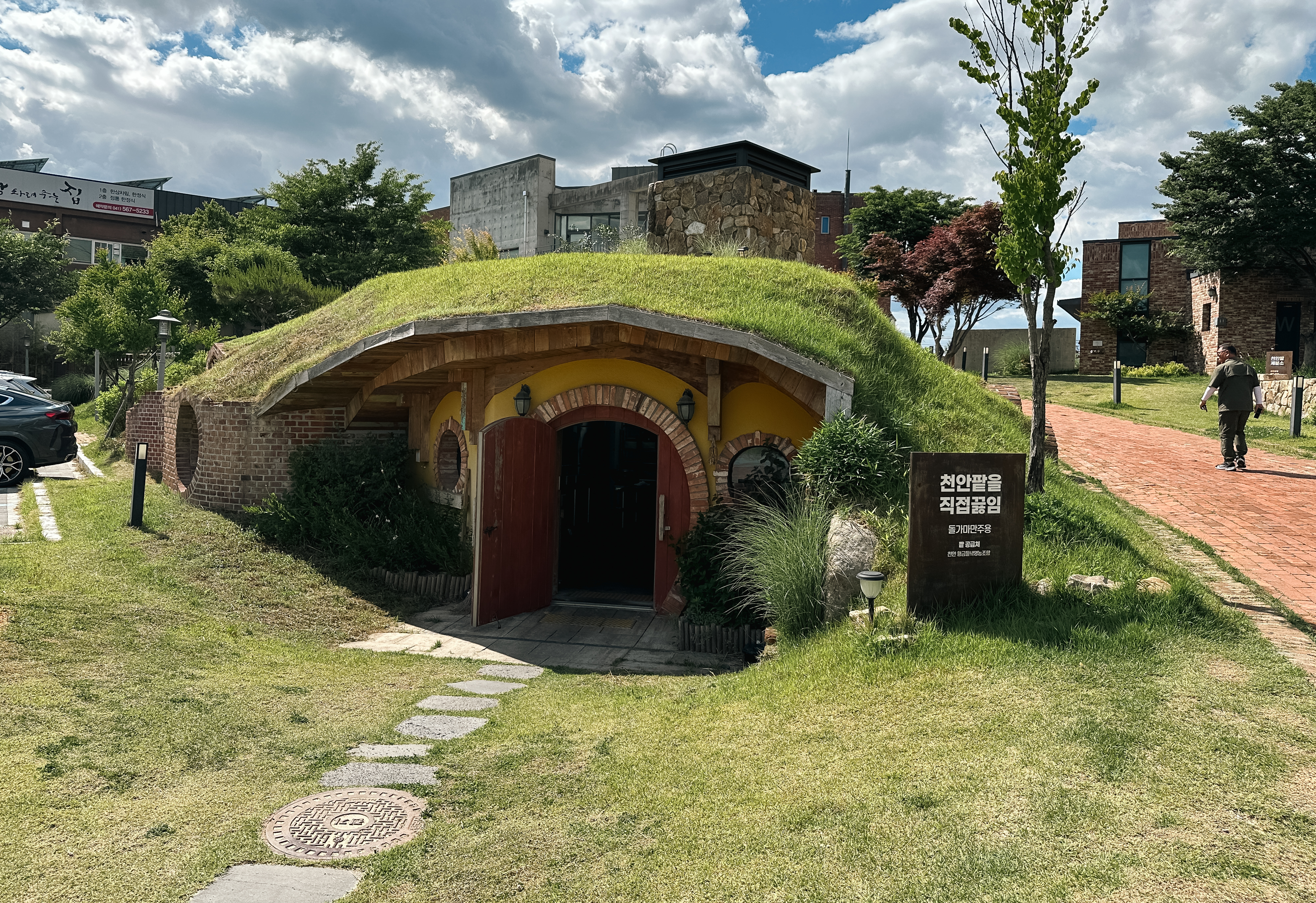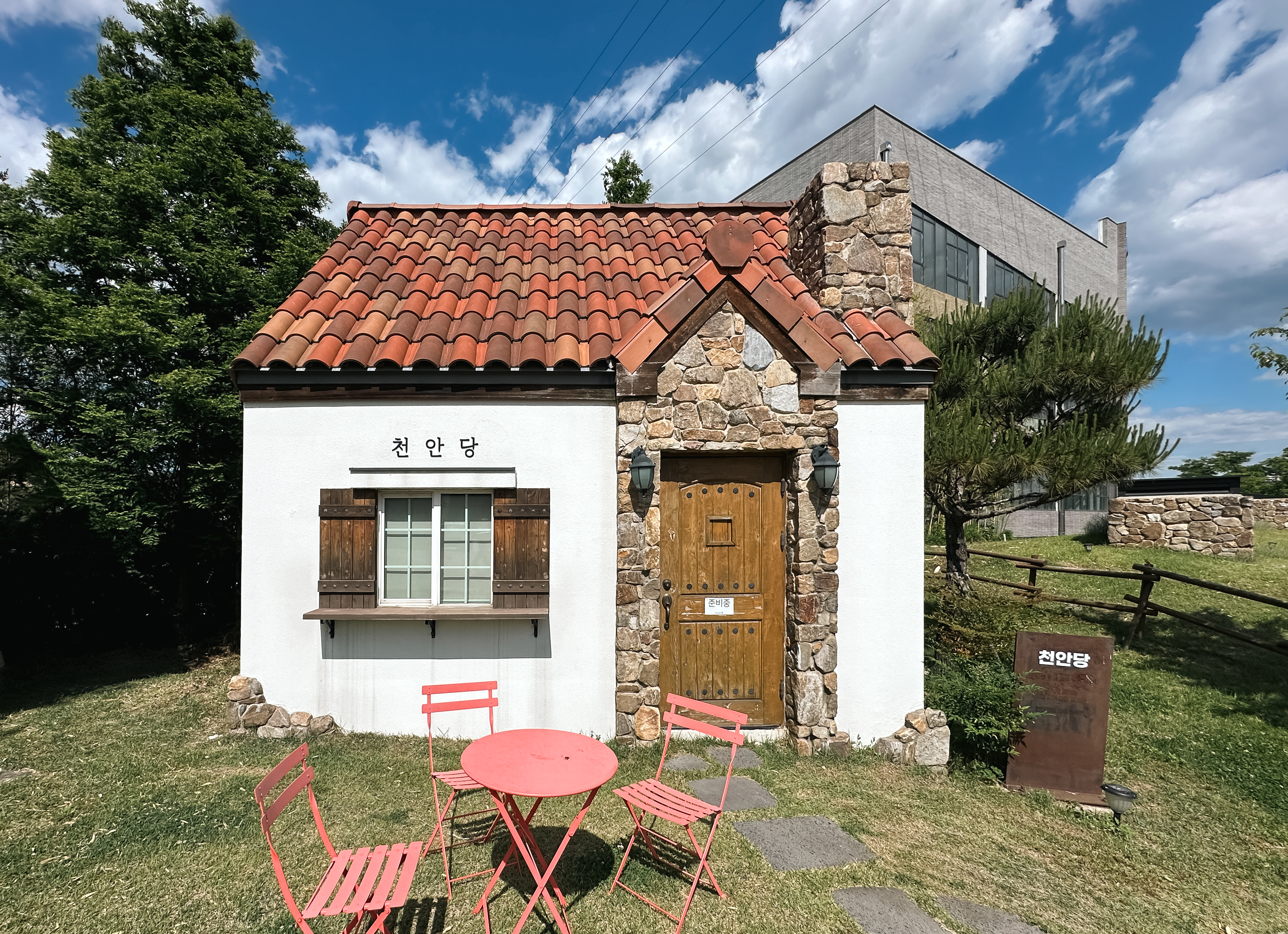 천안당은 준비 중이라 적혀있었는데, 정확히 무슨 용도의 건물인지는 모르겠지만 사진이 이쁘게 나와서 사진을 한 번 찍어보았습니다. 그밖에 조그마한 언덕을 활용한 건물인 뚜쥬루체험관에서는 인근의 중・고등학교 학생들이 직업체험을 할 수 있도록 체험학습관이 있었고, 돌가마만주에 사용되는 천안팥을 직접 끓이(천안팥을직접끓임)는 장소도 있었습니다.
