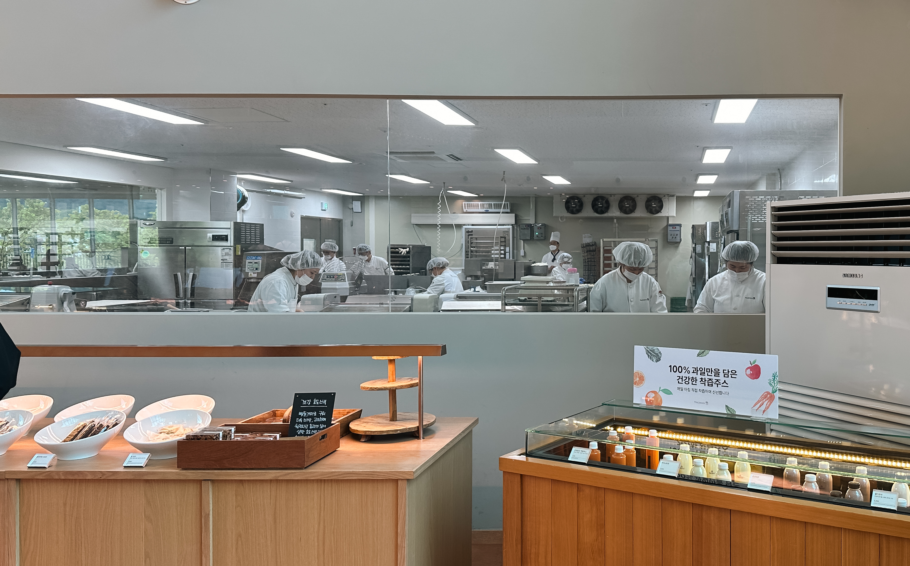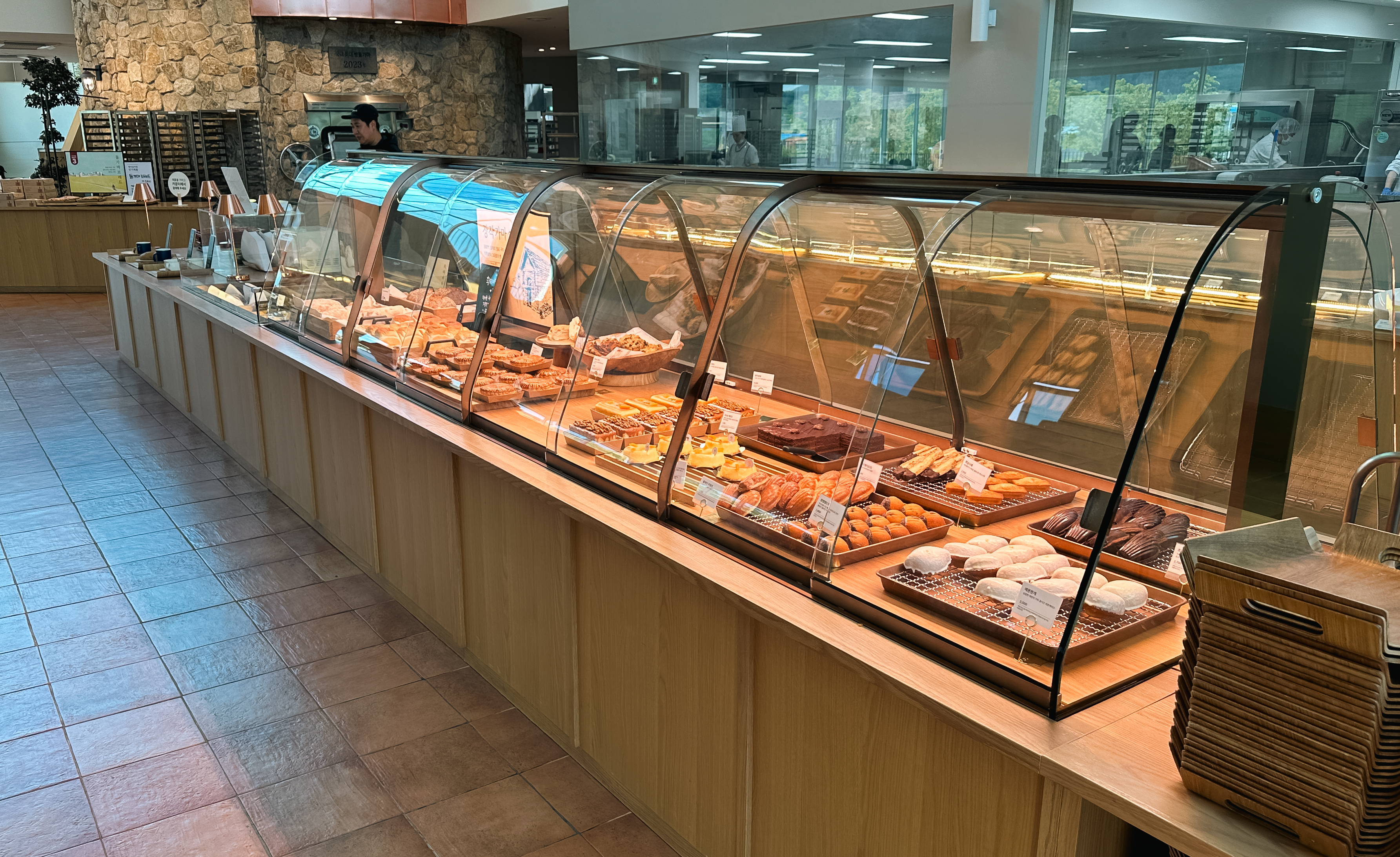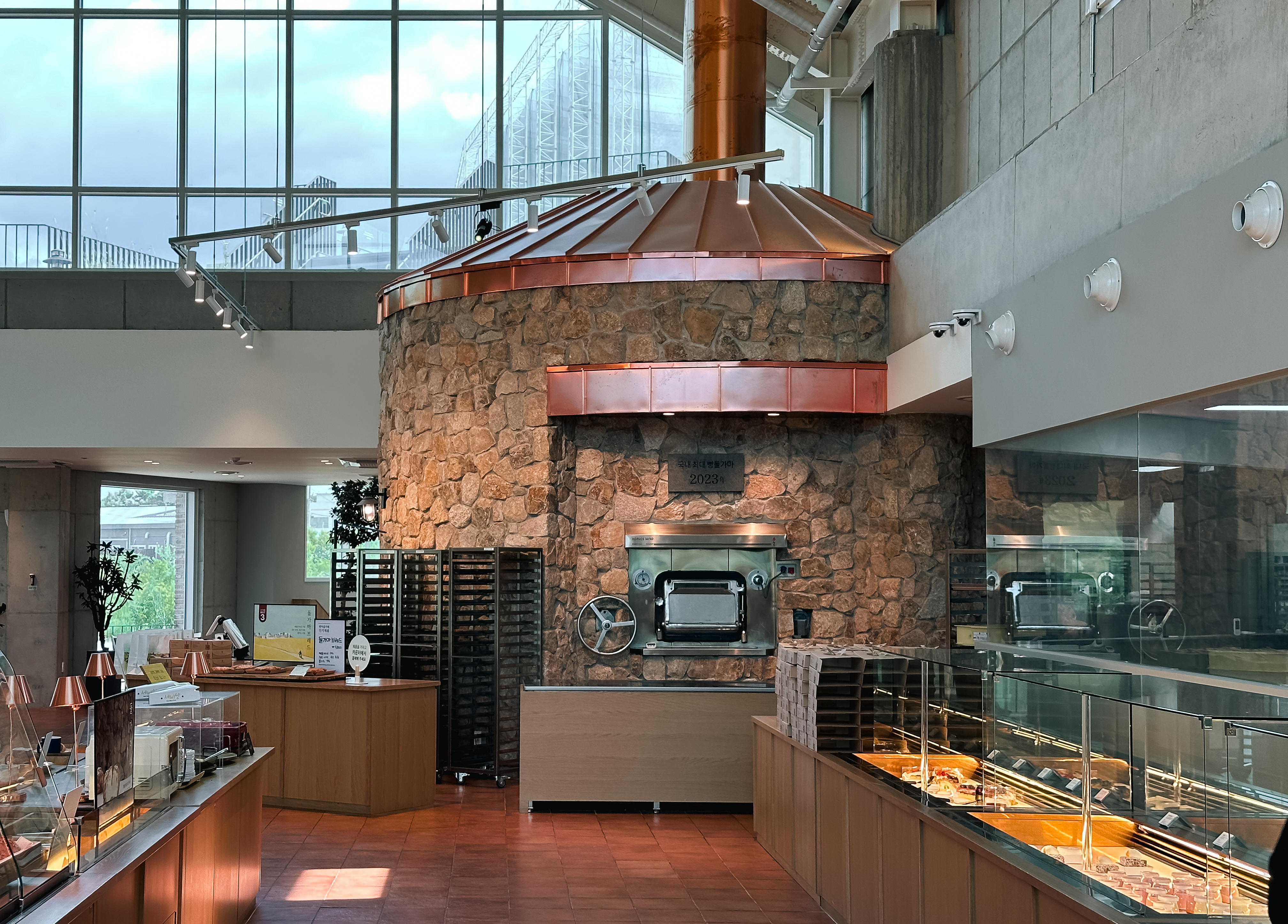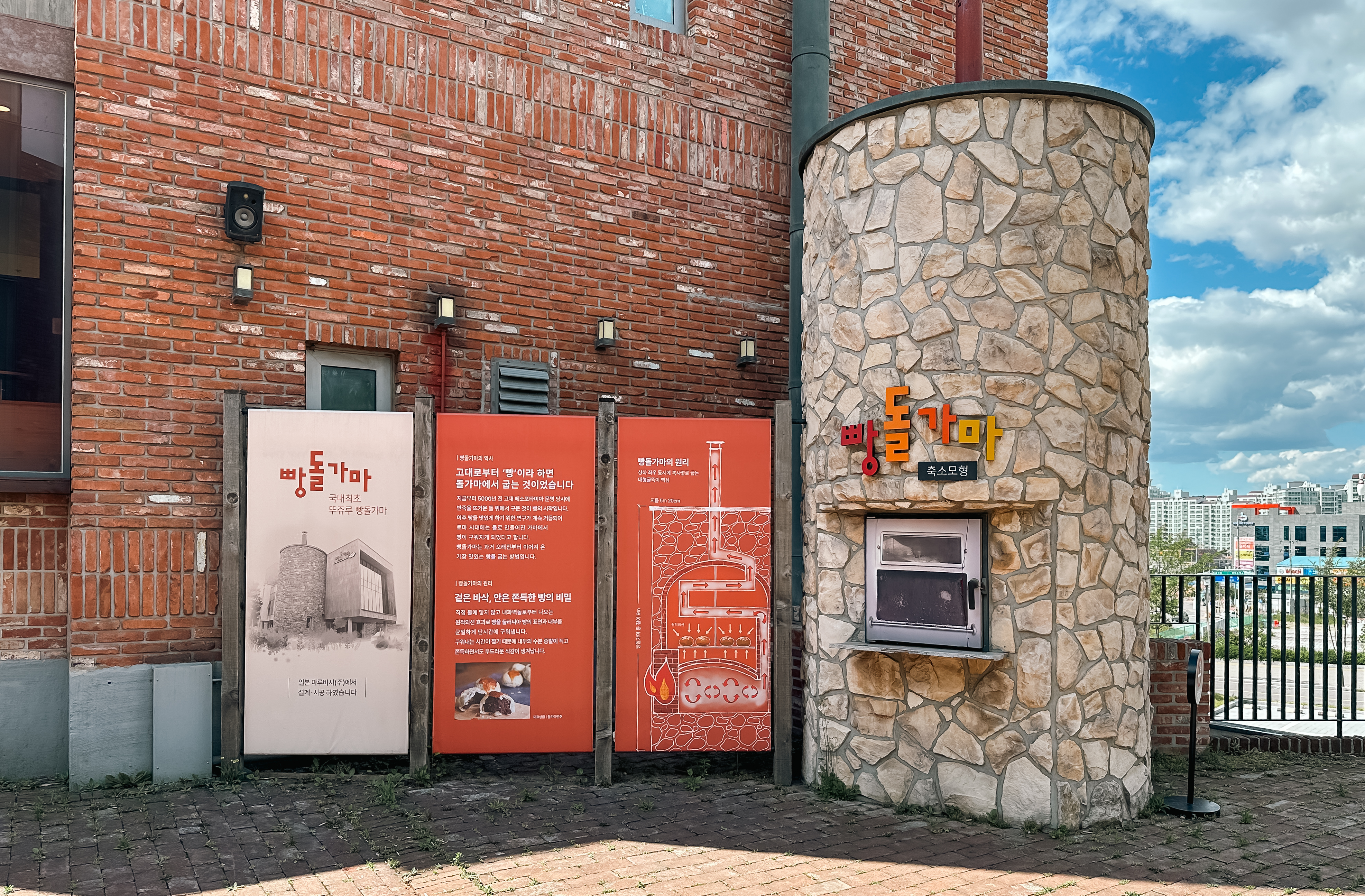 뚜쥬루의 빵장작가마와 빵마을카페, 천안쌀케익23의 모습입니다. 빵마을카페에는 정말 커다란 굴뚝모양의 장작가마가 있었고, 매장한쪽에는 모자를 쓴 제빵사분들이 빵을 만들고 있는 모습을 볼 수 있었습니다. 그밖에 쌀케익23 에서는 쌀로 만드는 바움쿠헨을 맛볼 수 있는 공간도 마련되어 있었습니다.