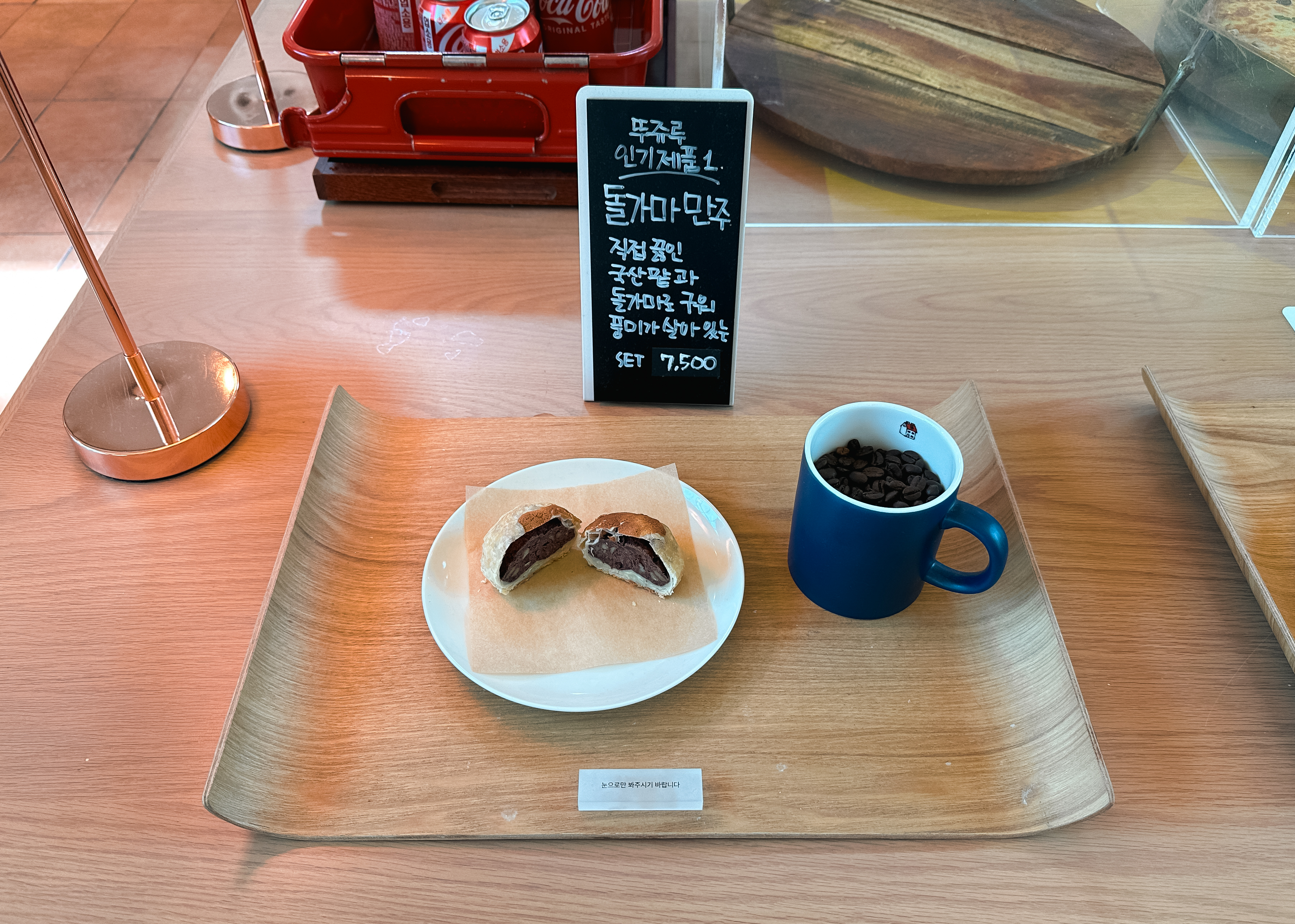 천안 뚜쥬루 빵마을 카페에서 판매하는 베스트셀러 3가지를 살펴보면, 돌가마만쥬, 거북이빵, 돌가마브레드가 있었습니다. 저희는 앞서 천안팥을직접끓임에서 만든 팥을 넣은 돌가마만쥬와 거북이빵과 커피로 구성된 세트를 주문하여 먹었습니다. 뚜쥬루의 빵은 전체적으로 직접 구운 빵을 바로 먹어서 그런지 따뜻하기도 하고 촉촉하고 맛있었습니다.
