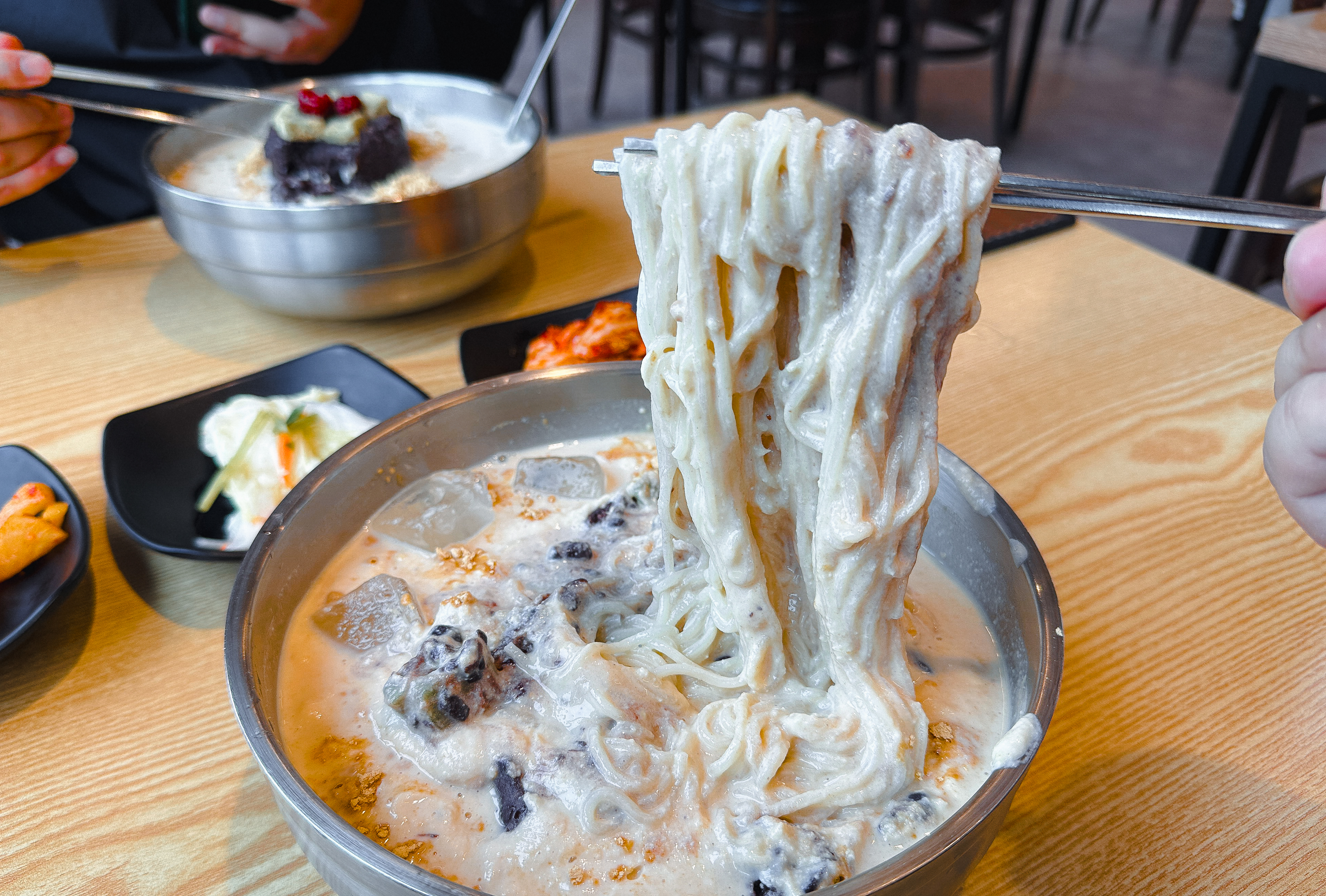 콩심팥심 팥빙콩국수의 맛은 생각보다 이질적이지 않았고, 맛도 괜찮았습니다. 면도 꽤 쫄깃한 편이었는데 저희가 곱빼기를 주문해서 그런지 먹다 보니 배가 불러서 더 먹지를 못하겠더라고요.