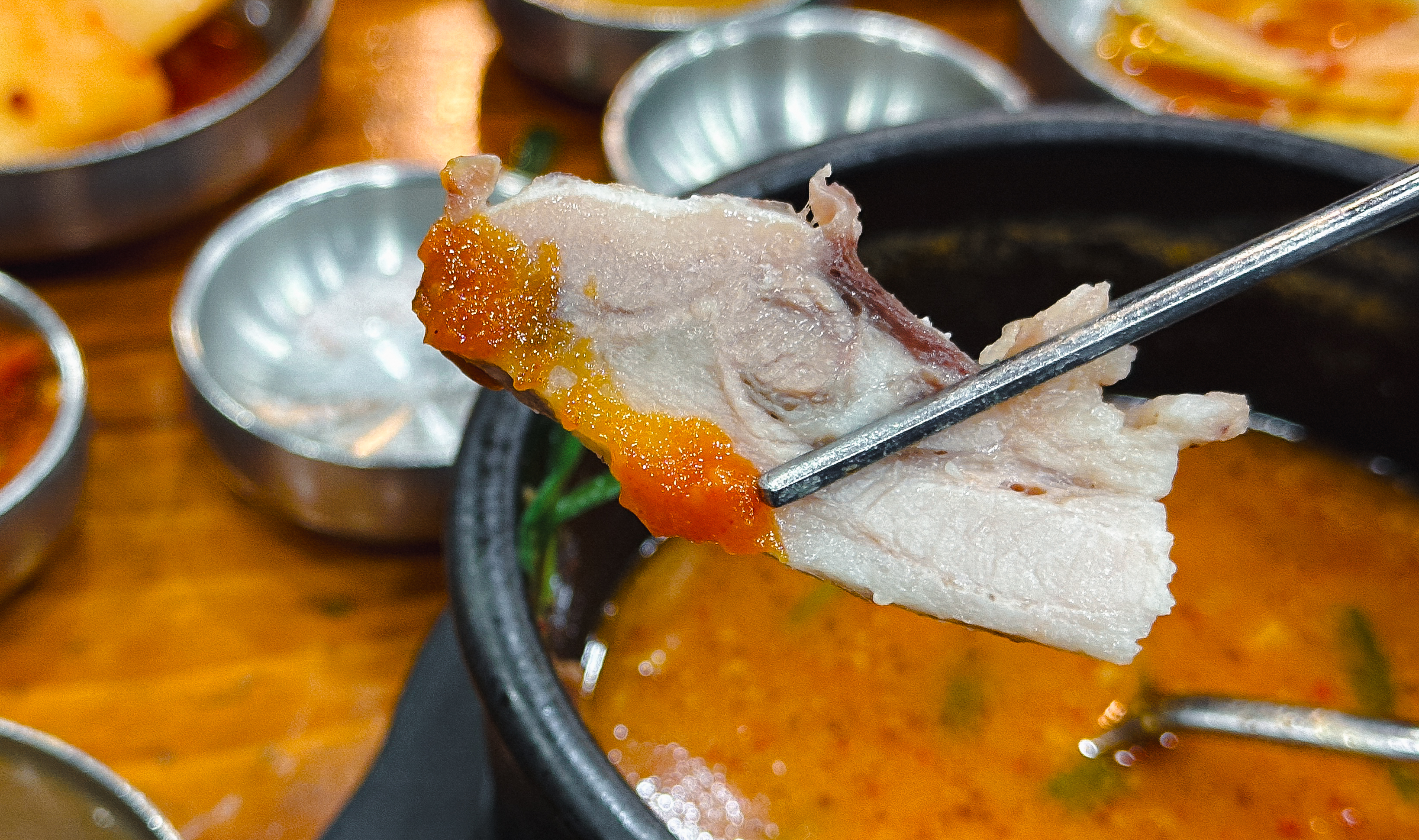 순대국과 같이 나온 순대・수육 접시가 나왔습니다. 원래는 기본 순대도 함께 나왔는데, 제가 먹지를 않아서 나머지만 찍어보았습니다. 순댓국은 기본적으로 들어있던 양념장이 풀어지면서 칼칼한 매운맛을 내었고, 정식으로 같이 나온 수육은 쫄깃하고 맛있었습니다. 솔직히 함경도찹쌀순대에 순댓국은 고기가 좀 적어 아쉬웠지만 전체적인 국물과 조합이 괜찮아서 만족스럽게 식사할 수 있었습니다.