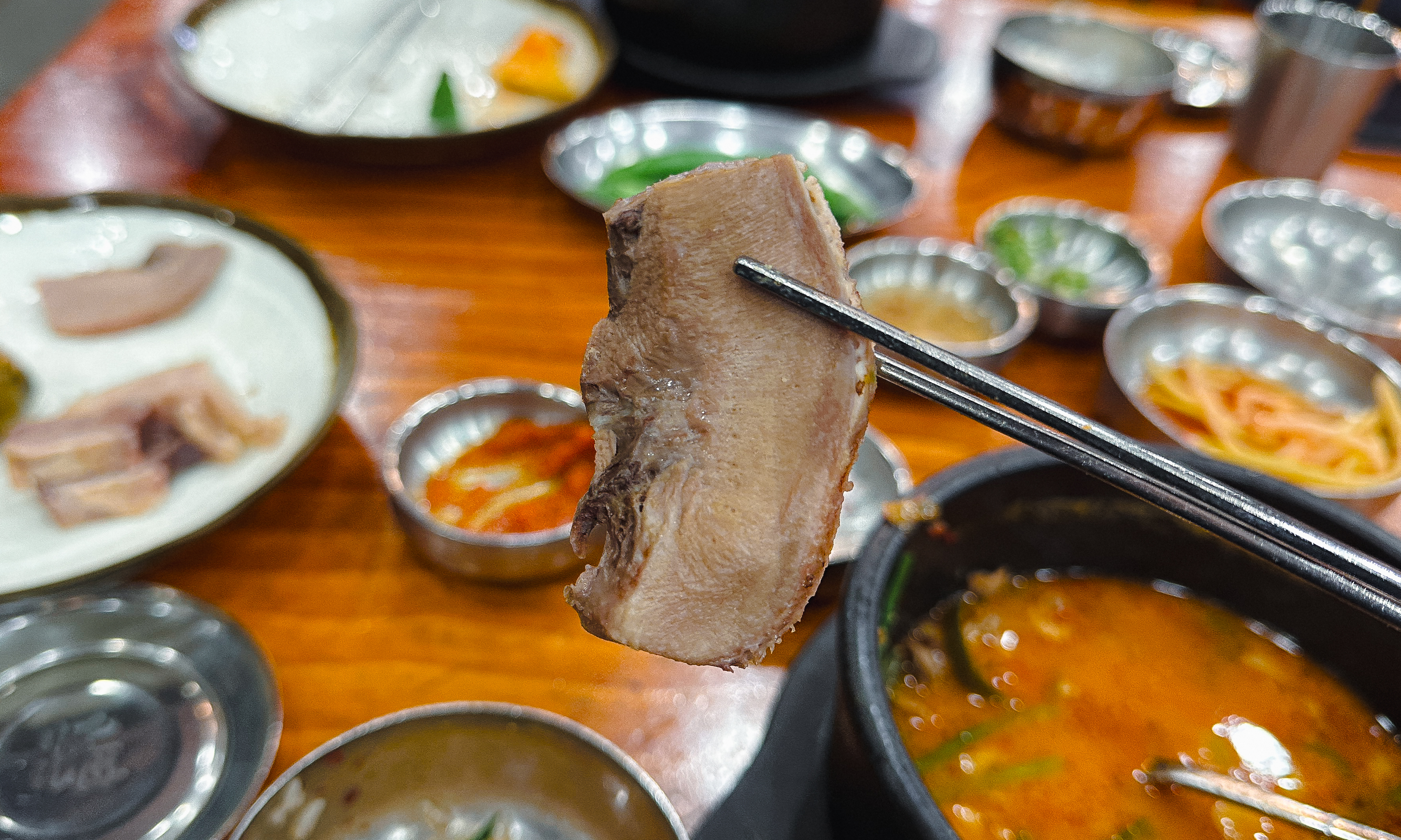 순대국과 같이 나온 순대・수육 접시가 나왔습니다. 원래는 기본 순대도 함께 나왔는데, 제가 먹지를 않아서 나머지만 찍어보았습니다. 순댓국은 기본적으로 들어있던 양념장이 풀어지면서 칼칼한 매운맛을 내었고, 정식으로 같이 나온 수육은 쫄깃하고 맛있었습니다. 솔직히 함경도찹쌀순대에 순댓국은 고기가 좀 적어 아쉬웠지만 전체적인 국물과 조합이 괜찮아서 만족스럽게 식사할 수 있었습니다.