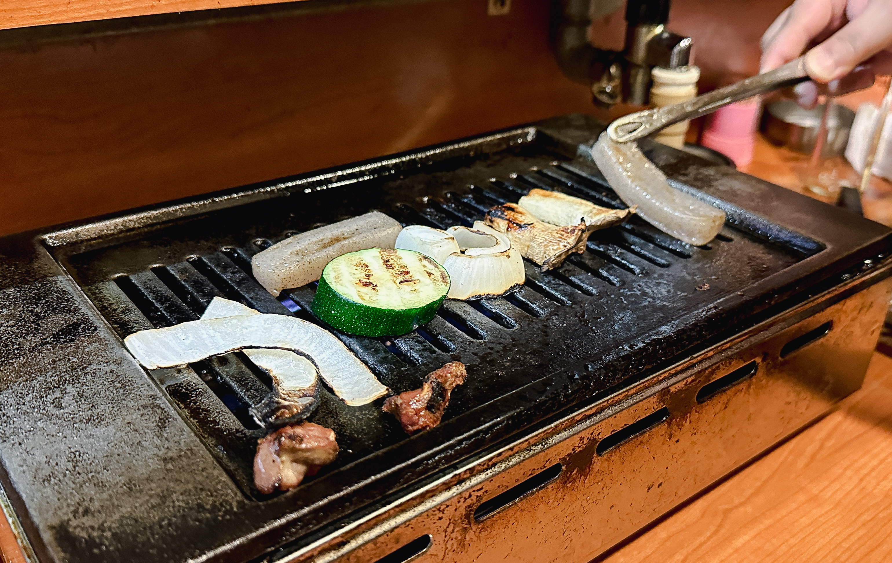 사실 일본에 야키토리는 야키니쿠만큼 대중적인 구이메뉴였는데, 야키니쿠는 종종 먹어봤어도 야키토리는 한 번도 먹어보지 않았는데 이번에 먹어보니 가격도 크게 부담스럽지 않았고 맛도 꽤 좋더라고요. 추가로 주문한 염통(?)과 채소도 먹어보았는데 맛이 괜찮더라고요. 사실 야키토리 타케에서 감동받았던 점은, 다음에 소개되는데요.