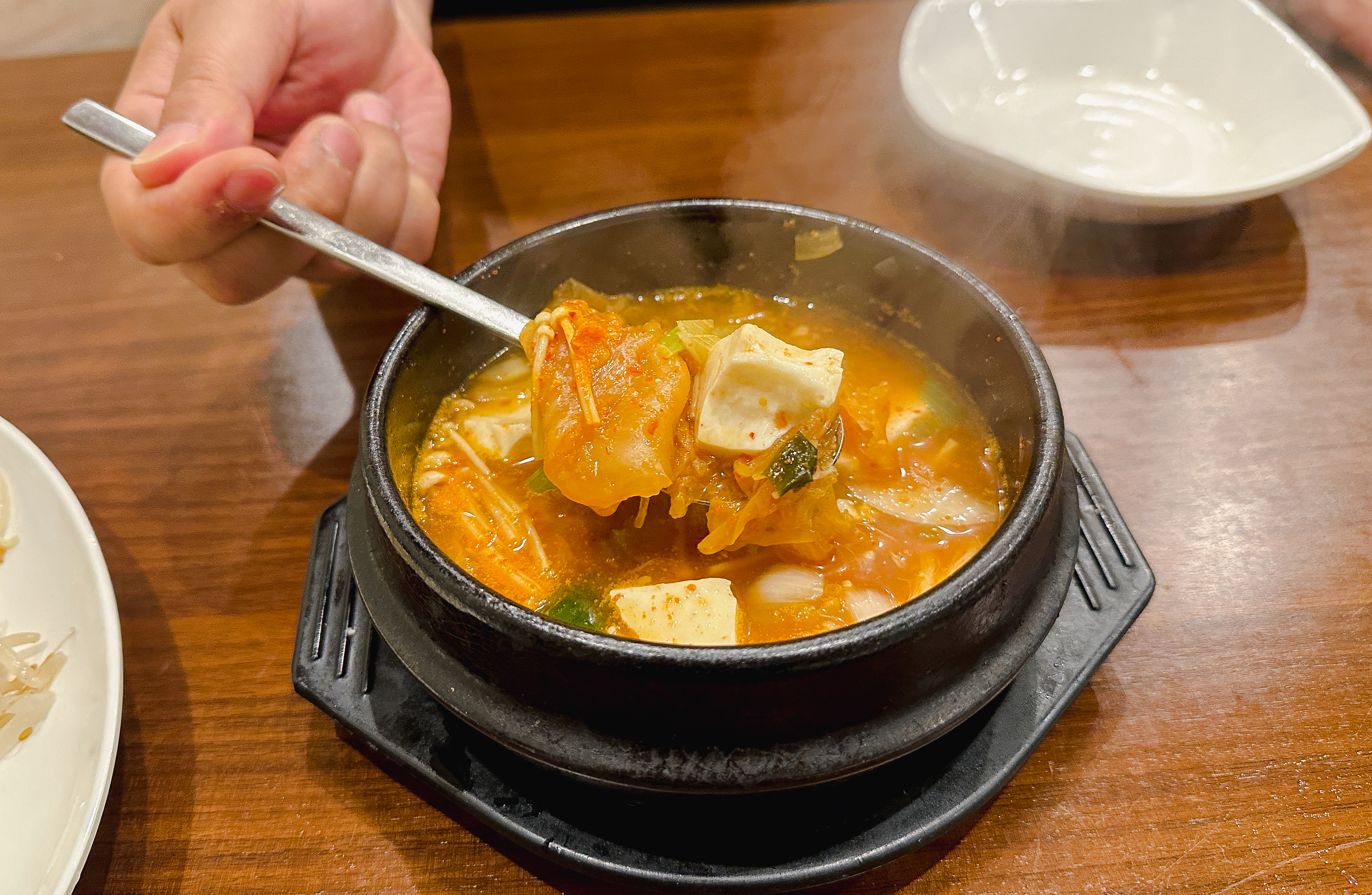 김치찌개와 순두부찌개의 모습은 위와 같았는데, 일부는 김치찌개가 더 맛있다고 하던데, 김치찌개보다는 순두부찌개가 더 재료가 다양하고 맛있더라고요. 재료가 한국에서 처럼 푸짐하지는 않았지만, 아주머니께서 직접 맛을 내어 만들어주시는 메뉴들이라 하시더라고요. 제육볶음은 약간 퍽퍽한 느낌이었는데 나쁘진 않았고요.