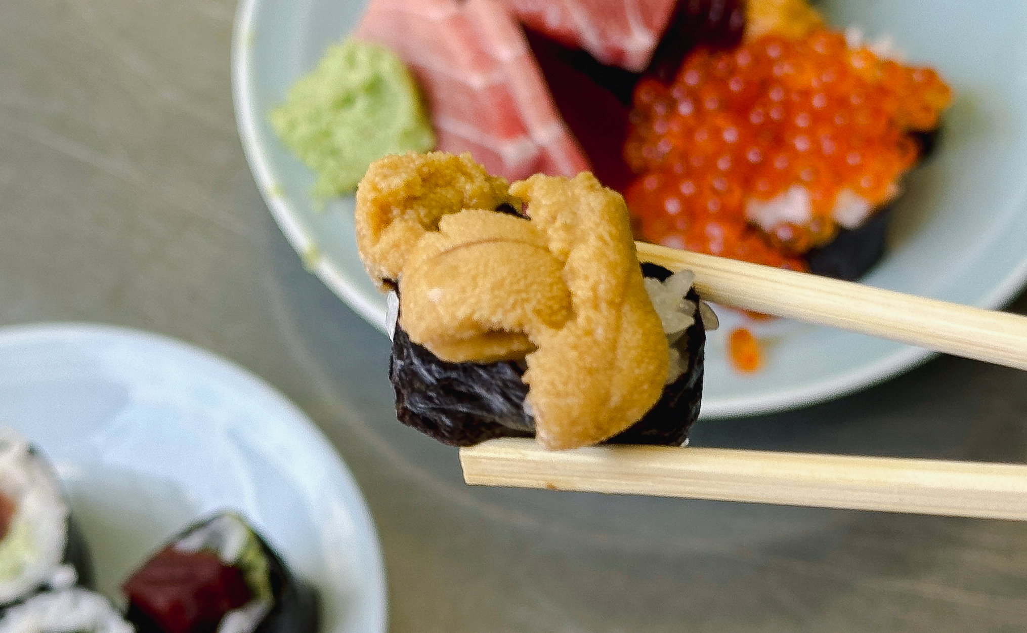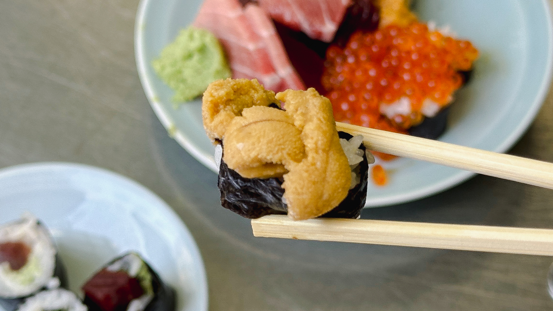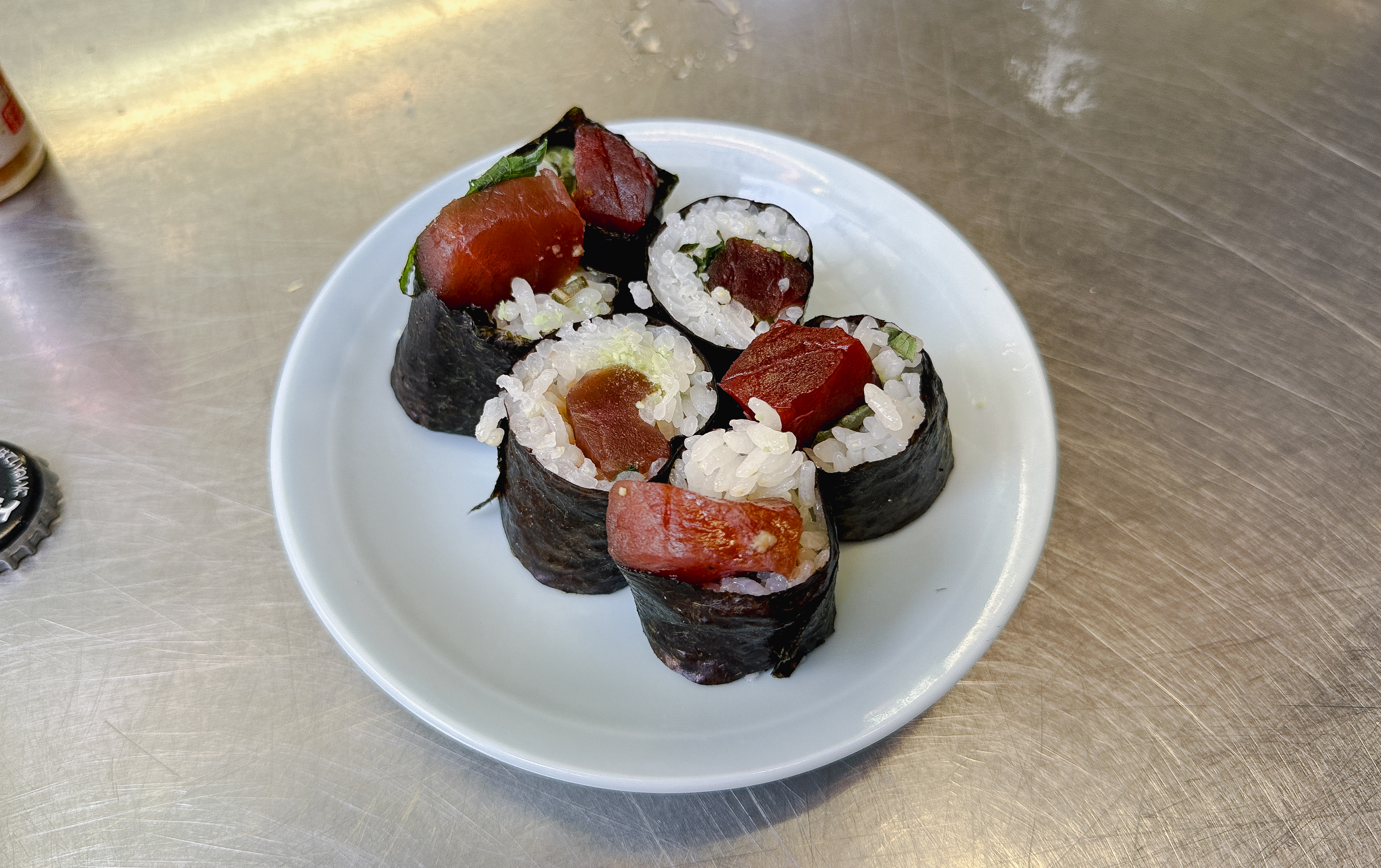 가게에 손님들이 많기 때문에 주문한 메뉴를 받기까지는 굉장히 시간이 소요되고 있었습니다. 사진을 보시면 맨 위의 사진은 참치모둠이라고 적었는데, 메뉴에 모듬이라 적혀있진 않으나 우니, 성게와 함께 참치의 살코기, 지방부위가 섞여 나오는 메뉴와 가운데에는 참치 살코기 롤 그리고 마지막 사진은 직화로 구워내는 참치볼살구이였습니다.