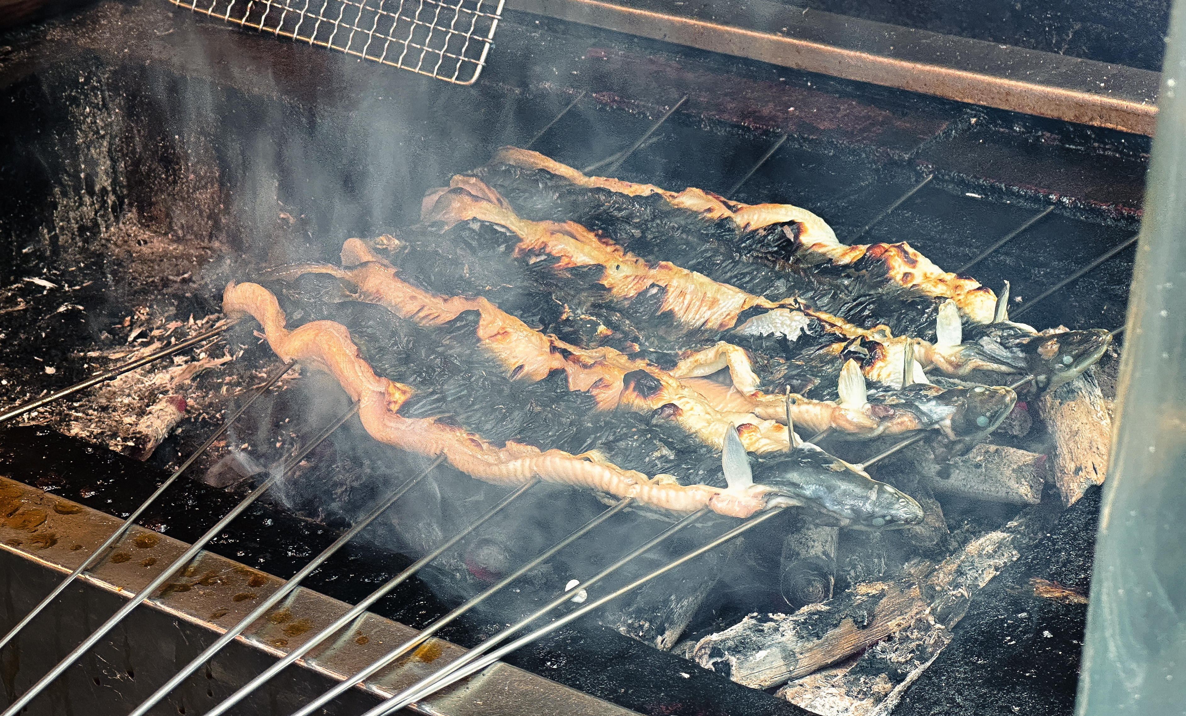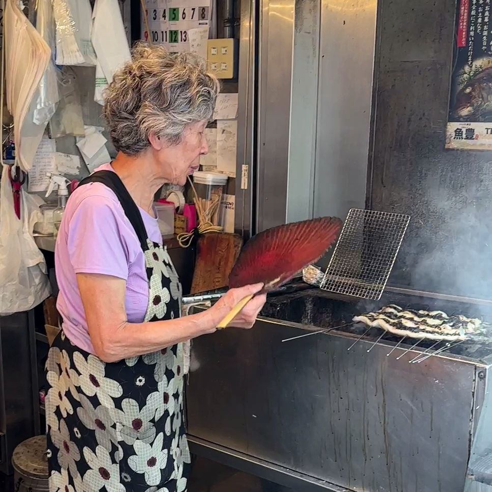 장어덮밥은 장어를 꿰어놓은 꼬치를 가지고 숯불에 구웠다가 장어에 소스를 부었다가를 번갈아 하시며, 정성스럽게 구워주시는 메뉴였습니다. 제가 방문했던 날도 더운 날씨중이었는데, 할머니께서 덥다고 하시더라고요.