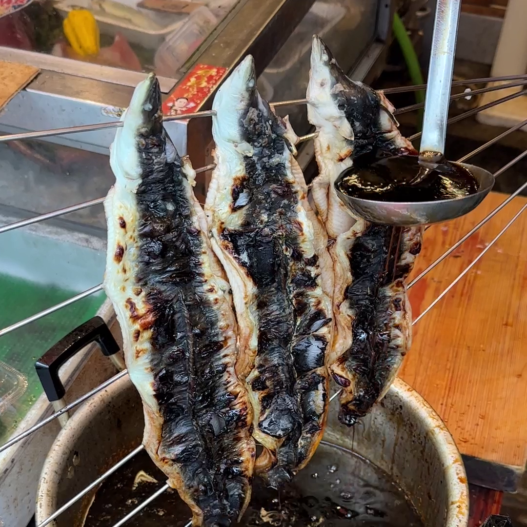 장어덮밥은 장어를 꿰어놓은 꼬치를 가지고 숯불에 구웠다가 장어에 소스를 부었다가를 번갈아 하시며, 정성스럽게 구워주시는 메뉴였습니다. 제가 방문했던 날도 더운 날씨중이었는데, 할머니께서 덥다고 하시더라고요.
