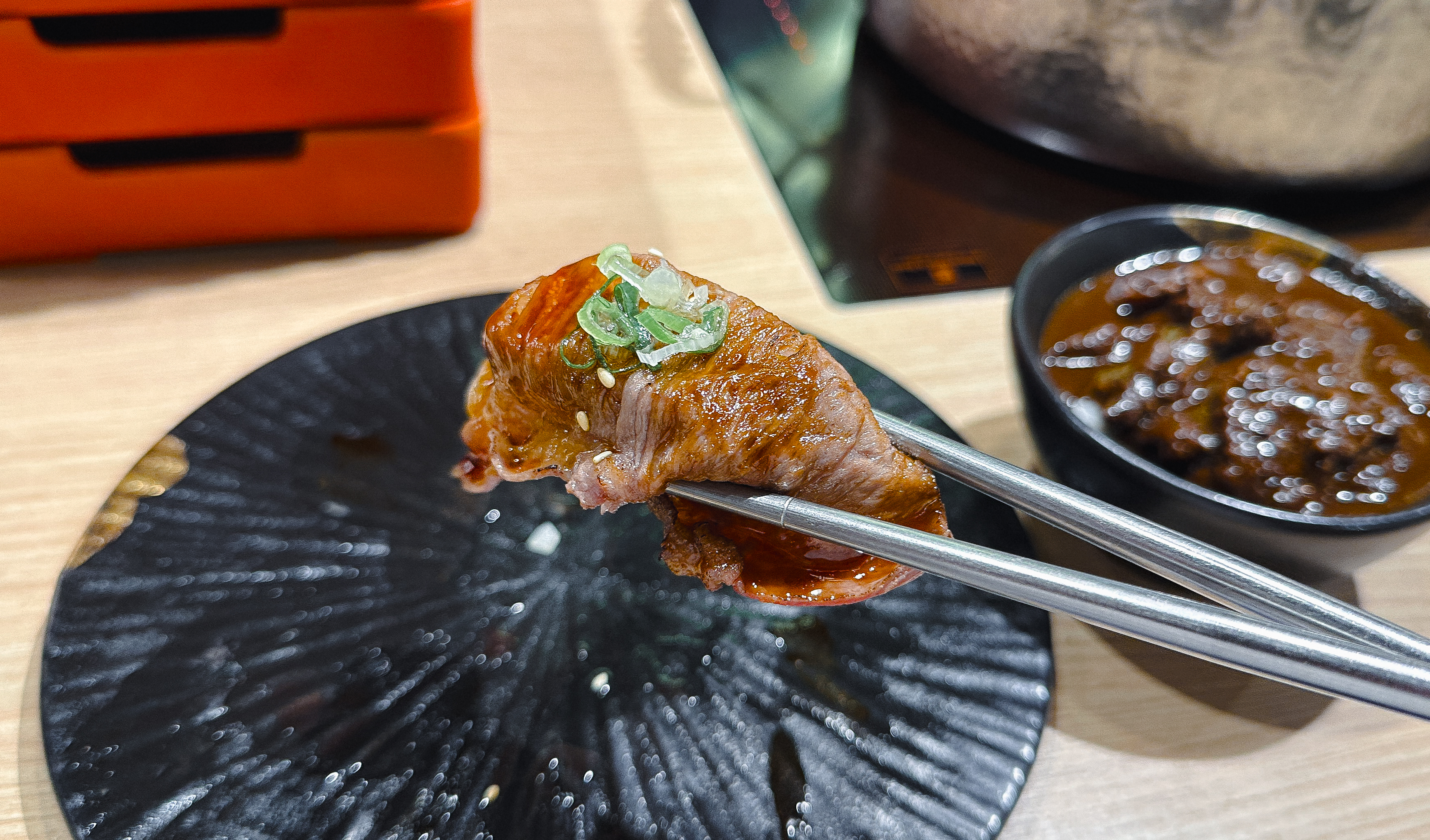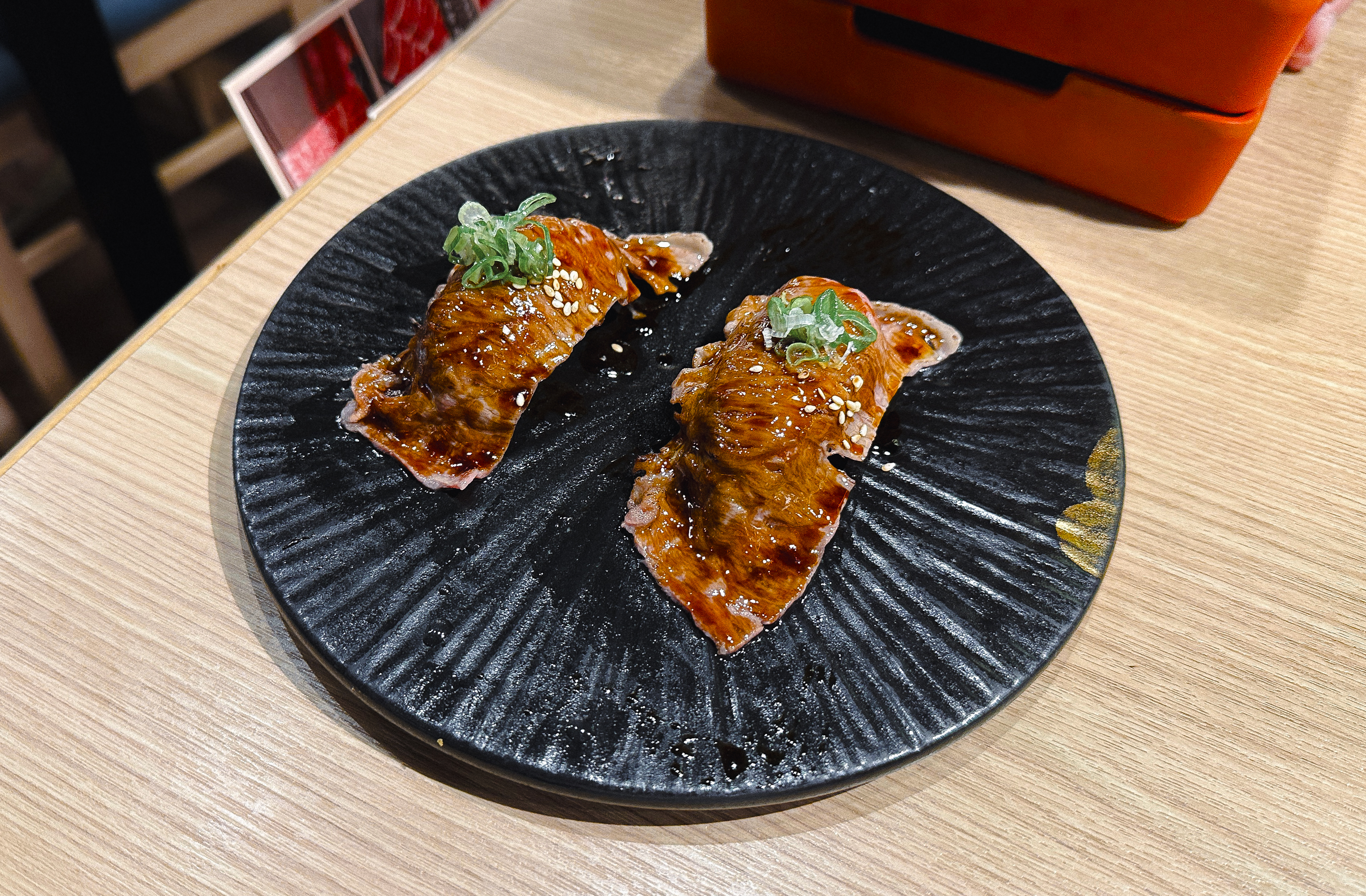 자리로 와서 저희가 식사한 메뉴들을 살펴보면, 저희가 주문한 세트구성에는 와규 초밥과 앞에 소개해드렸던, 고기들 대부분이 포함된 구성이었습니다. 솔직히 고기들도 질이 너무 좋았고, 채소나 다른 재료들도 신선하게 관리되어 있어서 먹기 참 좋았습니다. 나중에 후식으로 아이스크림붕어빵까지 만들어먹었는데, 가격대는 조금 있었지만 꽤 괜찮게 이용한 가게였습니다.