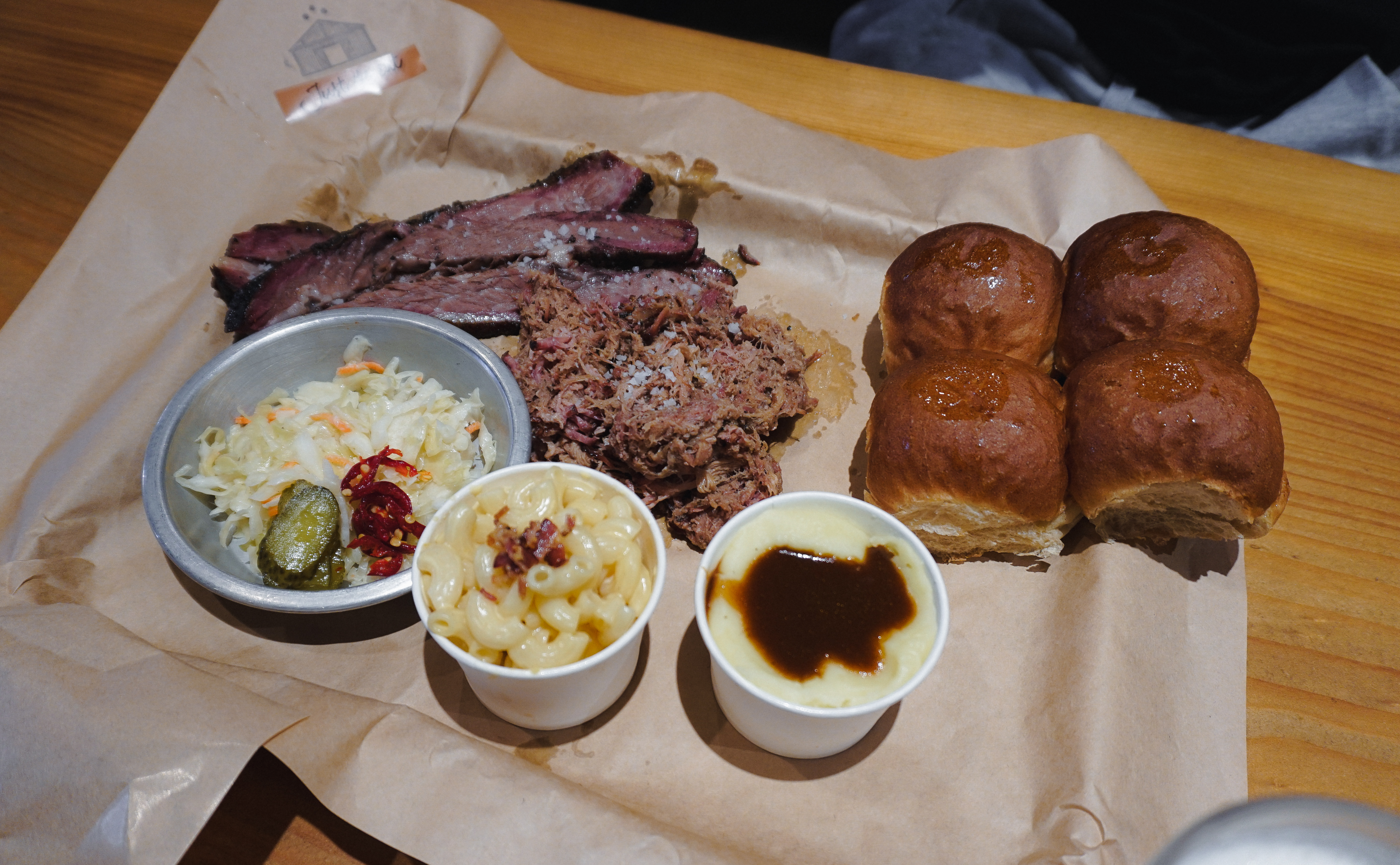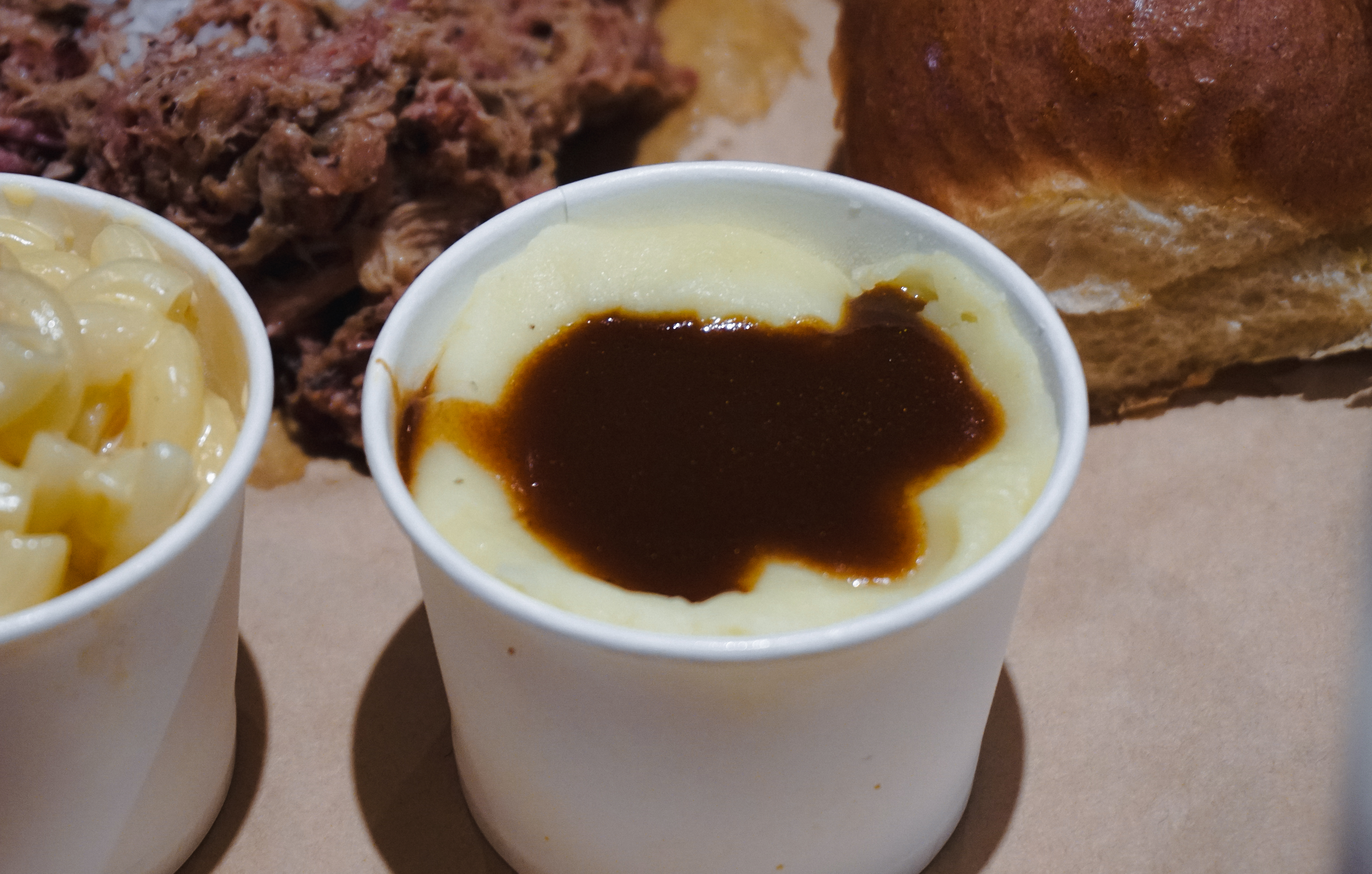 먼저 소개해드릴 메뉴는 평택 미군기지 라살루드험프리스의 BBQ 플래터 입니다. 저는 '브리스킷'과 '풀드포크'를 주문했고, 사이드로 '매쉬드포테이토'와 '맥앤치즈'를 같이 곁들였습니다. 그밖에 플래터에 기본으로 포함된 사이드는 '코울슬로'와 '미니번'이 있었습니다.