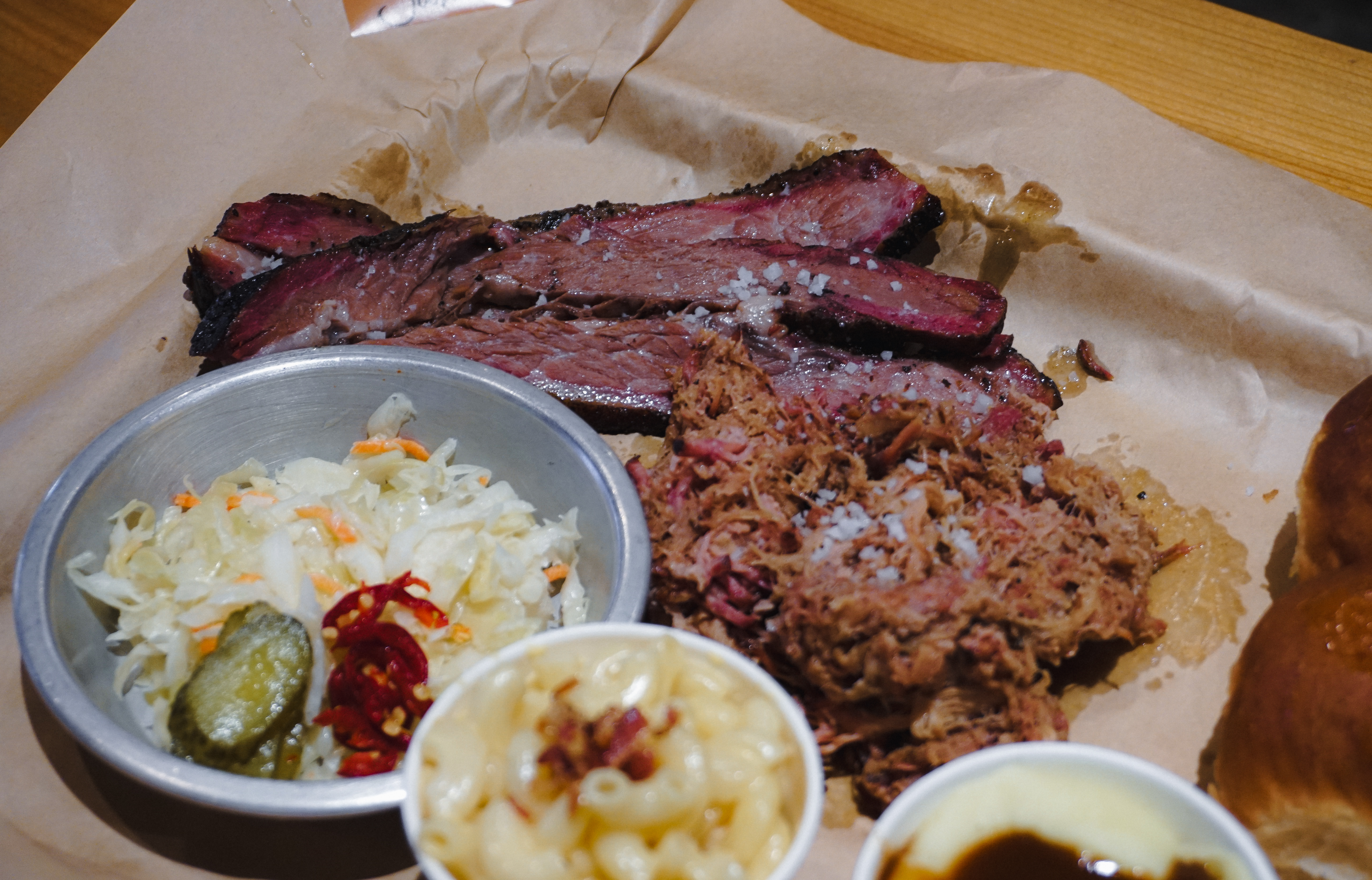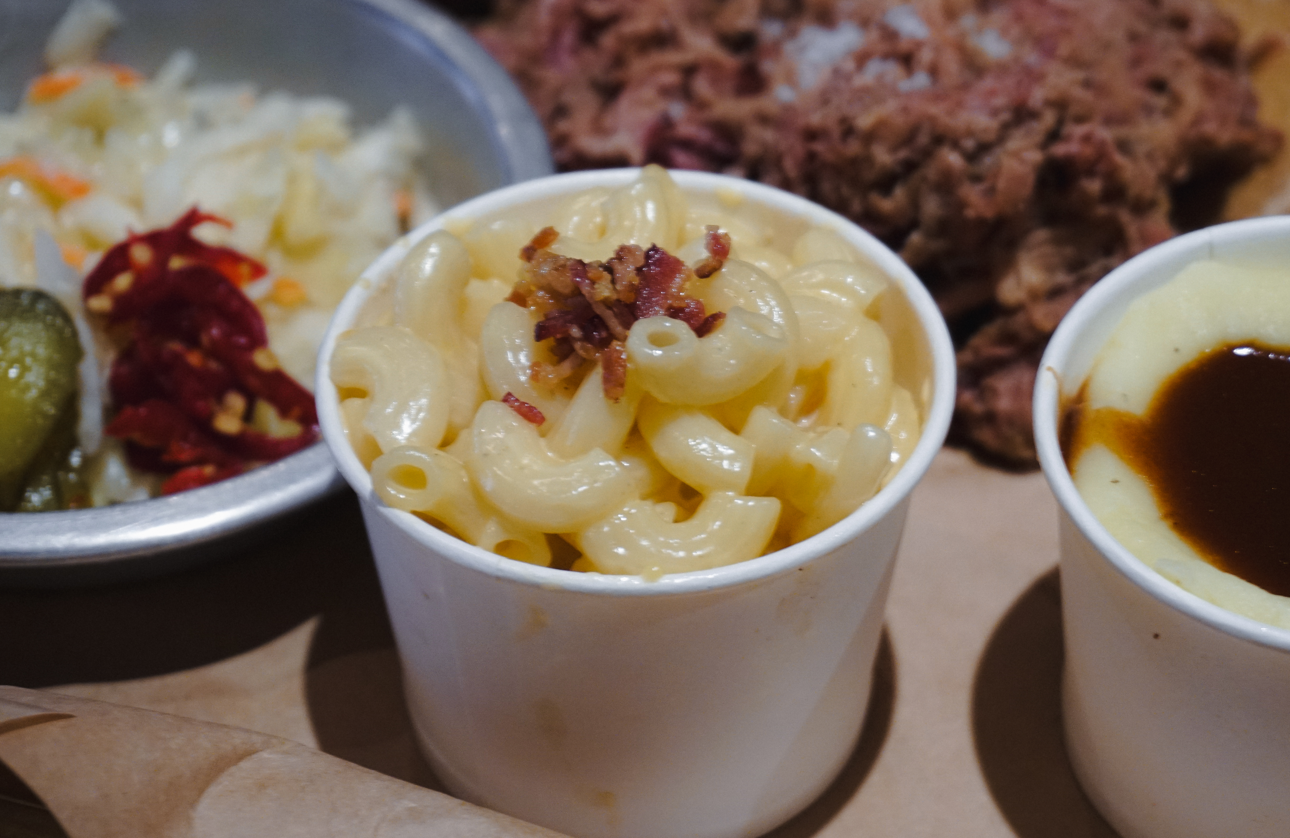 먼저 소개해드릴 메뉴는 평택 미군기지 라살루드험프리스의 BBQ 플래터 입니다. 저는 '브리스킷'과 '풀드포크'를 주문했고, 사이드로 '매쉬드포테이토'와 '맥앤치즈'를 같이 곁들였습니다. 그밖에 플래터에 기본으로 포함된 사이드는 '코울슬로'와 '미니번'이 있었습니다.