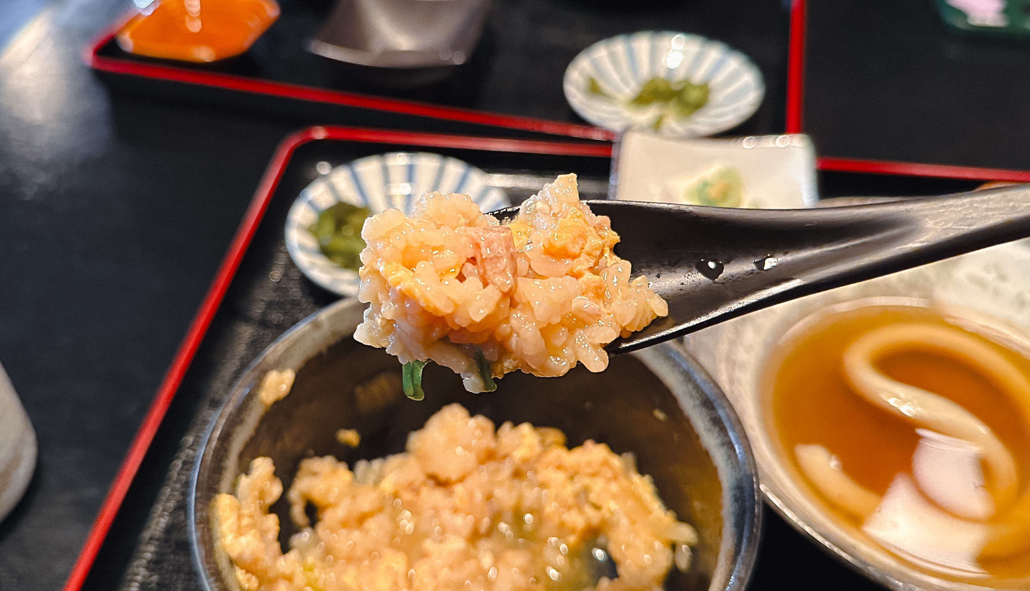 일본 교토에 위치한 Tawaraya(たわらや) 는 시그니쳐 메뉴인 두 가닥 우동이 유명한 맛집이었어요. 차를 가지고 방문했는데, 위에 설명드린 것처럼 '키타노텐만구' 신사에 주차를 하고 방문하면 되었고, 저는 우동과 덮밥으로 구성된 세트메뉴를 주문했습니다. 가장 궁금했던 두가닥 면의 우동을 주문했는데, 굵은면으로 된 우동의 식감은 마치 가래떡을 먹는듯한 느낌이 있었고, 국물도 제가 기대했던 맛과는 조금 차이가 있었습니다. 이색적인 가게이긴 했으나, 기대가 너무 컸던 나머지 아쉬움이 있었던 가게였습니다.