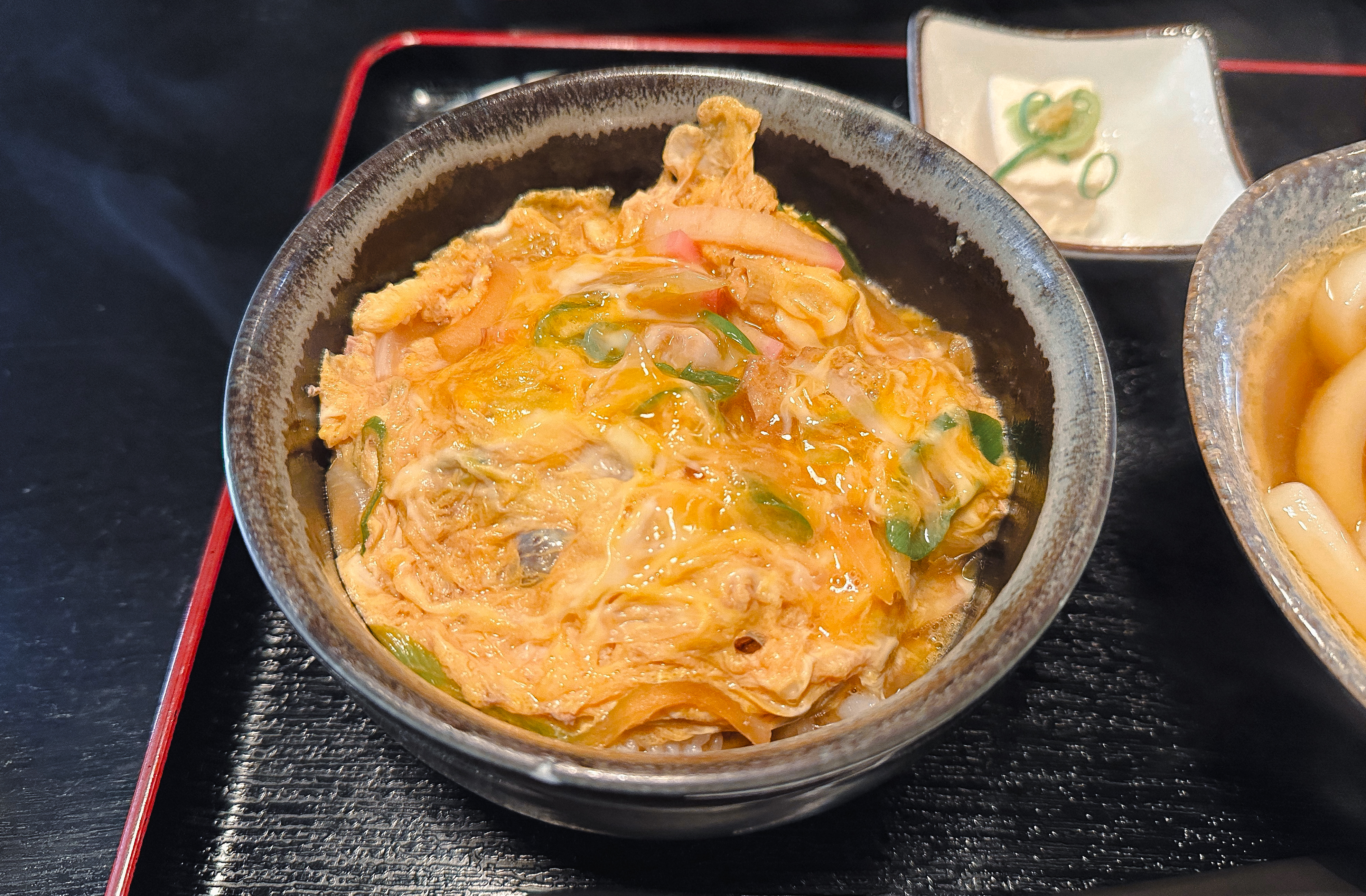 제가 먹은 세트메뉴의 구성은 이렇습니다. 굵은우동과 덮밥으로 구성되어 있었는데, 저는 닭고기가 들어간 덮밥을 선택했습니다. 가격은 1,400円 정도였는데, 약간 비싼듯한 느낌이 있지만 괜찮았습니다.
