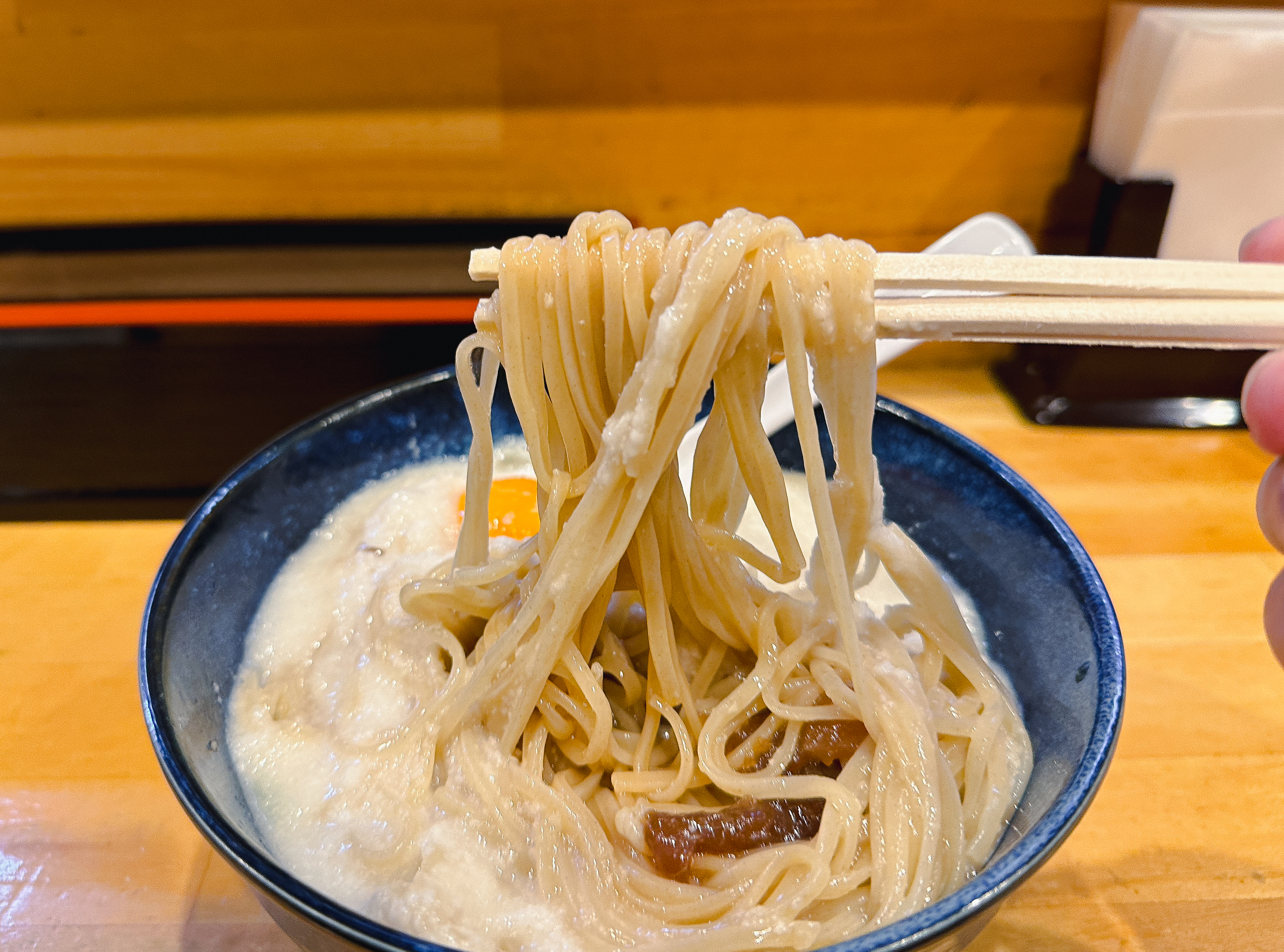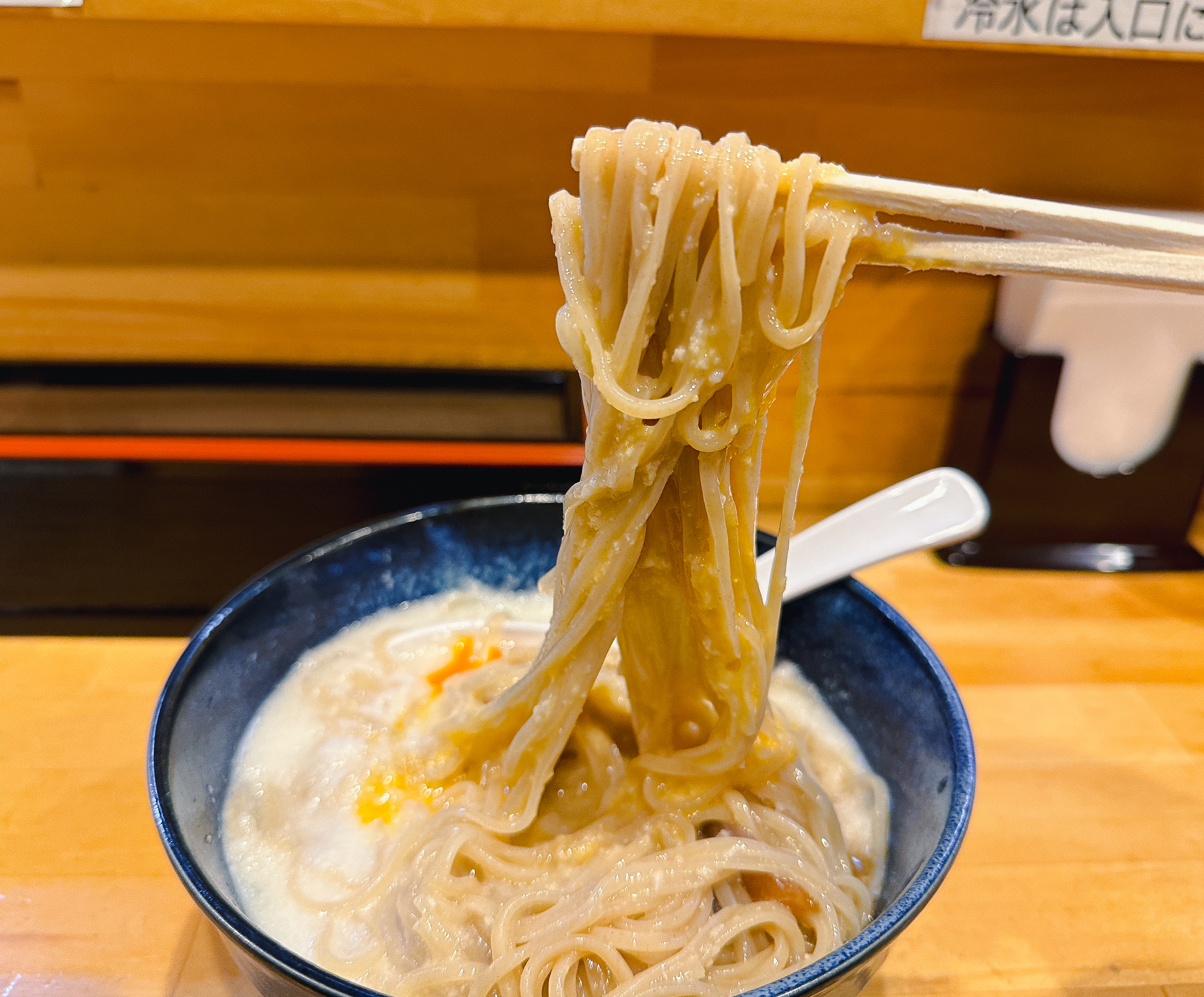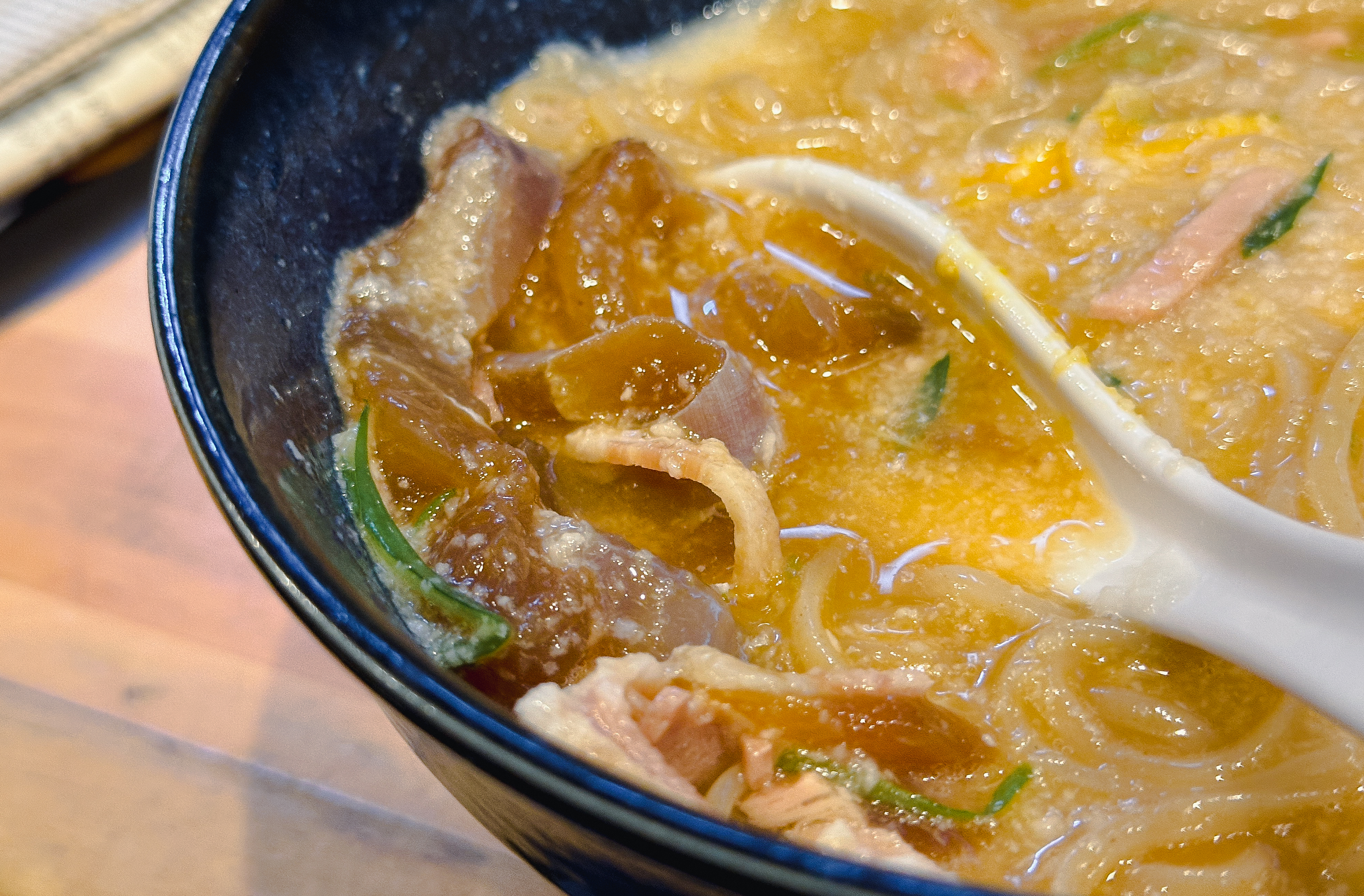 특히 얇은 차슈와 쫀득한 식감의 '간장에 절인 닭고기'가 있어서 식감이 특이했습니다. (추측이지만) 이 닭고기는 생닭을 절여서 만들었는지 족발의 껍데기나 젤리 같은 식감을 갖고 있었습니다. 일부 리뷰에서도 '생닭고기'라고 하는 것을 보면 아마 예상이 맞지 않을까 합니다. 전체적으로 시원하게 먹기 좋은 메뉴였지만, 미끌미끌 거리며 끈적이는 식감을 가진 간마나 낫또를 좋아하는 일본인과는 입맛이 달라서 그런지 썩 호감 가는 메뉴는 아니었습니다.