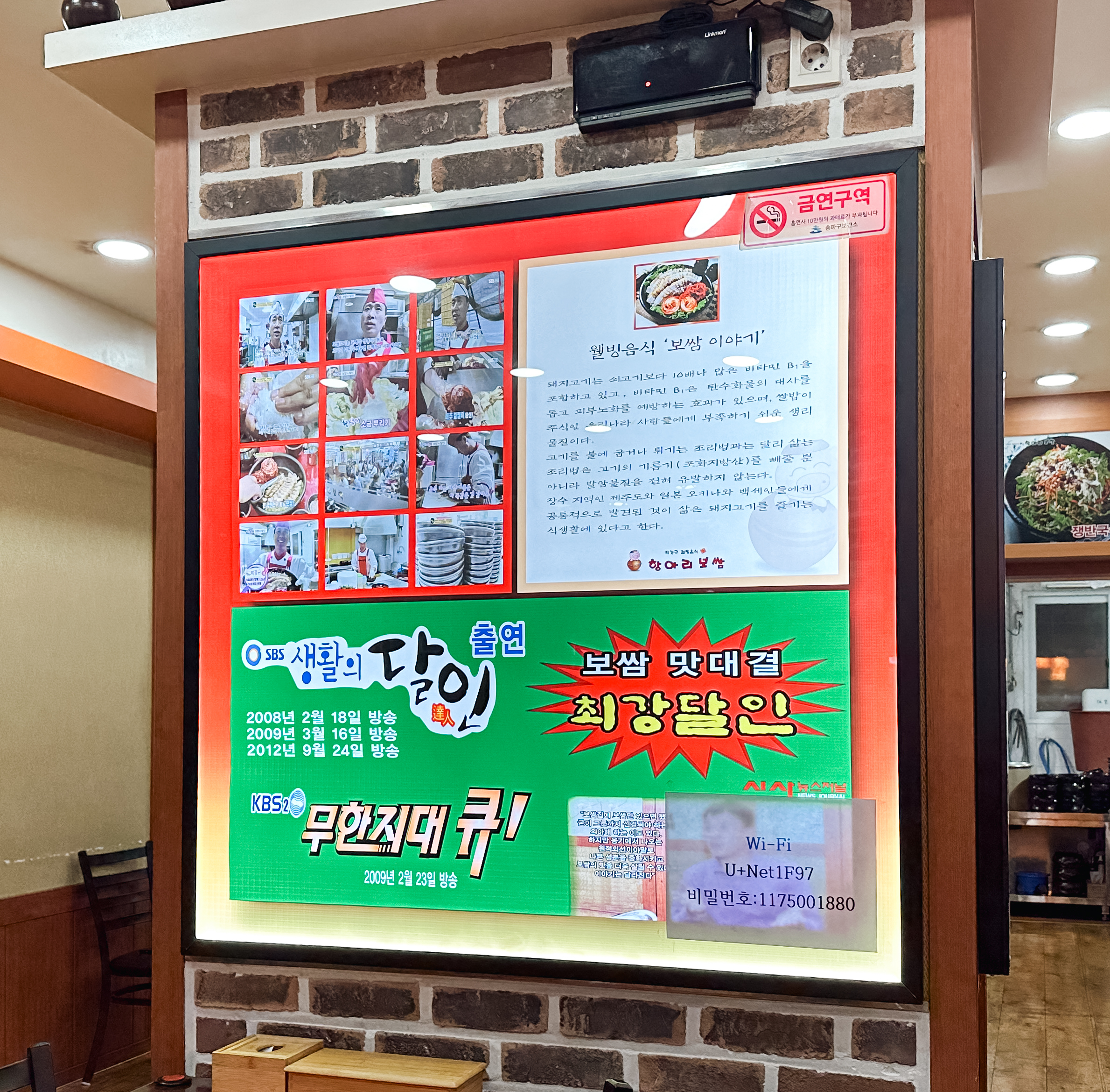 항아리보쌈은 서울 송파구 거여동 42-3 청송회관 1층 에 위치한 가게이며, 영업시간은 11:30~21:00 까지라고 합니다. 가게에 재료소진 시 더 일찍 마감할 수 있다고 합니다. SBS⎡생활의달인⎦에 소개된 적이 있는 가게인지, 가게에는 생활의달인 인증표가 있었습니다.