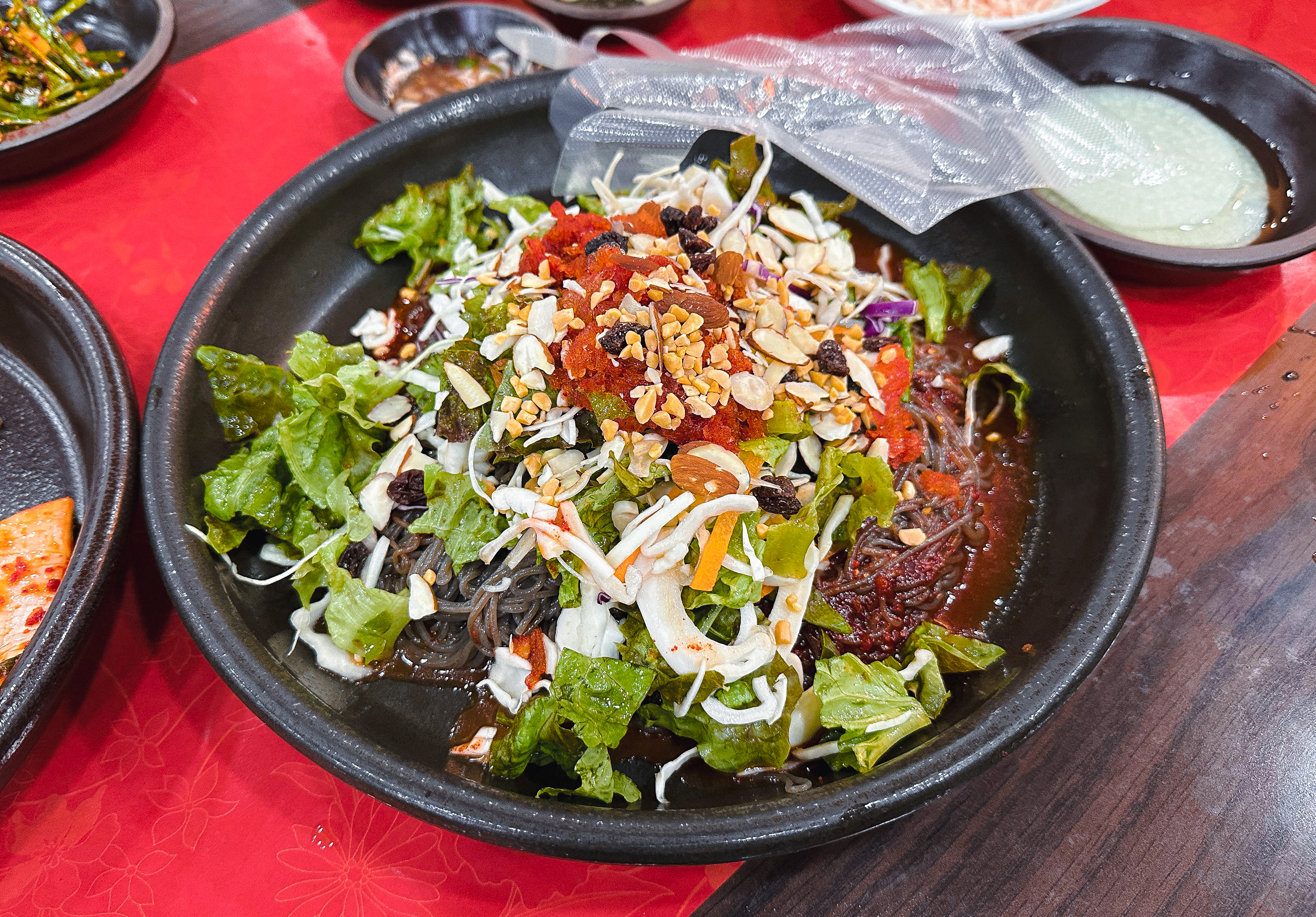 송파구 거여동의 항아리보쌈에 다녀왔습니다. 이곳에는 가성비 좋은 세트메뉴 구성들이 있는데, 저희는 쟁반국수와 보쌈이 함께 나오는 세트를 주문했습니다. 기본 보쌈에도 된장국, 쌈채소, 부추무침, 보쌈김치, 샐러드 등 다양한 구성이 나와서 좋았지만, 쟁반국수까지 더해지니 더 다채롭게 먹을 수 있었던 것 같습니다.