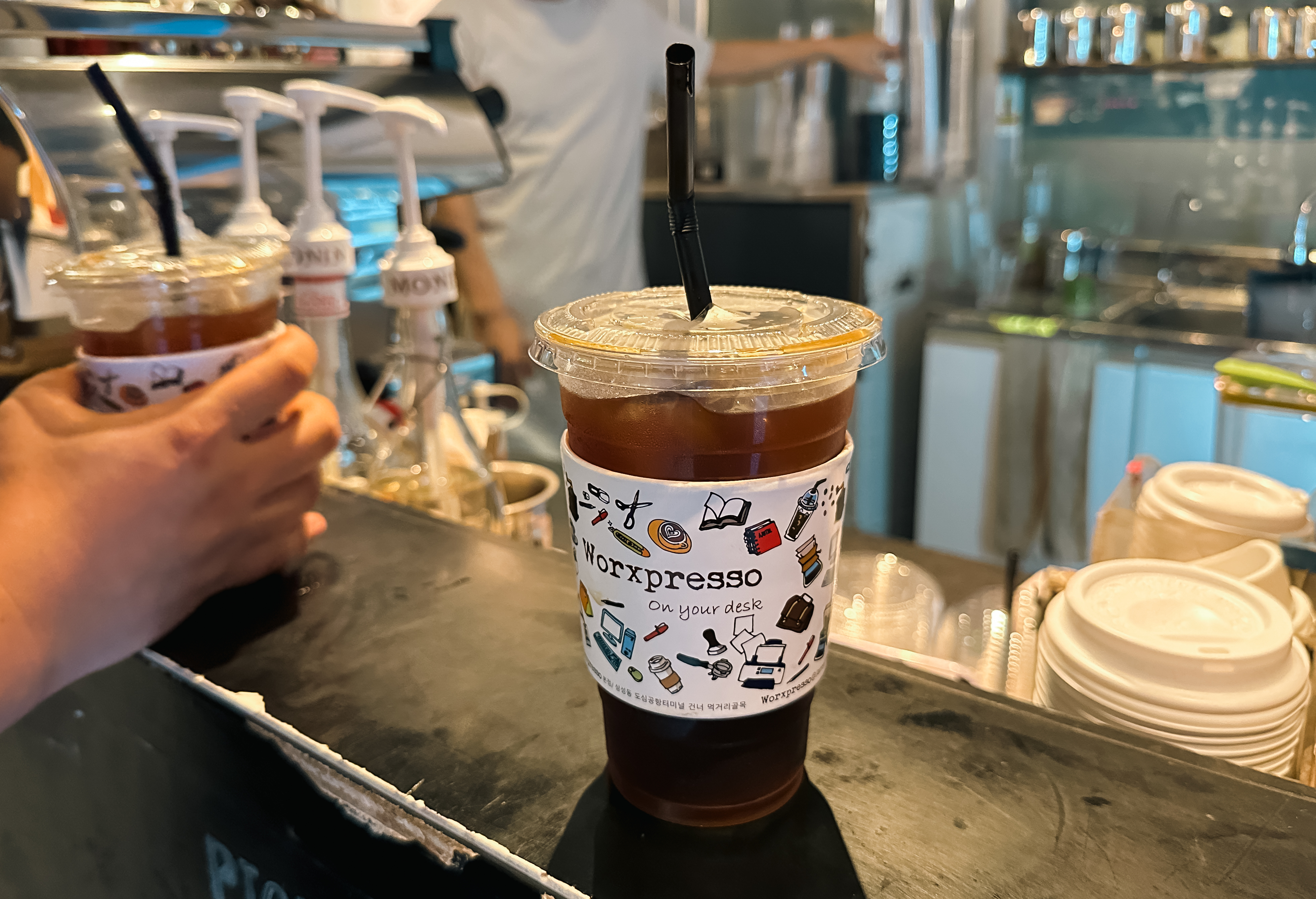 이곳은 직장인들을 위한 카페로 컵홀더에도 적혀있듯이 가게 이름인 'Worxpresso'에 덧붙여 'on your desk'라는 문구를 확인할 수 있었습니다. 인근 직장인들을 상대로 장사를 하기 때문에, 카페에는 별도의 테이블이 없었고 각자의 책상에서 마실 수 있도록 하고 있었습니다.
