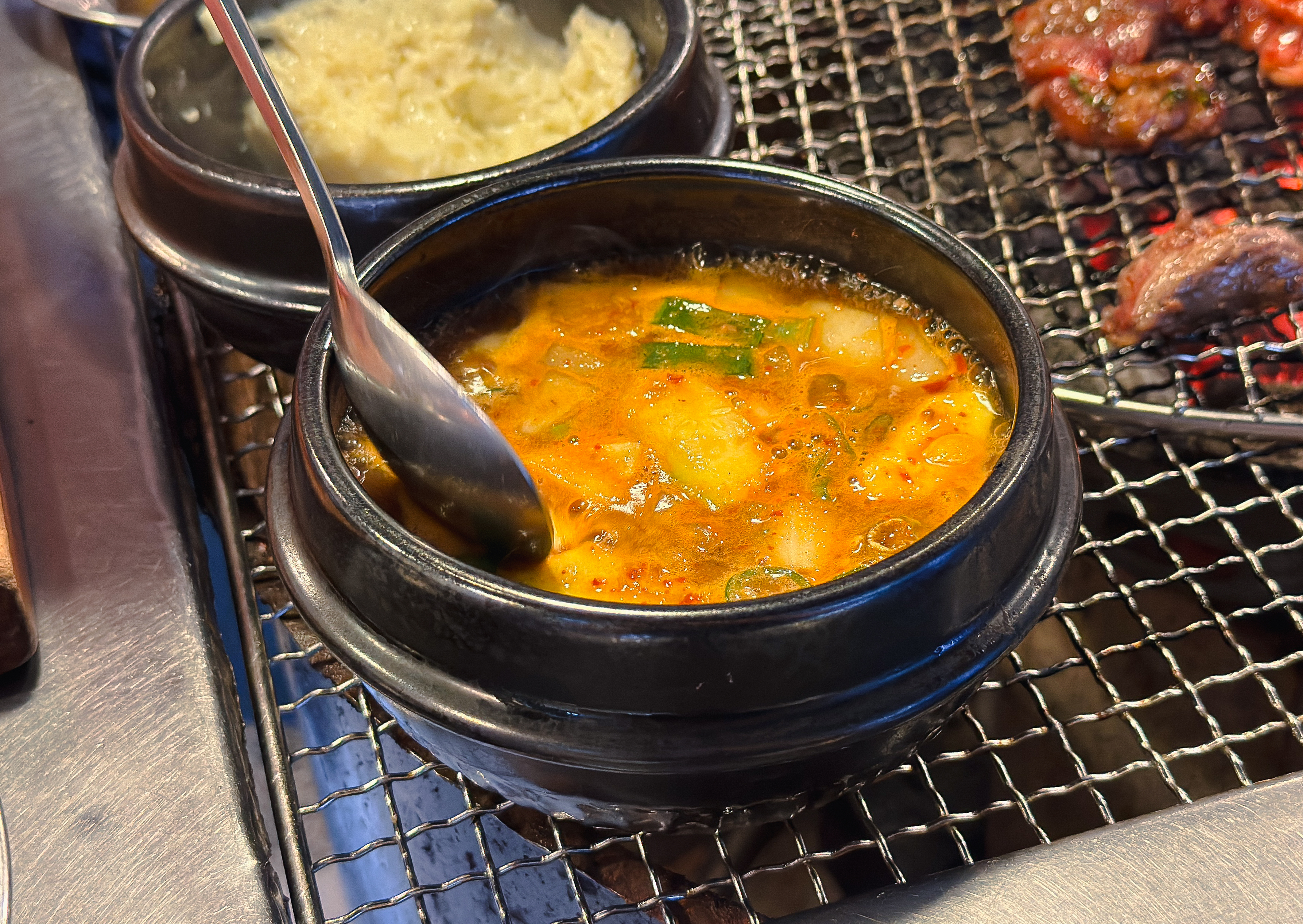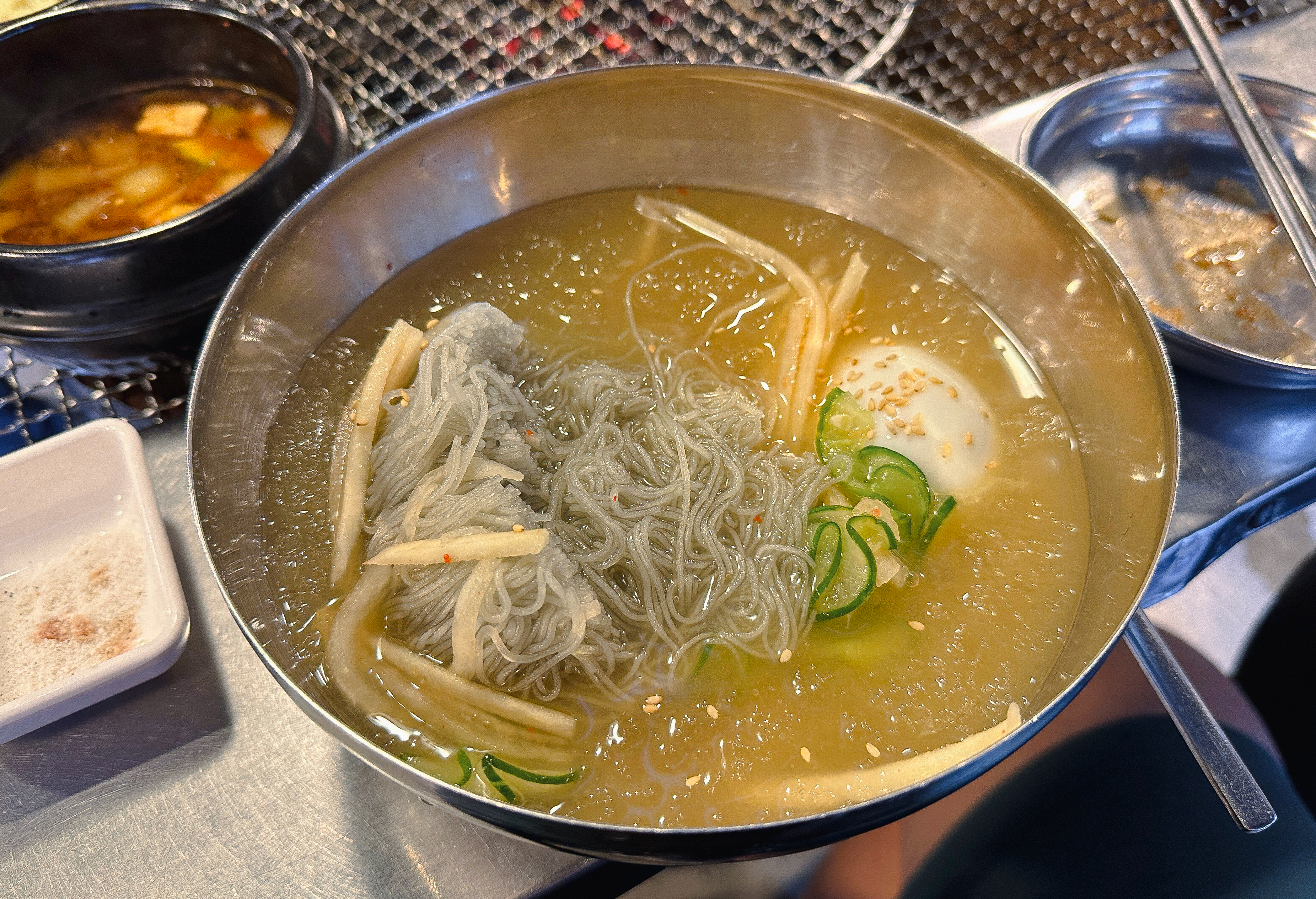이후 된장찌개와 물냉면도 나왔습니다. 고기와 잘 어울리는 구수한 된장찌개와 더불어 고기를 어느 정도 먹고 난 다음에 기름진 입안을 헹궈주는 물냉면까지 전체적으로 무난하게 맛있게 먹을 수 있었습니다.