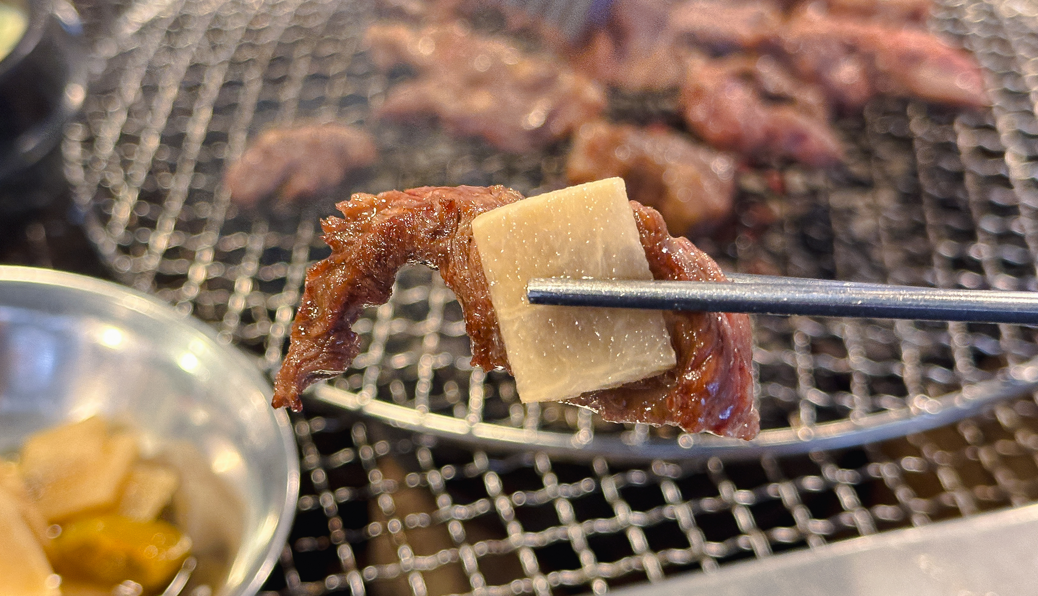 양념소갈비살(46,000원)은 생소갈비살에 사장님이 즉석에서 양념을 버무려 내어 주시는 메뉴인데, 양념소갈비살은 단짠단짠 한 양념을 소갈비에 곁들여 더 진한 맛을 느낄 수 있었습니다. 각자 선호하는 맛이 다르니 양념의 맛을 느끼고 싶으신 분은 양념소갈비살을 드시는 것을 추천드리지만, 담백하고 고소한 고기 본연의 맛을 선호하시는 분은 생소갈비살을 추천드리고 싶습니다.