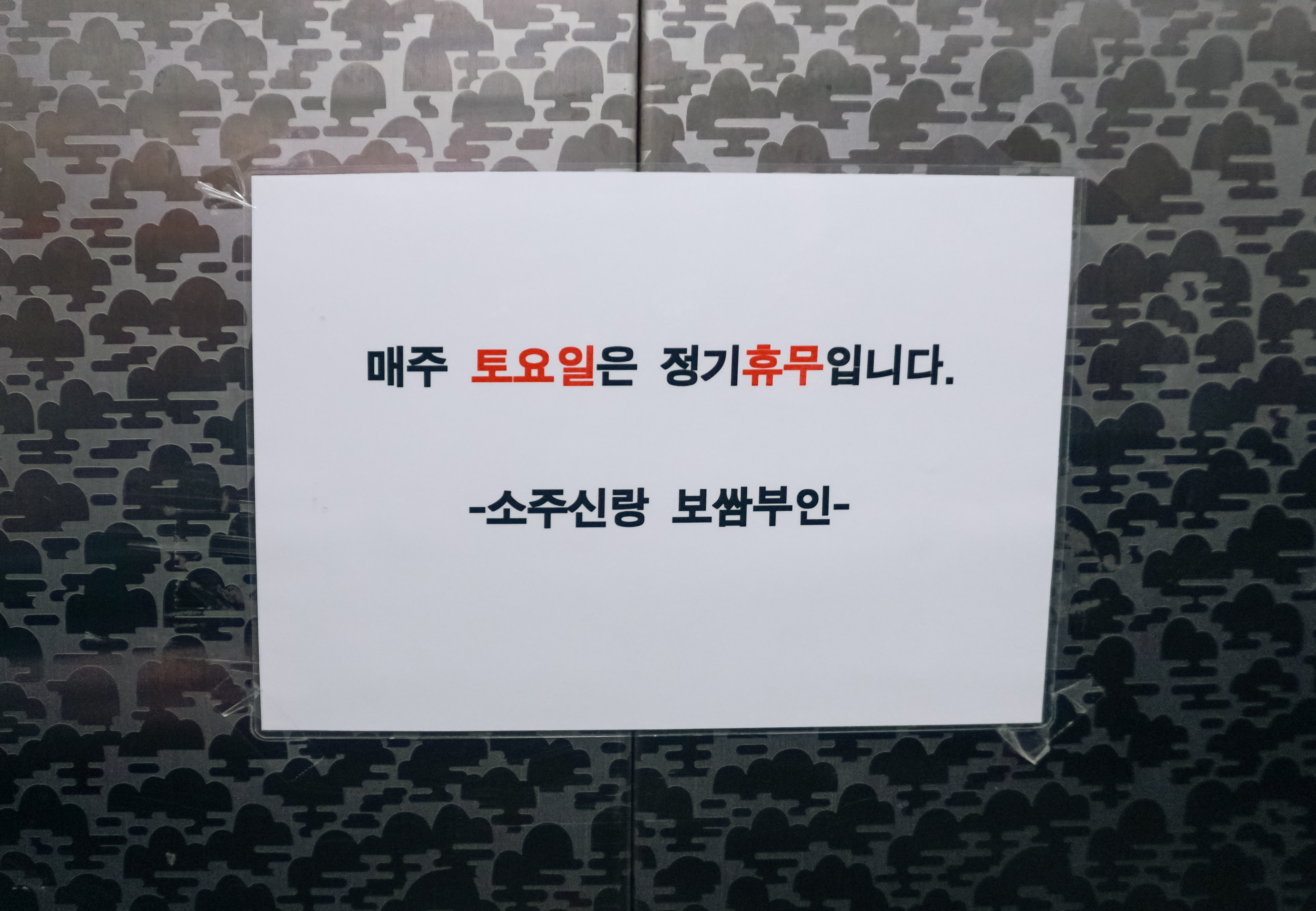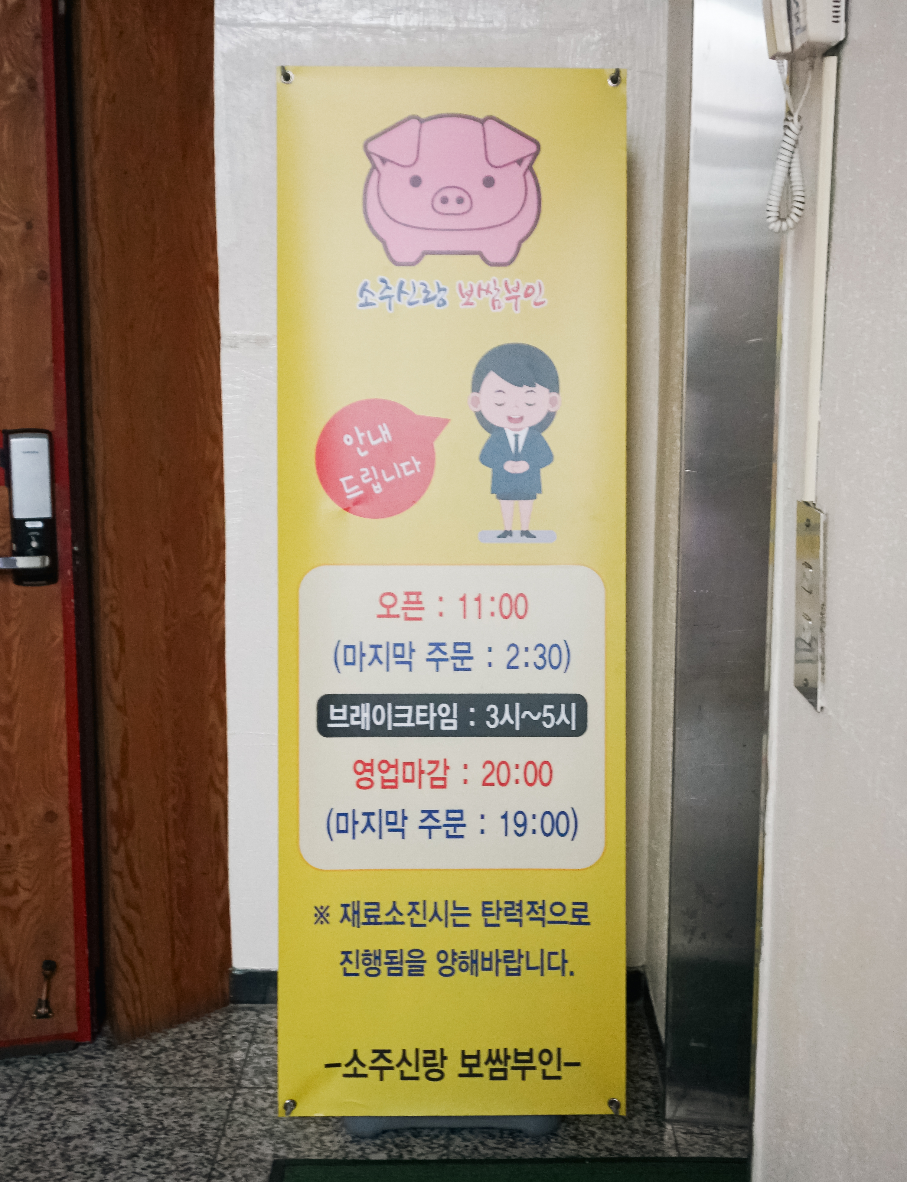 소주신랑보쌈부인은 충북 청주시 사창동 443, 3층에 위치한 가게였습니다. 이곳은 11:00~20:00 까지이며, 휴게시간은 15:00~17:00 까지였습니다. 참고로 이 가게는 토요일은 정기휴무라고 합니다.