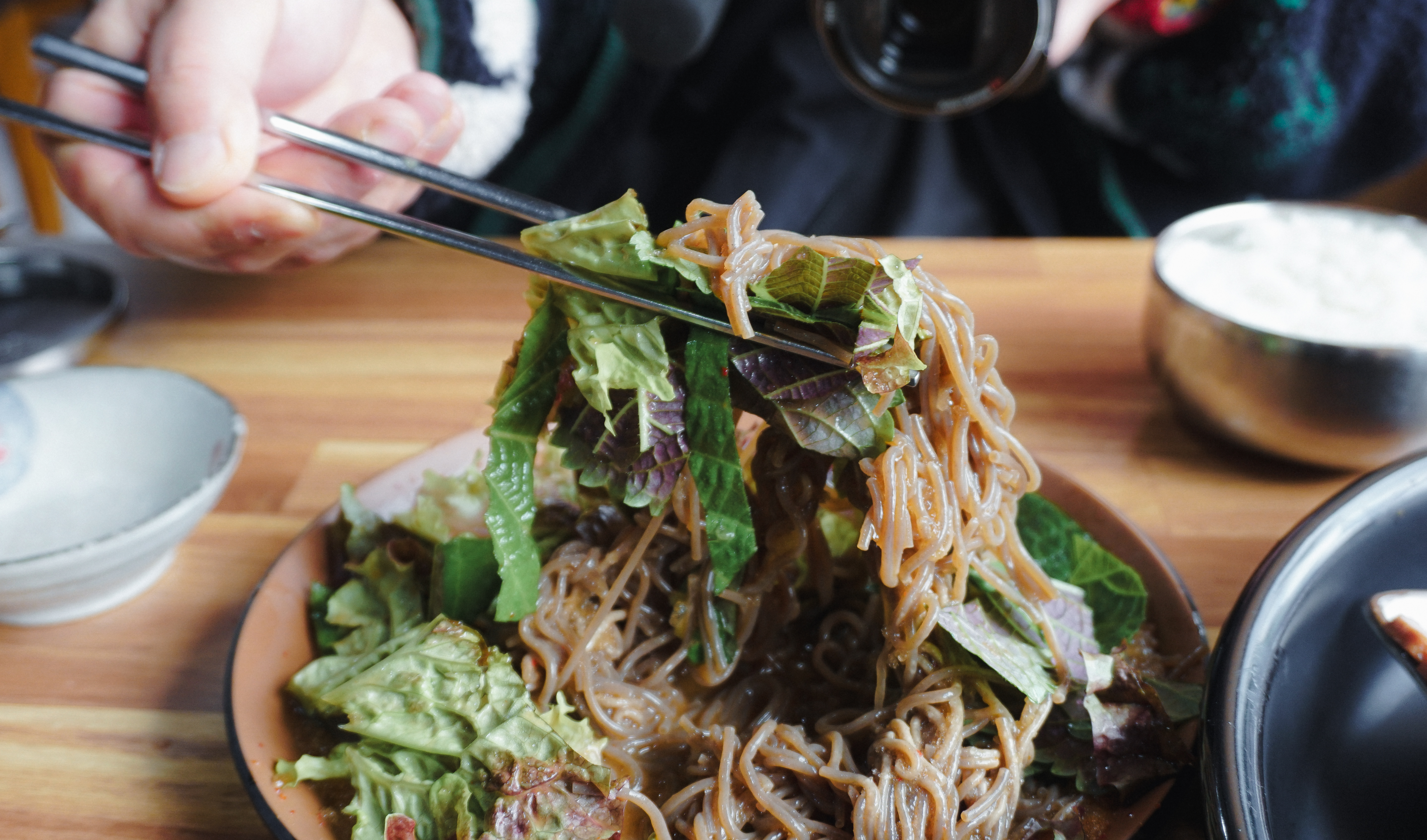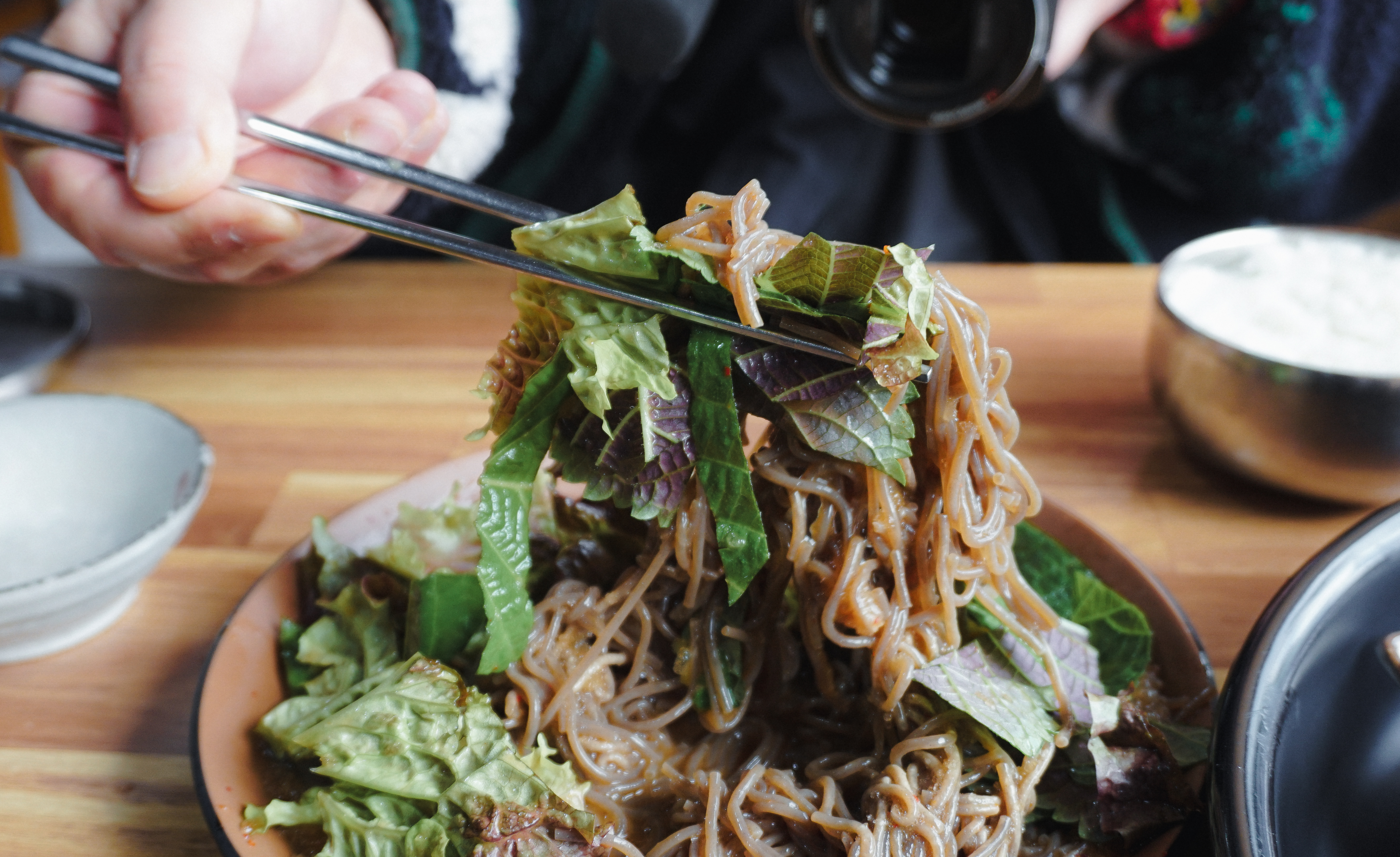 보쌈 정식에는 보쌈, 막국수, 김치찌개, 공기밥이 구성되어 있었습니다. 보통 보쌈정식 하면 보쌈과 간단한 반찬만 나오곤 하는데, 이곳은 보쌈에 막국수에 김치찌개까지 한상이 차려져 나왔고, 쌈채소 같은 경우에는 원하는 만큼 가져다 먹을 수 있었습니다.