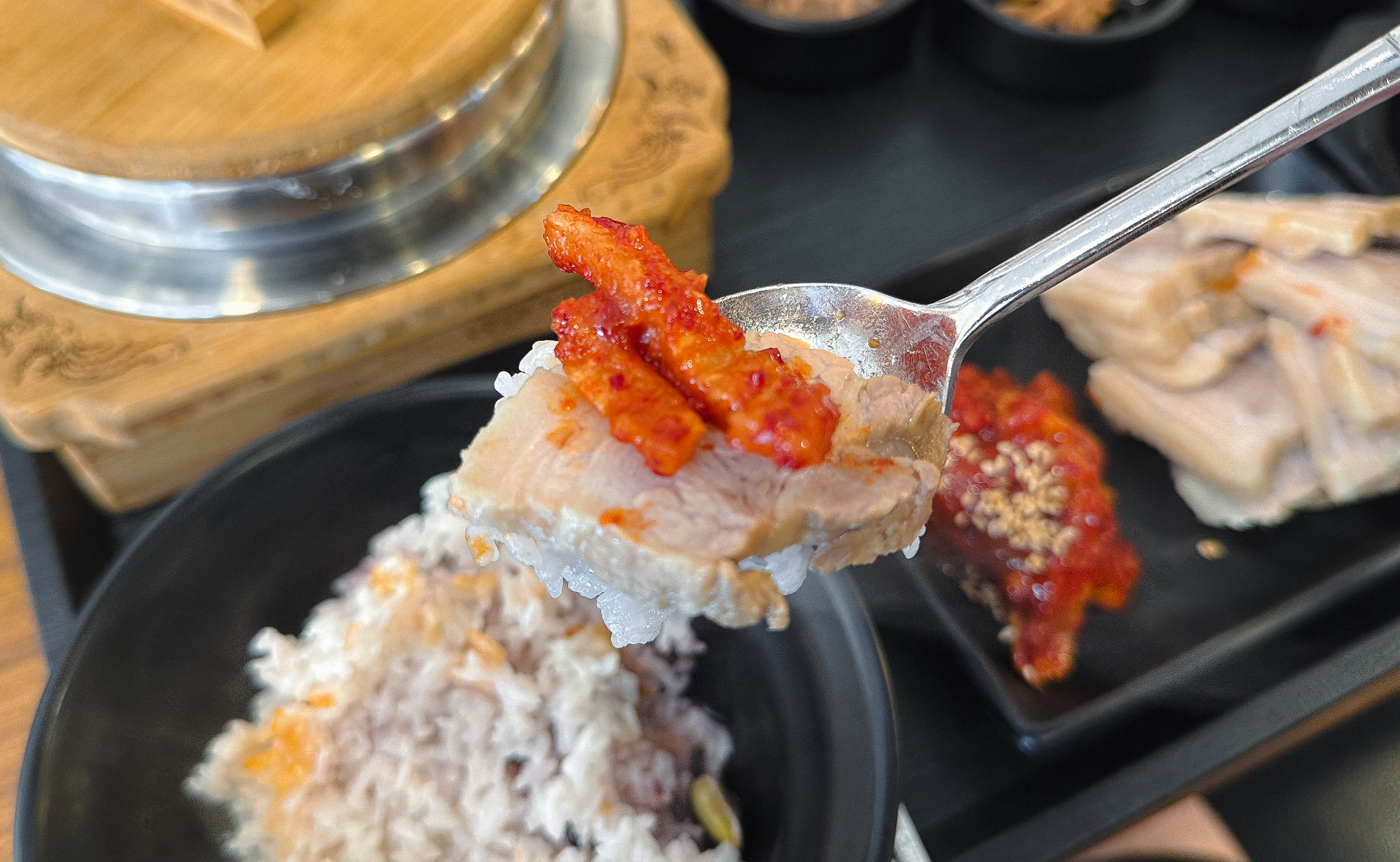 메인 메뉴인 보쌈은 부드럽게 잘 삶아졌고, 누린내나 잡내가 나지 않아서 좋았습니다. 같이 나온 달달한 무김치와 곁들여 먹어도 맛있었고요. 글쎄 이전에 갔을 때는 뭔가 아쉬운 느낌이 강했는데, 요즘은 나름 분발하는 모습입니다.