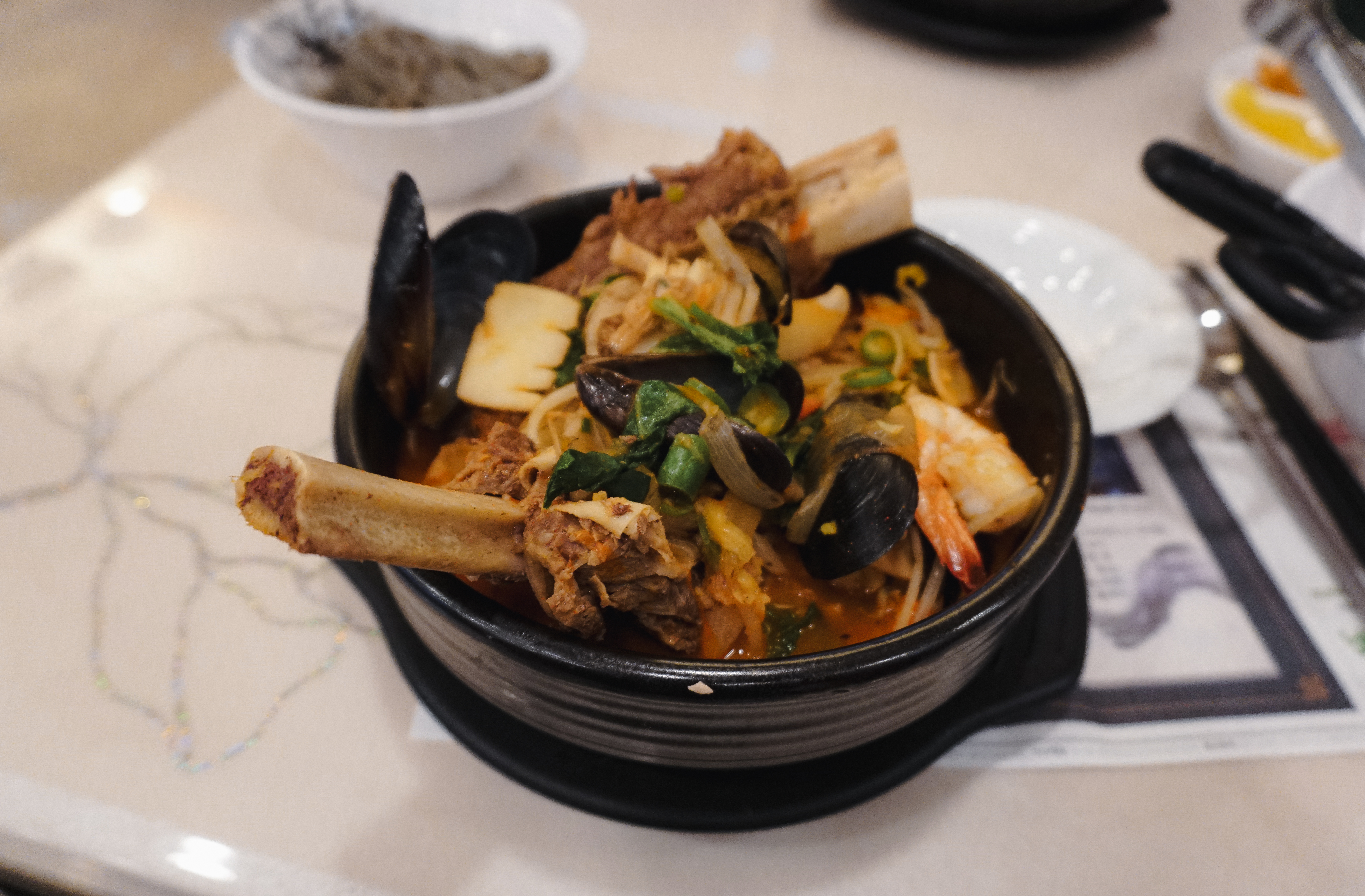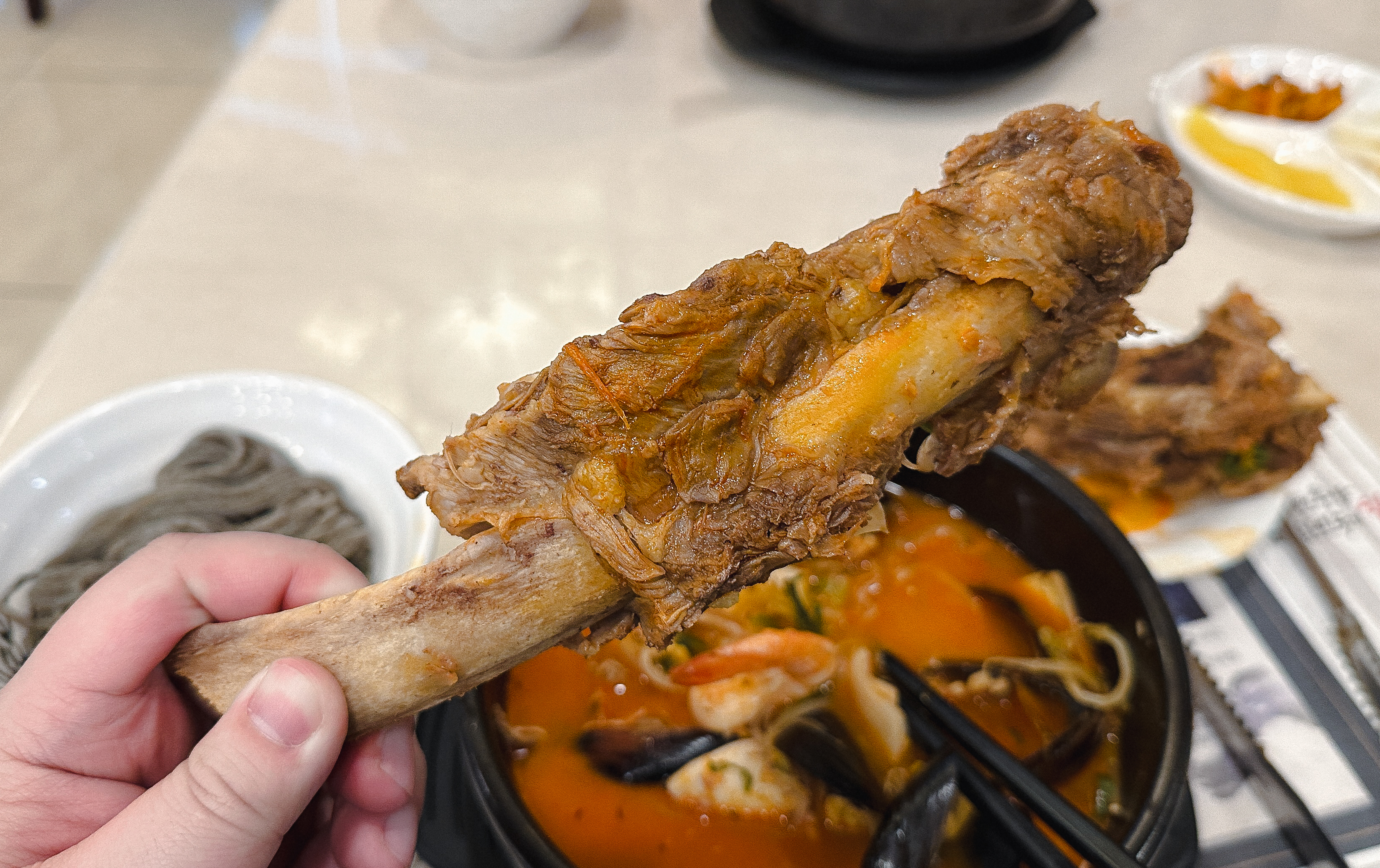 소갈비짬뽕에는 꽤 큼직한 소갈비가 두 대가 들어있었고, 짬뽕 국물 속에도 갖가지 해산물이 듬뿍 들어있어 15,000원이라는 가격이 아깝지 않다는 생각이 들었습니다. 소갈비도 부드럽고 짬뽕 국물도 맛이 좋아서 꽤 만족스럽게 먹을 수 있었습니다.