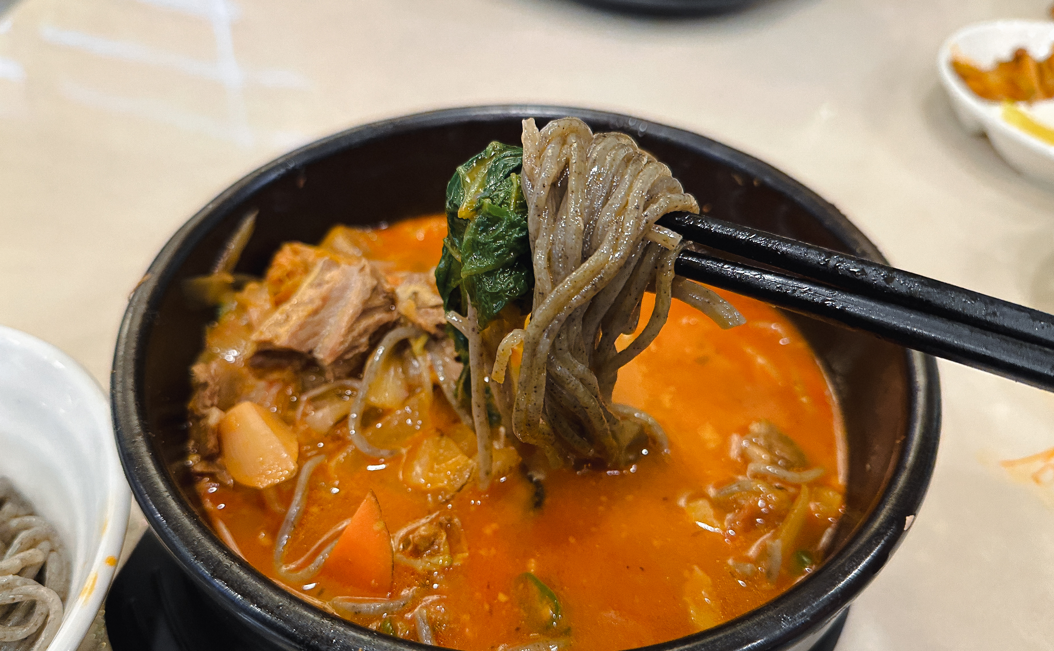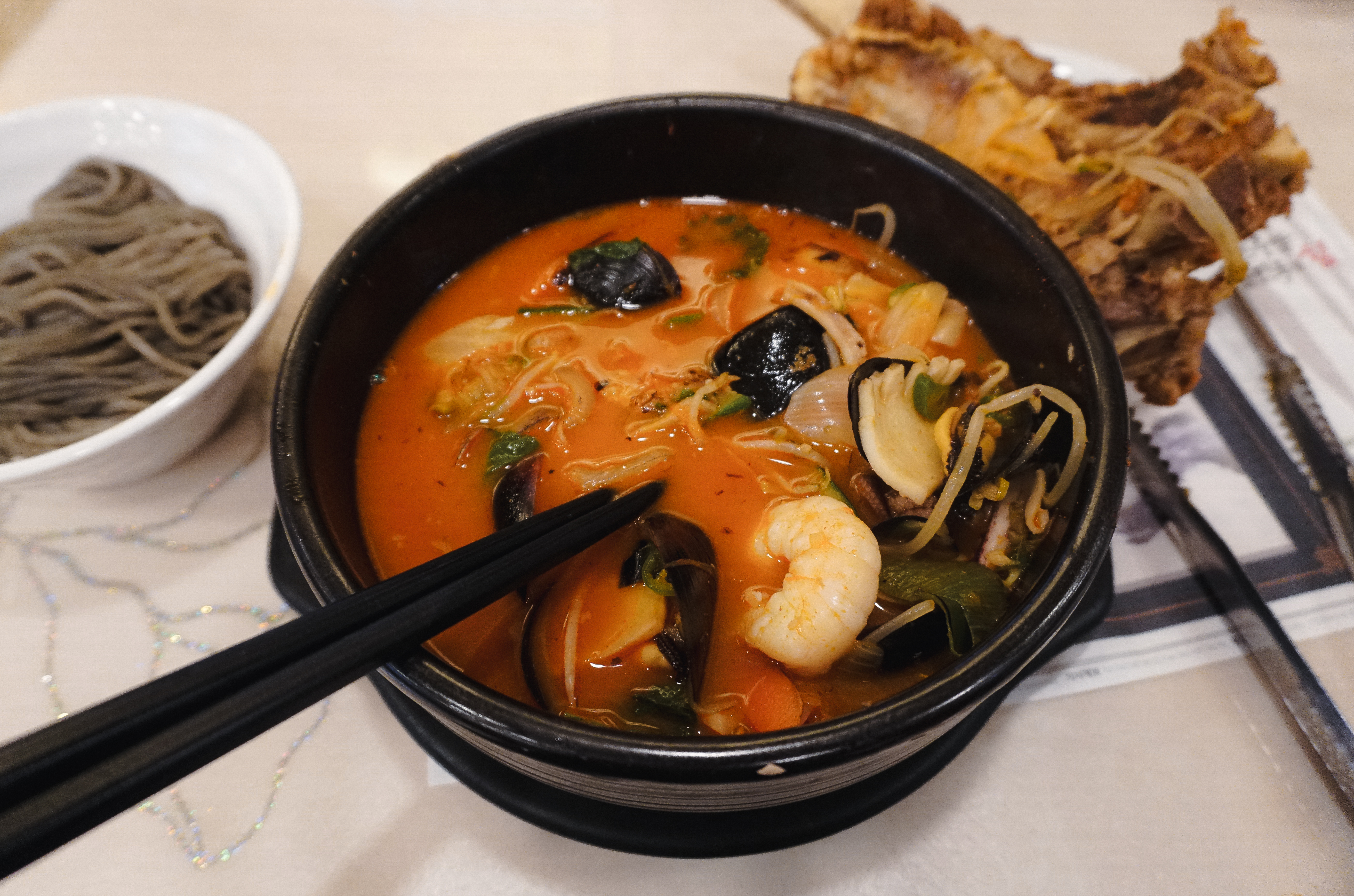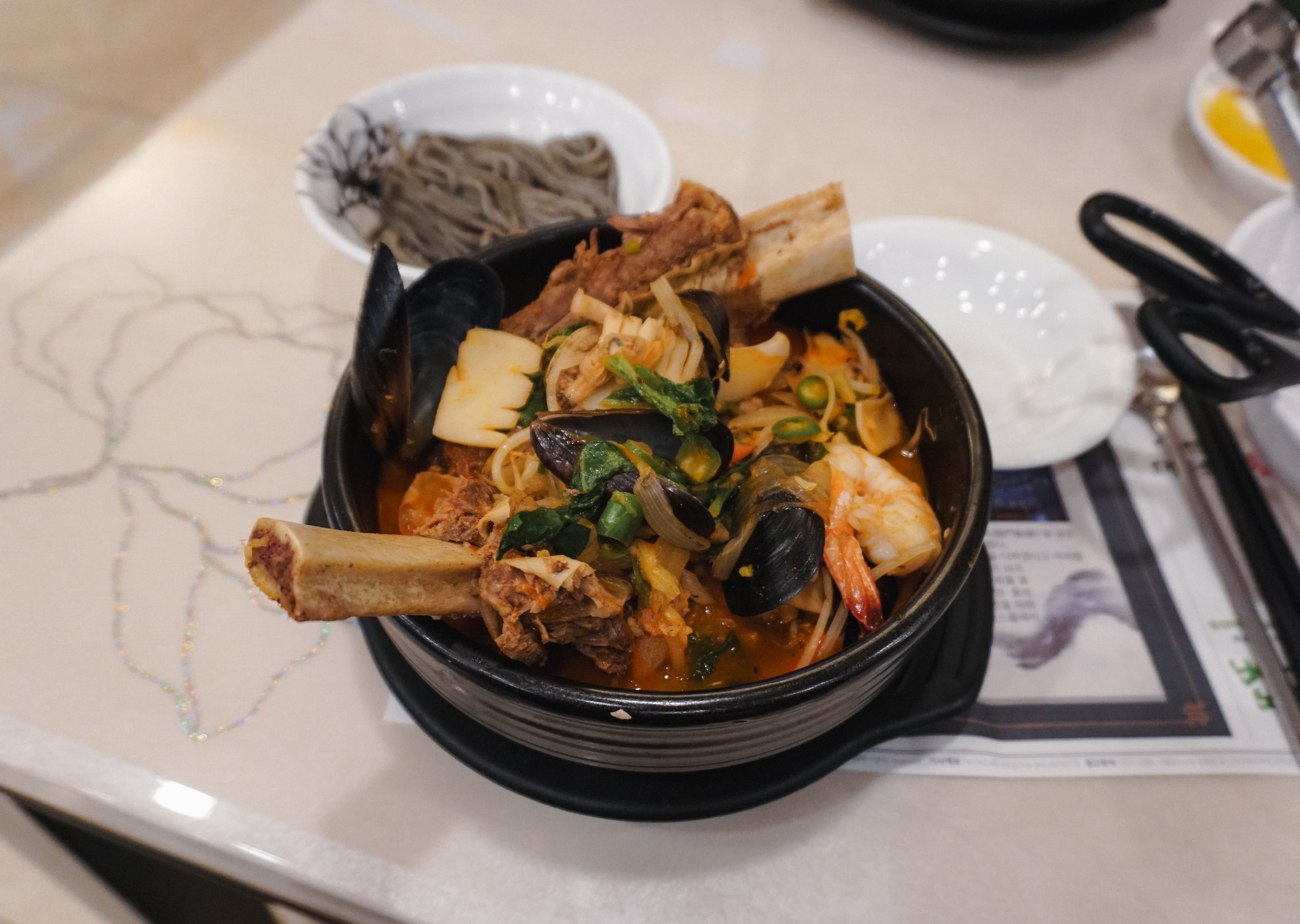 소갈비짬뽕의 모습은 위와 같습니다. 천진중화요리의 좋은 점은 짬뽕과 면을 따로 주어 건더기를 따로 건져먹고 면을 추가하여 먹을 수 있도록 하고 있었습니다.