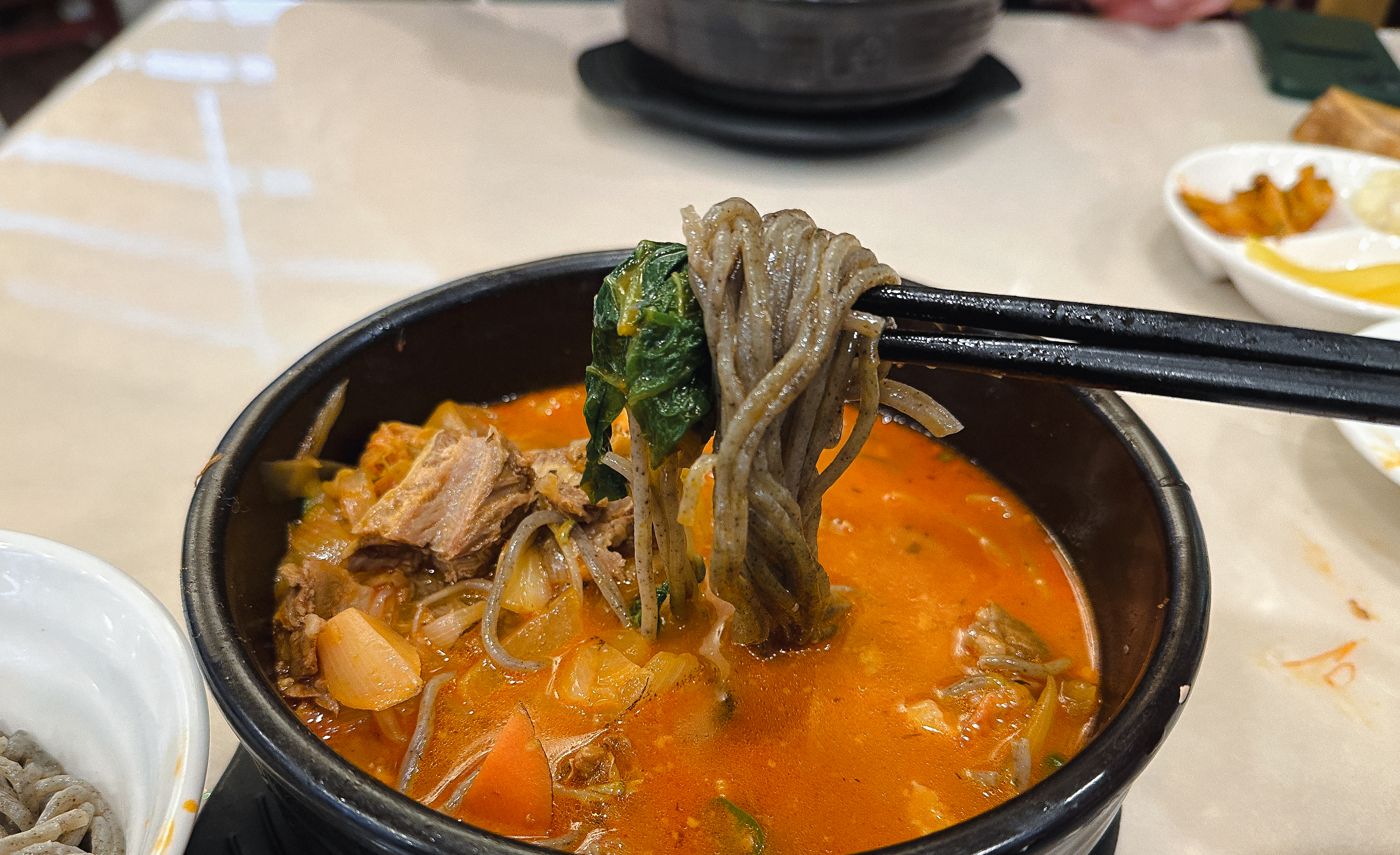 소갈비짬뽕의 모습은 위와 같습니다. 천진중화요리의 좋은 점은 짬뽕과 면을 따로 주어 건더기를 따로 건져먹고 면을 추가하여 먹을 수 있도록 하고 있었습니다.