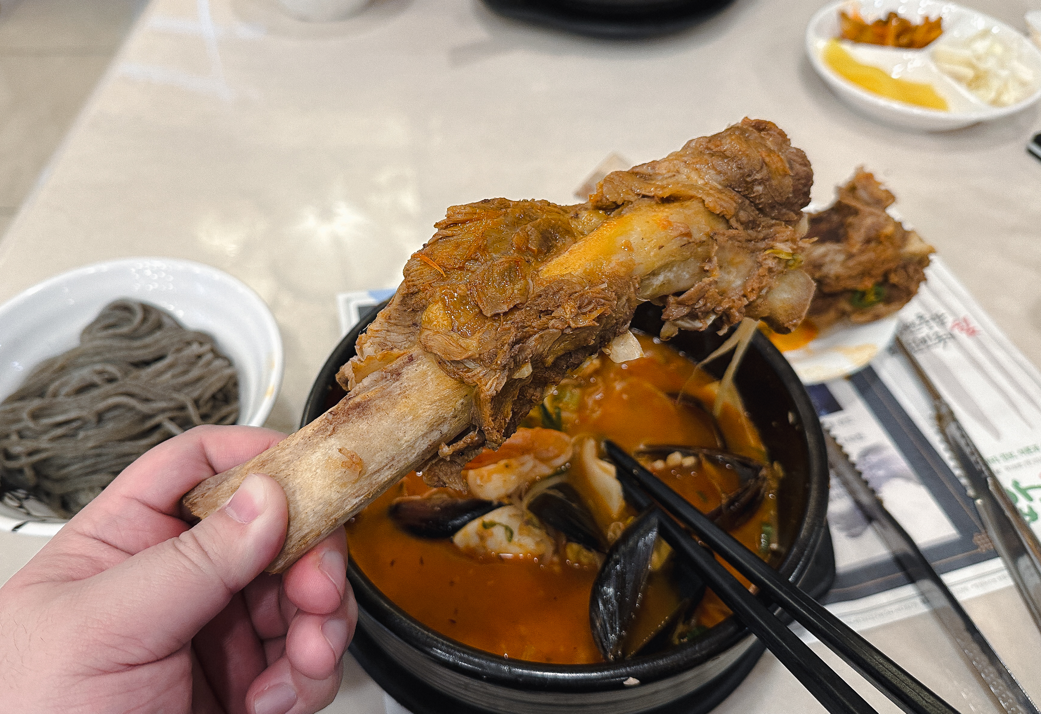 소갈비짬뽕에는 꽤 큼직한 소갈비가 두 대가 들어있었고, 짬뽕 국물 속에도 갖가지 해산물이 듬뿍 들어있어 15,000원이라는 가격이 아깝지 않다는 생각이 들었습니다. 소갈비도 부드럽고 짬뽕 국물도 맛이 좋아서 꽤 만족스럽게 먹을 수 있었습니다.