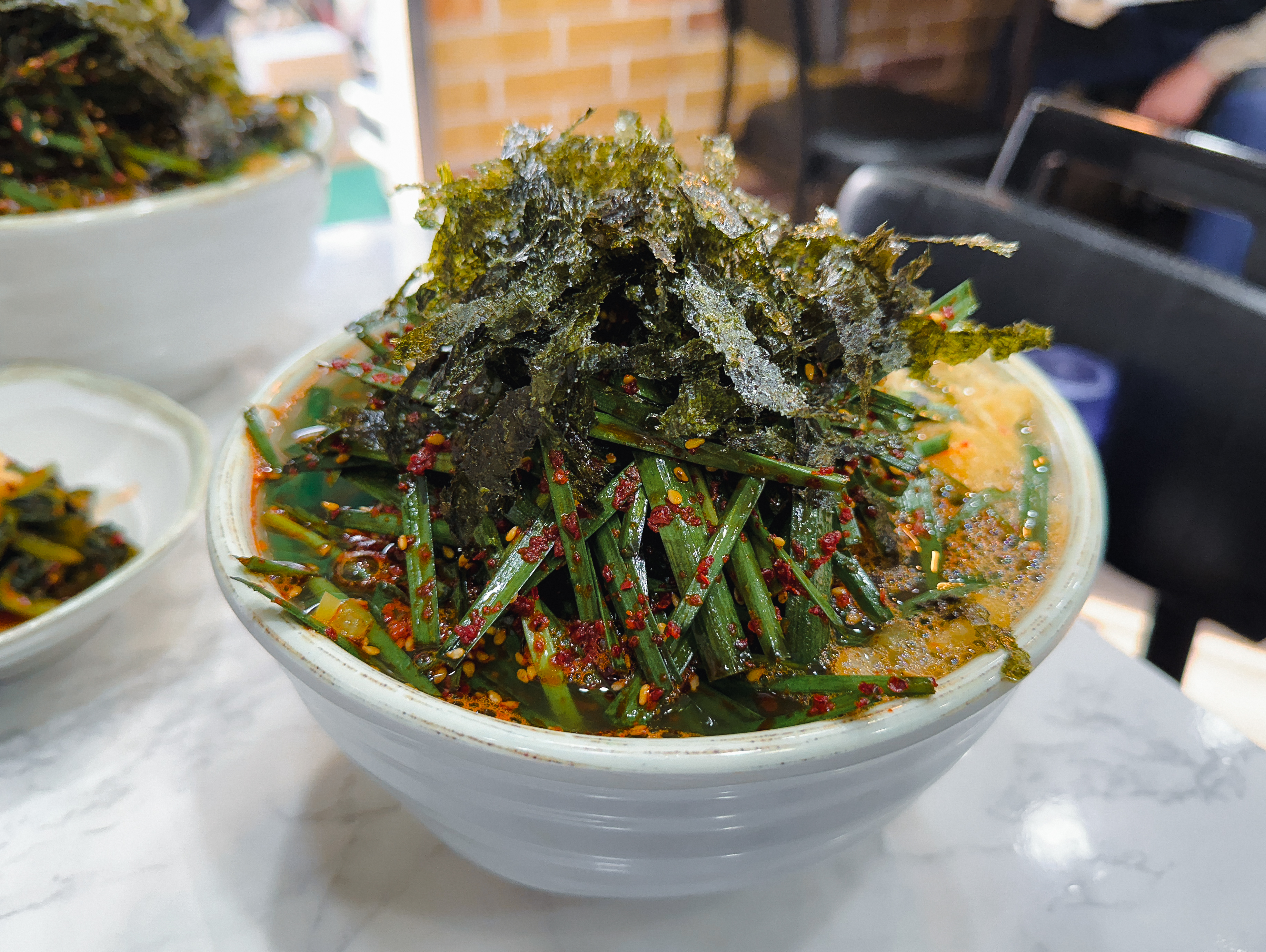 이곳은 특히 국수 양이 작거든 리필을 할 수 있었습니다. 그 밖에도 메뉴를 남김없이 다 먹을 경우 음료수서비스나 500원 할인을 하고 있었고, 채소 같은 경우도 추가를 원하시면 가게 사장님께 말씀드리면 더 주고 계셨습니다. 저는 양이 많을 것이 걱정되어 다이어트 사이즈의 얼큰부추국수를 주문했습니다.