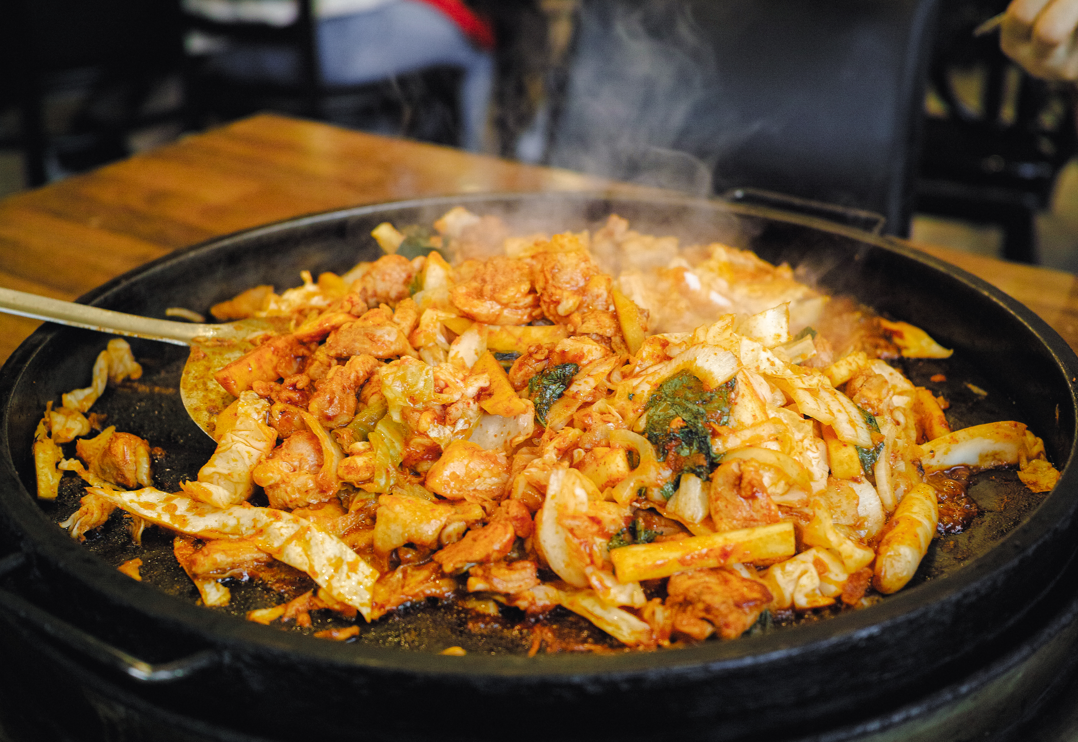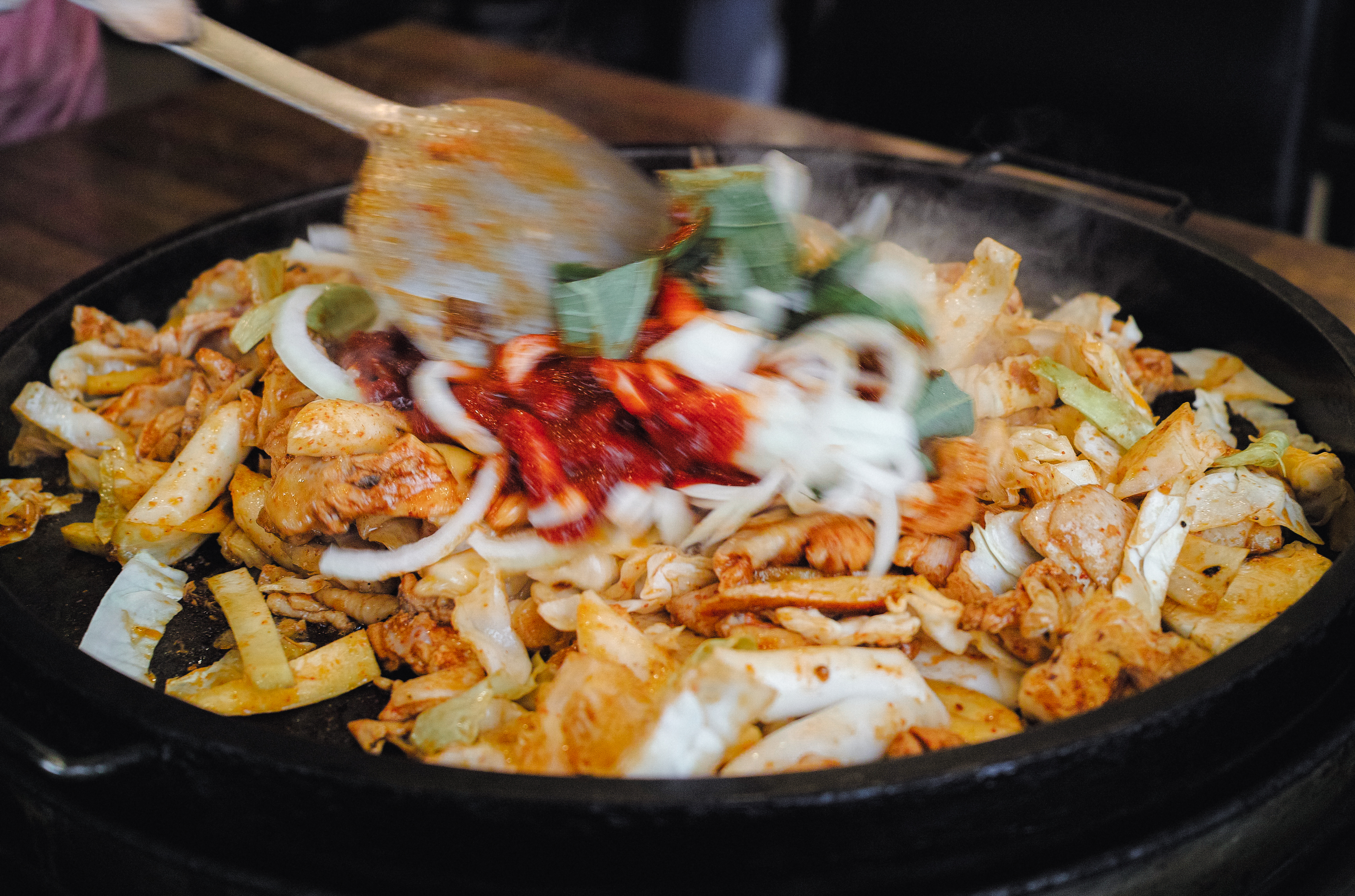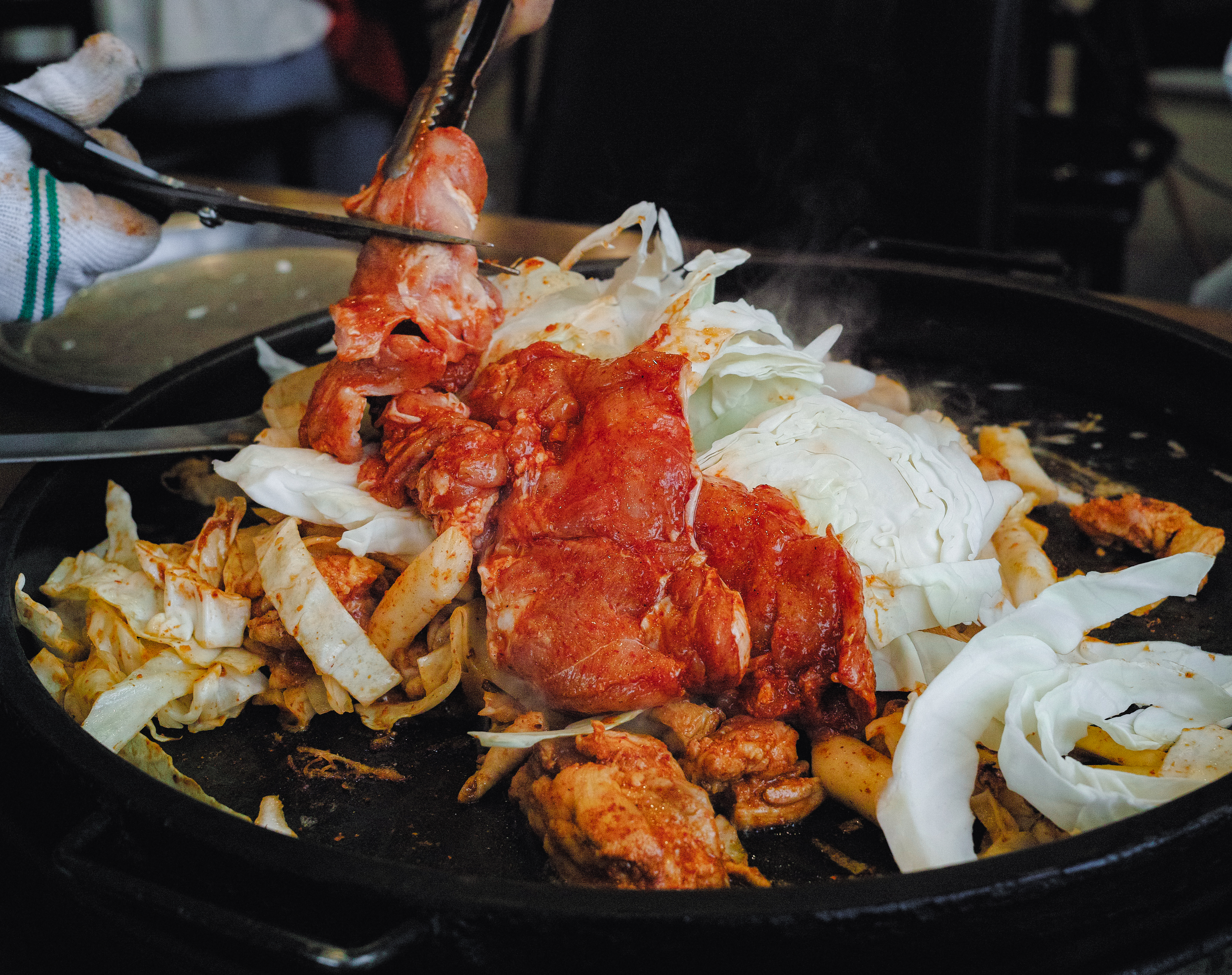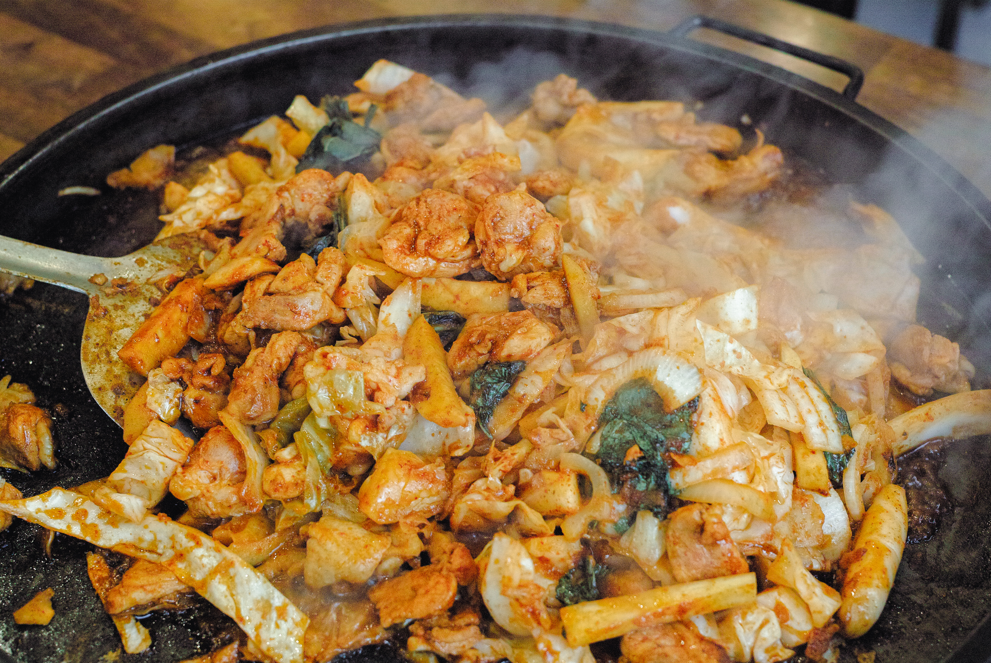 춘천의 닭갈비 맛집 우성닭갈비에서 닭갈비와 볶음밥을 먹었습니다. 이곳의 닭갈비는 처음에는 양배추와 닭고기만 볶다가 나중에 추가양념과 양파와 깻잎을 함께 볶아서 만들어주고 계셨습니다. 우성닭갈비는 손님들에게 직접 볶게 하는 것이 아니고, 중간중간 틈틈이 자리에 찾아와서 닭고기가 다 익을 때까지 책임지고 볶아주고 계셨습니다. 그만큼 부드러운 닭고기에 양념이 진해서 맛있게 먹을 수 있는 메뉴였습니다.