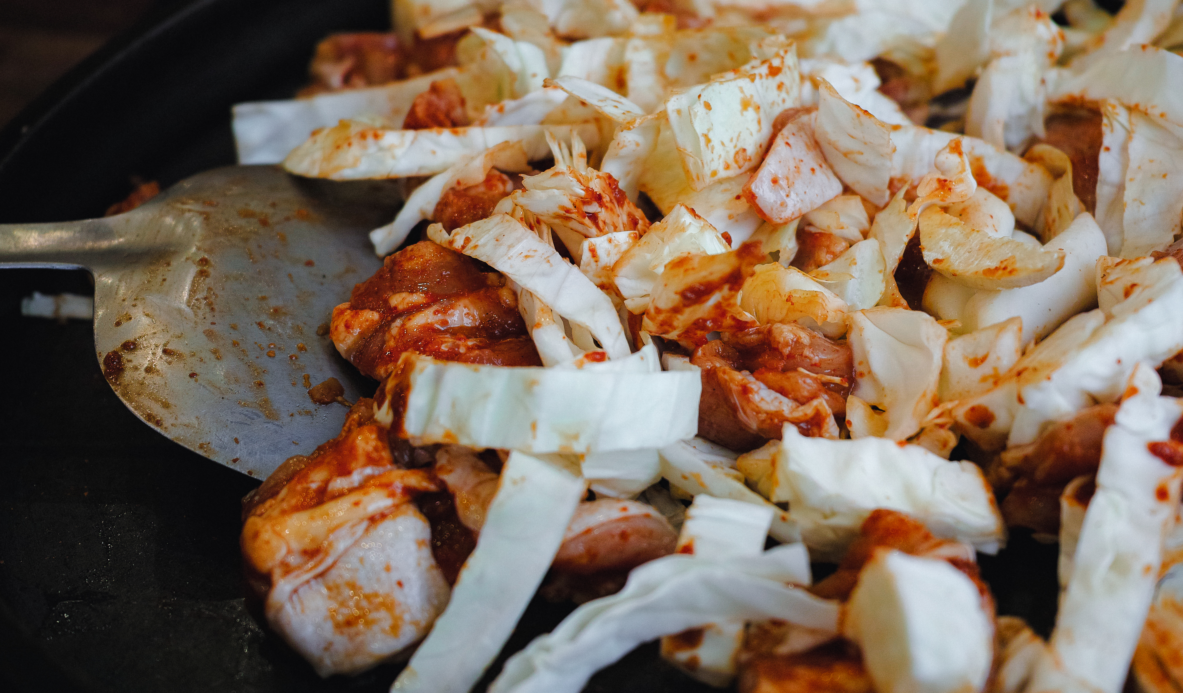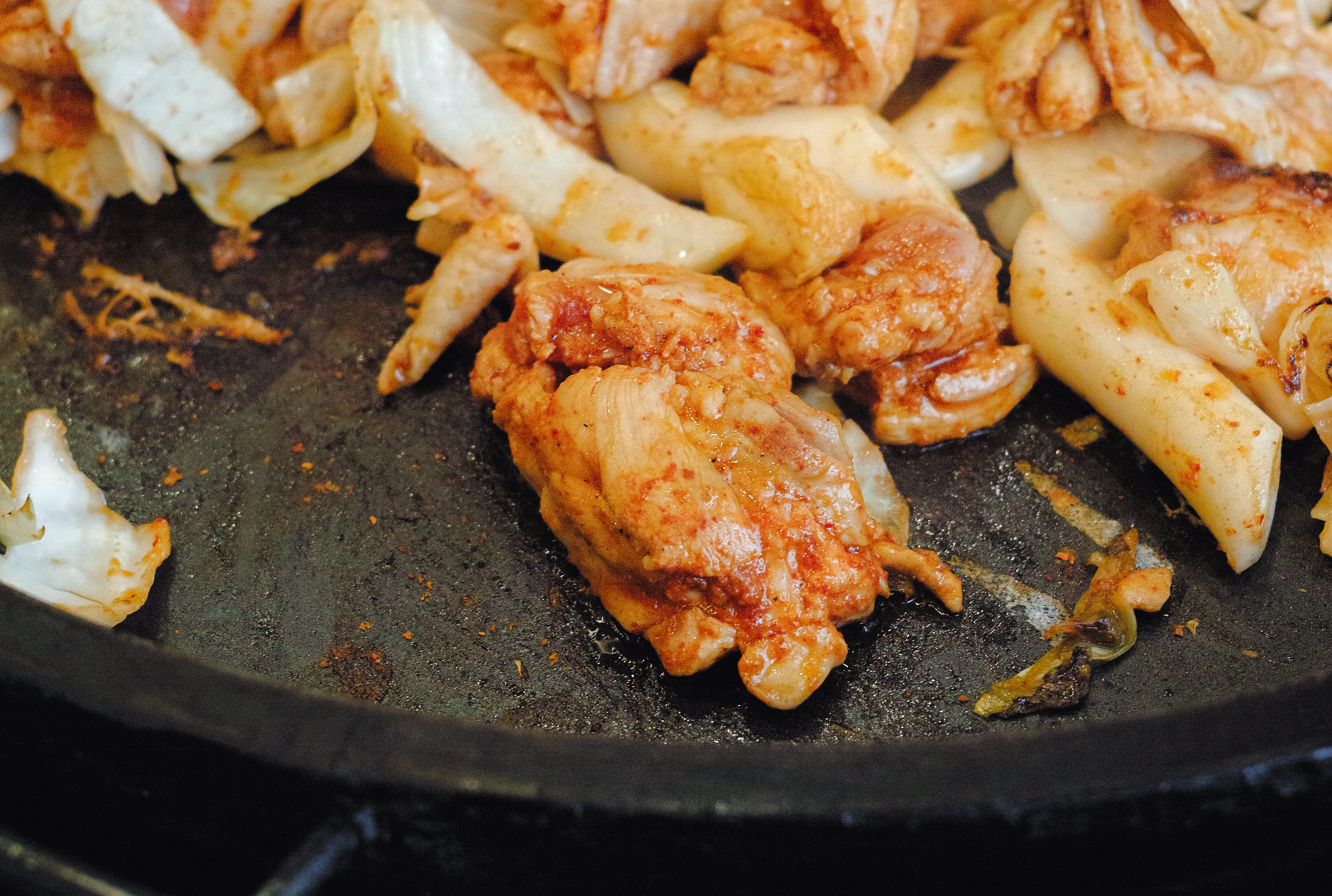 우성닭갈비는 처음부터 양념을 세게 해서 볶는 것이 아니라, 양념된 닭고기와 양배추를 미리 볶은 다음에 추가 양념에 깻잎과 양파 등을 추가하여 볶아주었습니다. 제가 워낙 닭갈비를 좋아해서 평소에 먹던 양보다 더 많이 주문했는데, 저도 이제 나이가 들었는지 욕심에 비해서는 많이 못 먹겠더라고요.