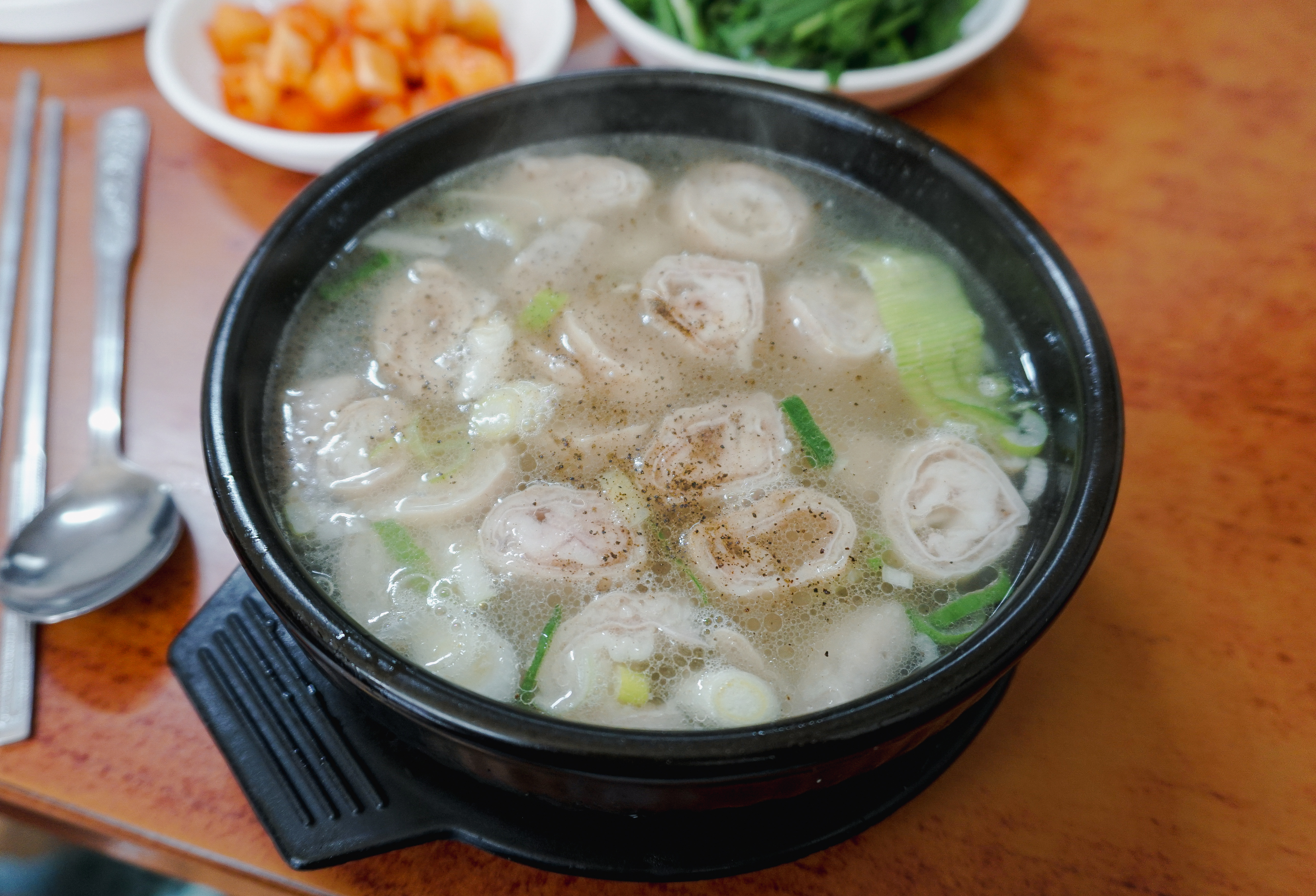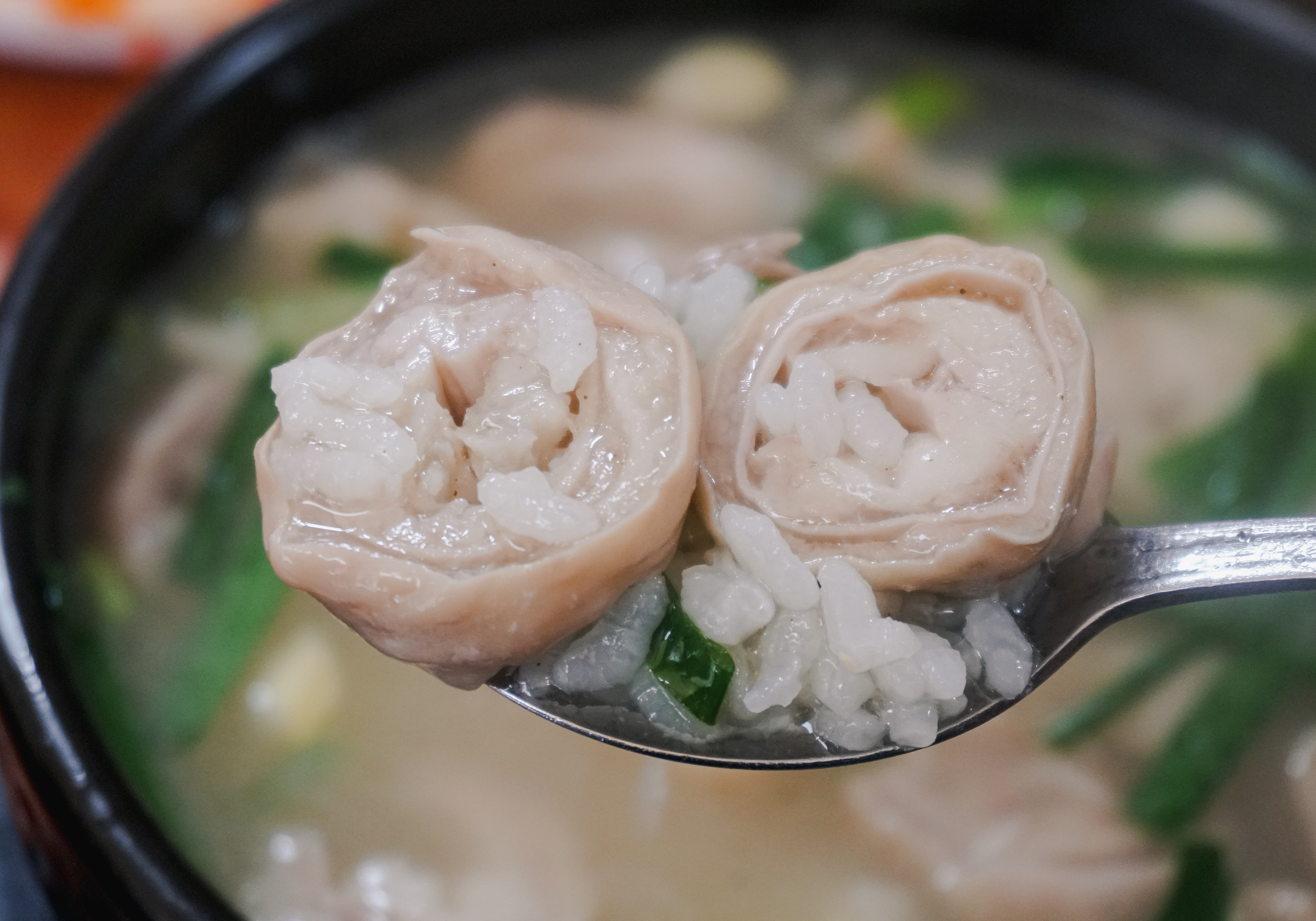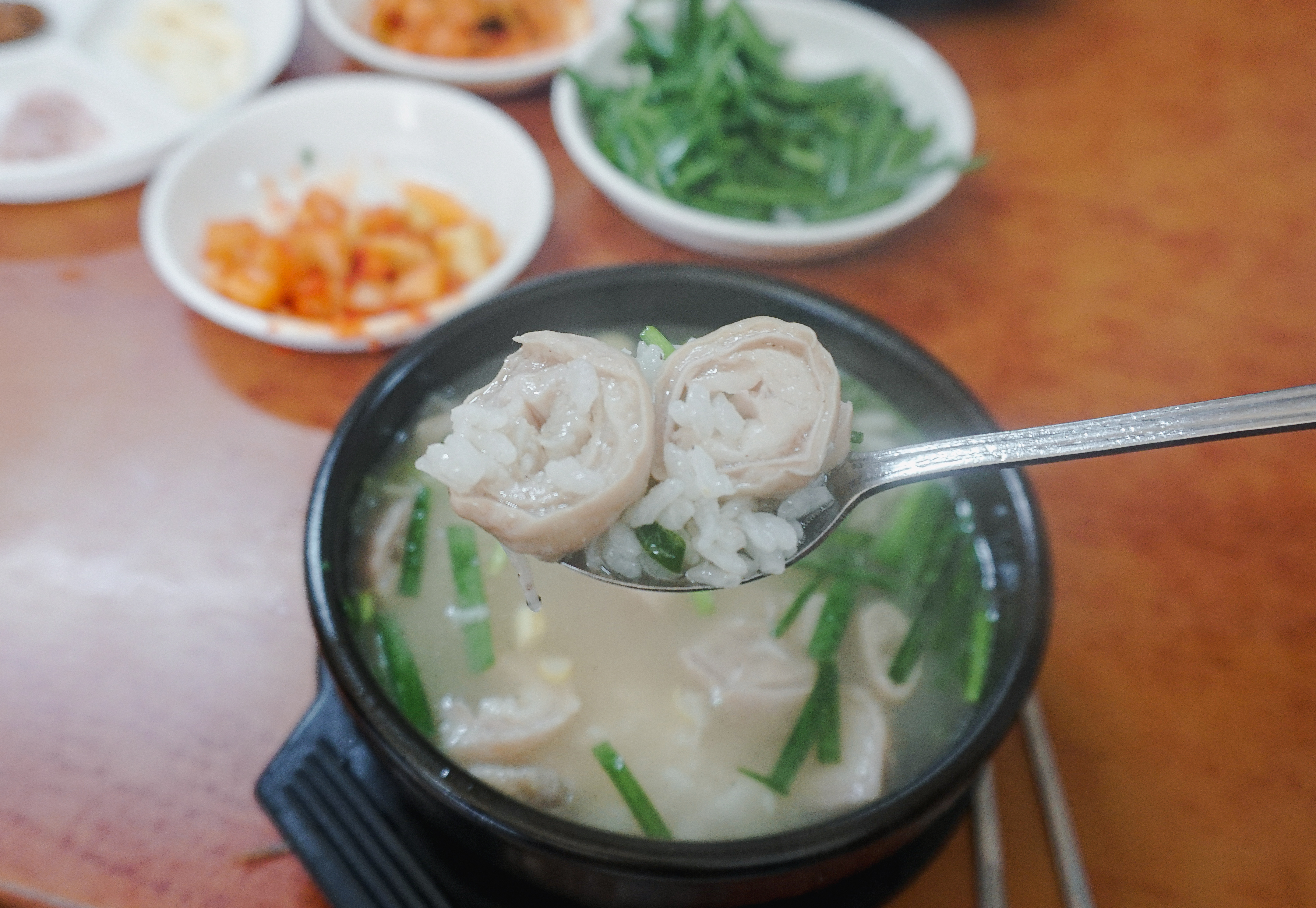 내장국밥에 경상도 쪽에서 '정구지'라 불리는 '부추'를 잔뜩 넣어 섞어주었고, 기호에 따라서 새우젓이나 양념장을 추가하여 먹으면 되었습니다. 저는 개인적으로 깔끔하게 먹는 것을 좋아하기 때문에 추가양념 없이 새우젓으로만 간을 해서 먹었습니다. 간간하면서 담백한 국물과 고소하면서 야들야들한 막창이 맛있었고, 잡내도 없었습니다.