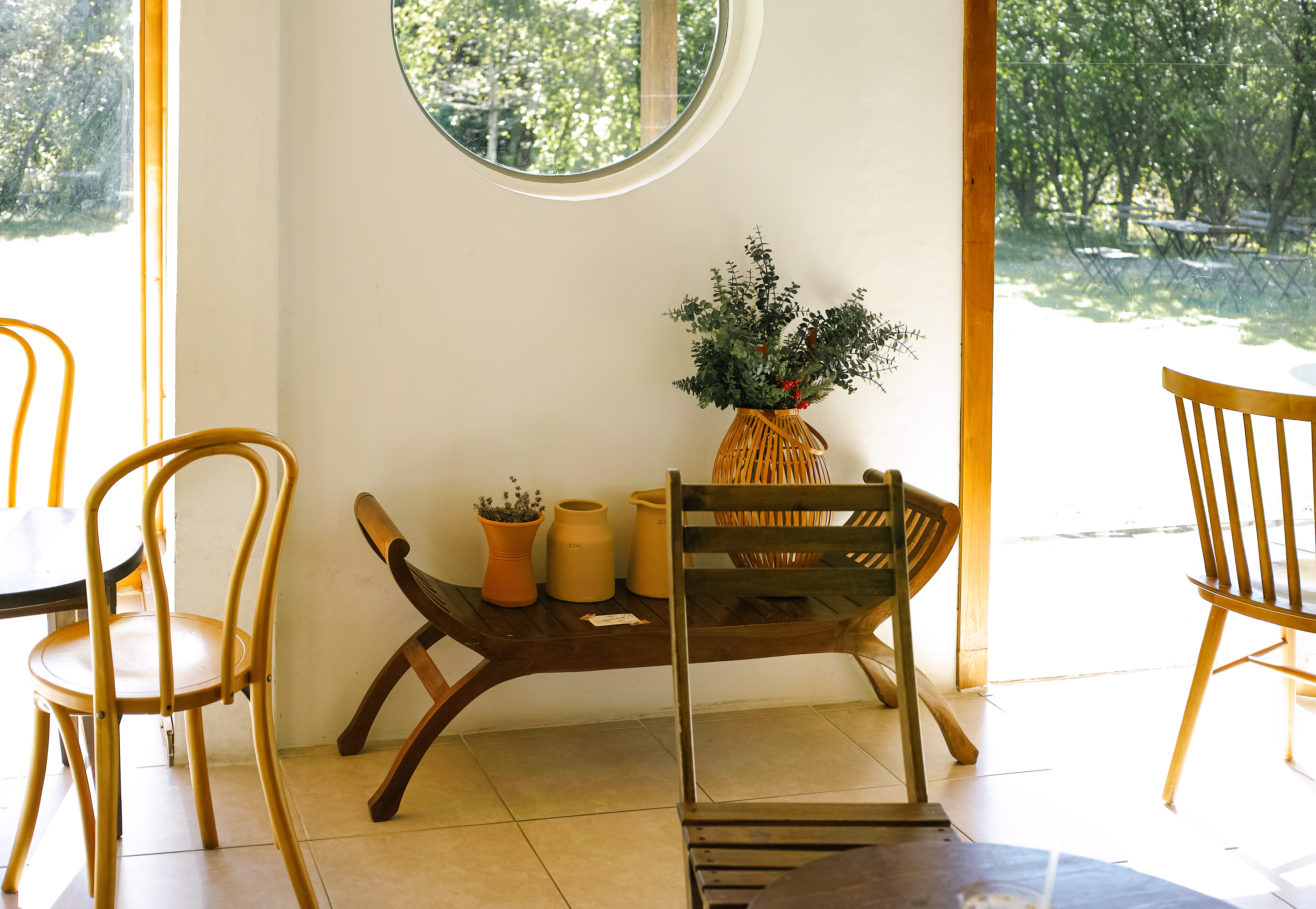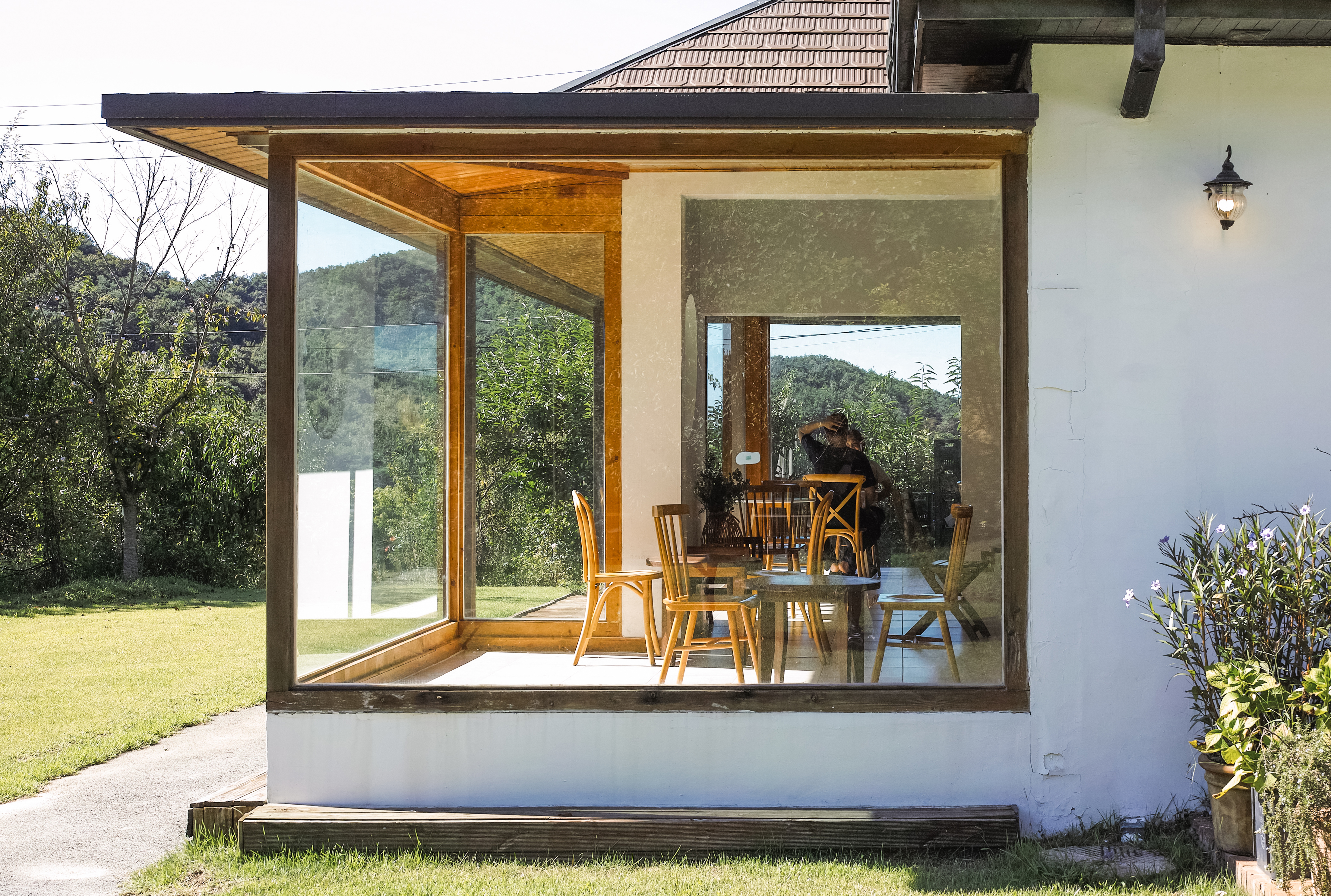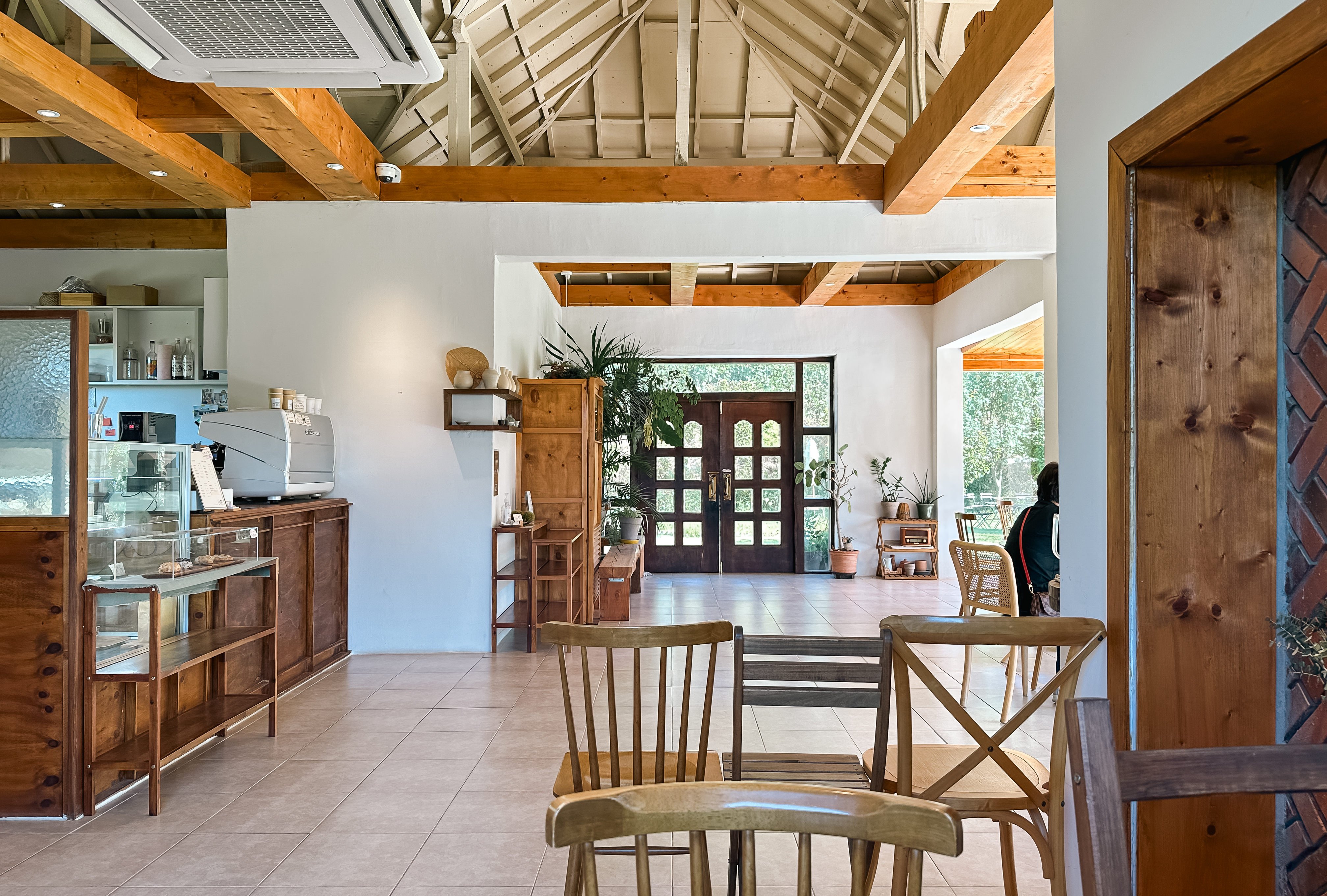 강천면 카페여주 본채의 분위기는 위와 같습니다. 실내는 꽤 넓은 공간이 마련되어 있었고, 지붕형태 그대로 노출을 하고 있어서 천정도 높아서 더 개방감이 좋았습니다. 그 밖에도 곳곳에 큼직한 창을 내어 카페 내부에 빛이 잘 들어 따뜻한 느낌이 참 좋더라고요.