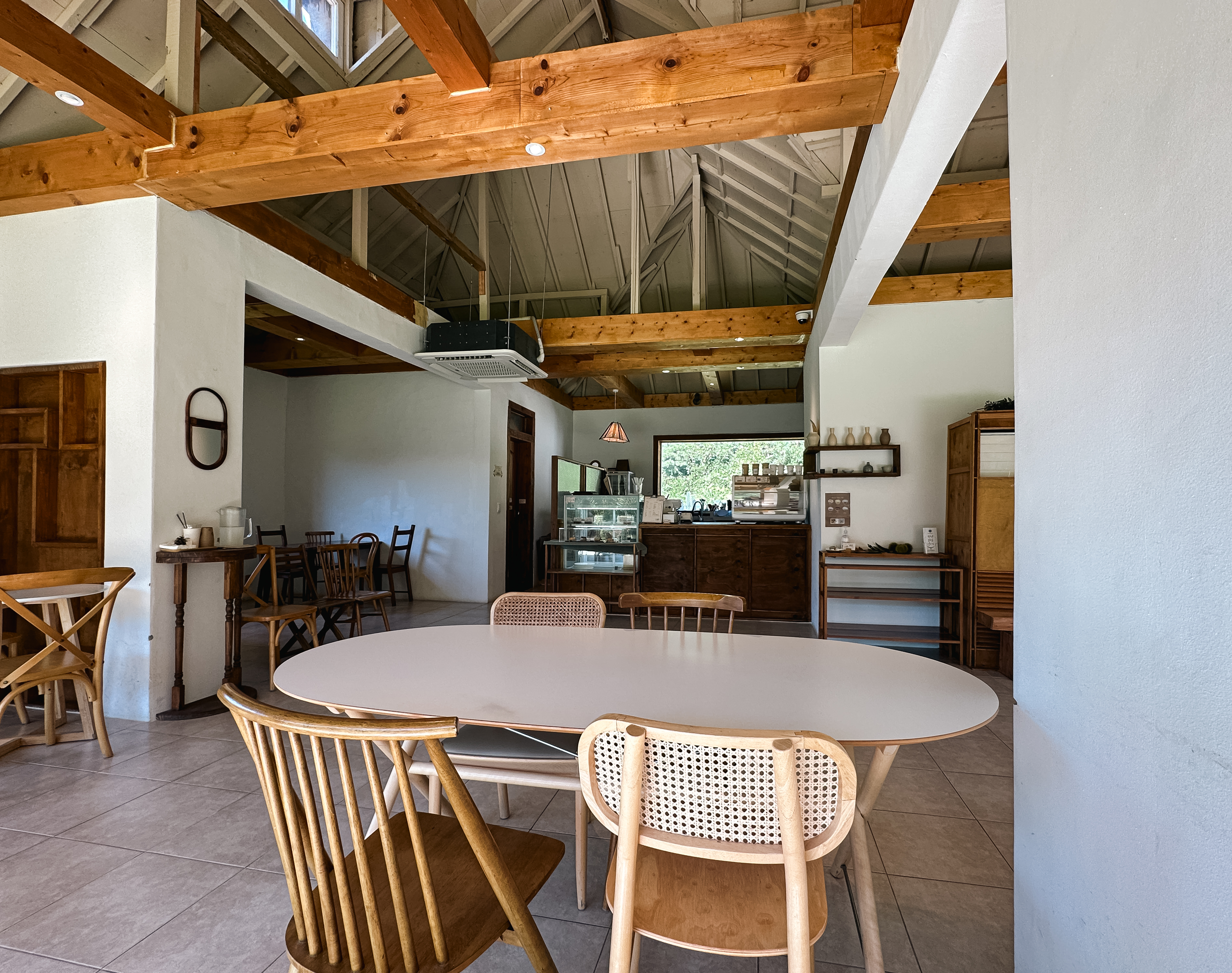 강천면 카페여주 본채의 분위기는 위와 같습니다. 실내는 꽤 넓은 공간이 마련되어 있었고, 지붕형태 그대로 노출을 하고 있어서 천정도 높아서 더 개방감이 좋았습니다. 그 밖에도 곳곳에 큼직한 창을 내어 카페 내부에 빛이 잘 들어 따뜻한 느낌이 참 좋더라고요.