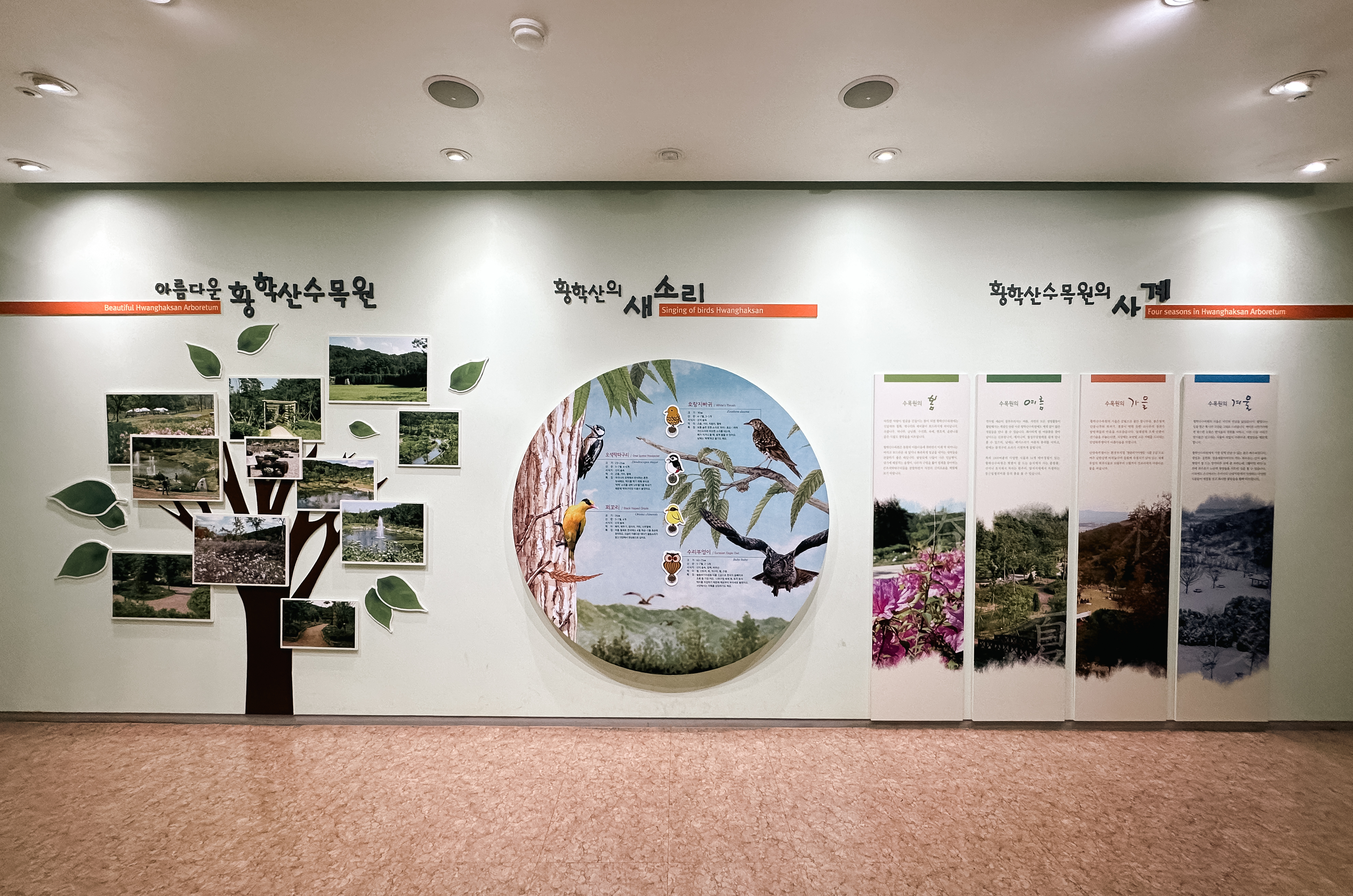 수목원에 잘 가꿔진 숲길을 따라서 탐방을 시작했습니다. 천천히 여유를 느끼며 걸어 다니면서, 곳곳의 사진을 담아보았습니다. 황학산수목원의 규모가 크기 때문에 모두를 소개해드리기는 어렵고, 다녀온 곳 중에 일부분을 포스팅에서 다뤄볼 예정입니다.