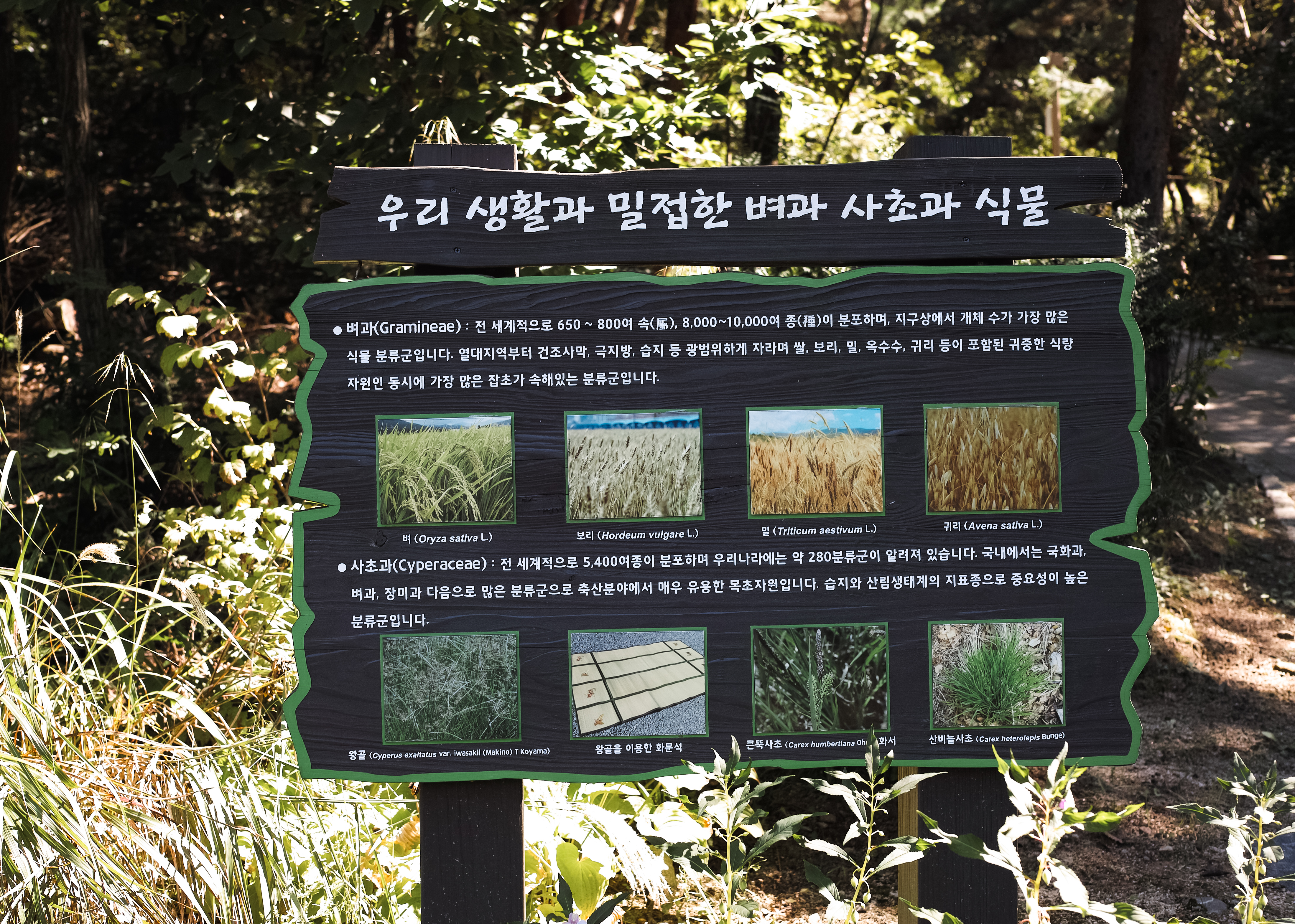 수목원에는 매룡지, 산림박물관, 연구온실, 난대식물원, 재배하우스, 매룡리고분, 풀향기정원, 양화소록원, 미니가든, 채원, 강돌정원, 항아리정원, 나이테광장, 산열매원, 석정원, 잔디피크닉장, 미로원, 산야초원, 자생식물보존원, 전망대, 벼과・사초과식물원, 습지원, 탐방로, 유아숲체험원 등이 있었습니다.