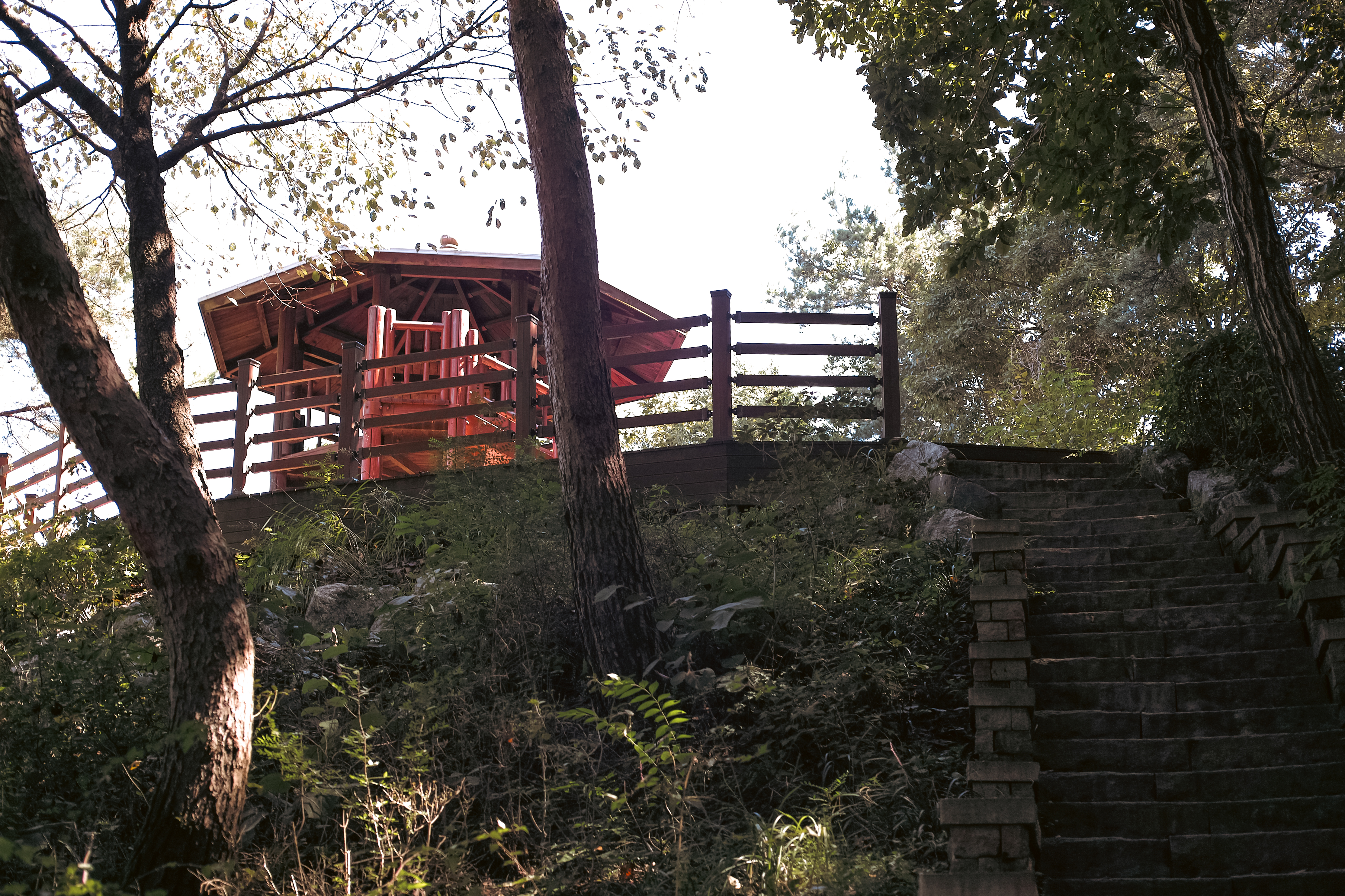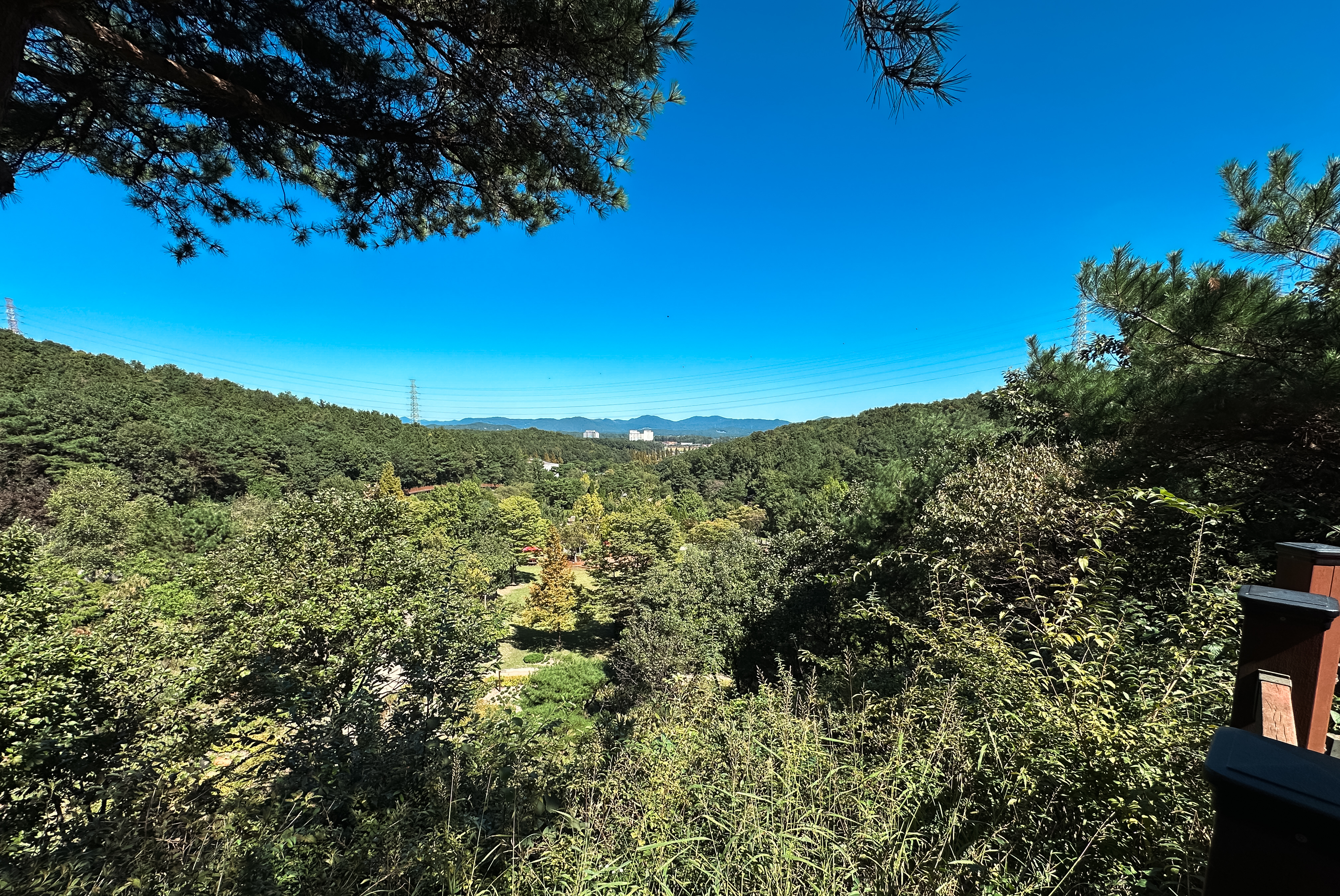 숲길을 따라 걸으며 전망대를 찾아갔습니다. 크게 볼거리는 많지 않았지만, 전망대에 오르니 시원한 산바람을 맞으니 기분까지 좋아지더라고요. 여기까지만 해도 황학산수목원의 꽤 많은 부분을 둘러본 것 같습니다. 조금만 더 힘내서 나머지를 구경해 보시죠.