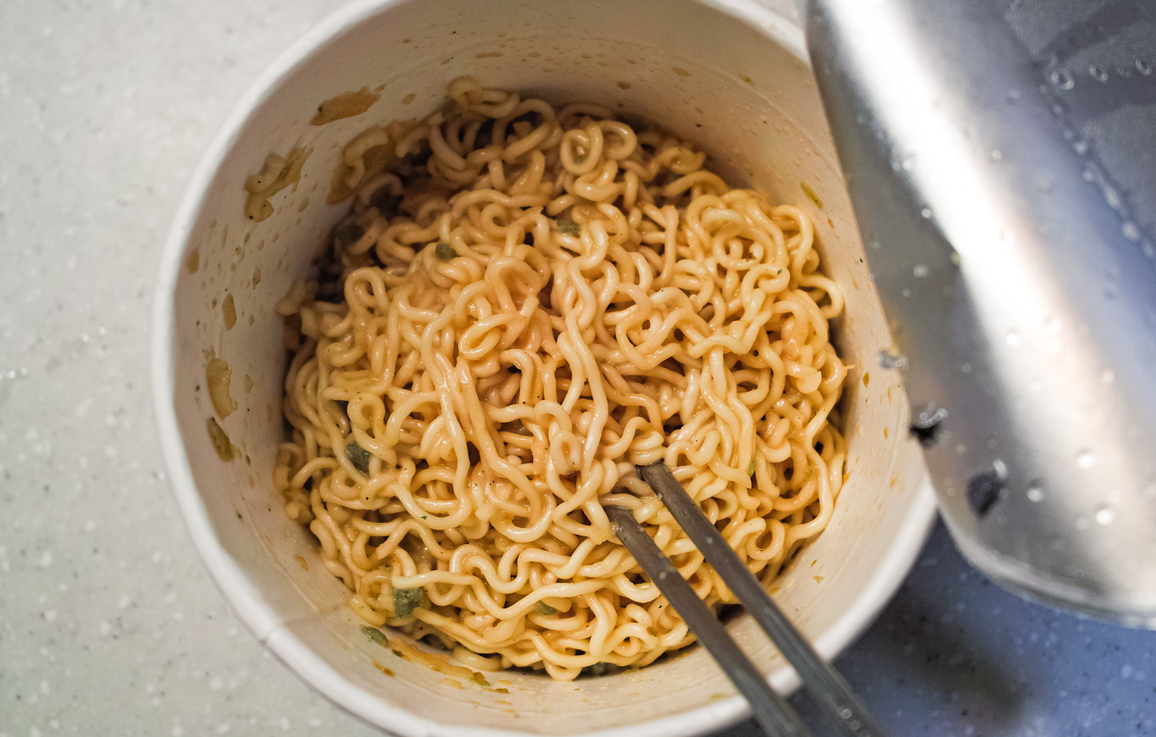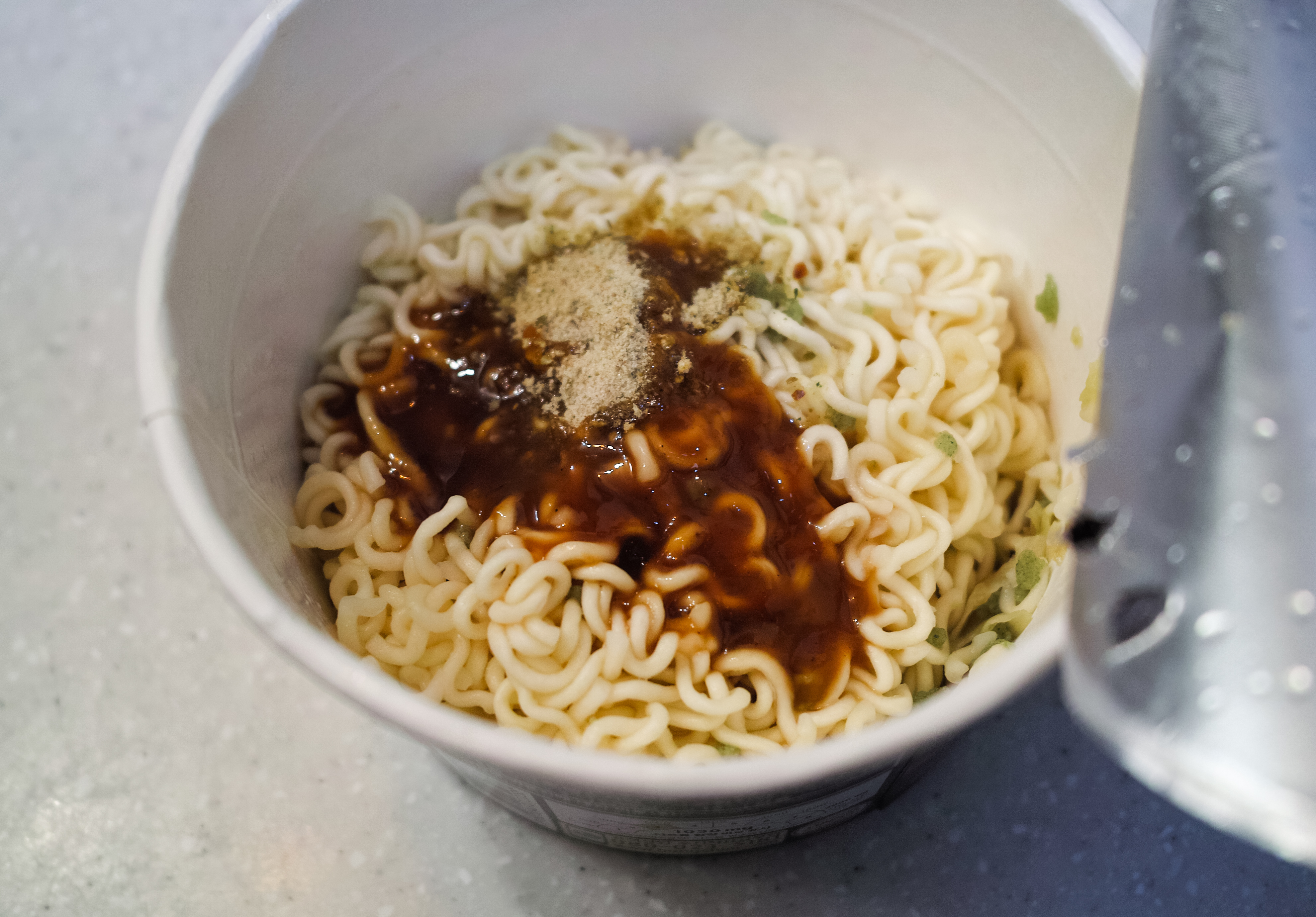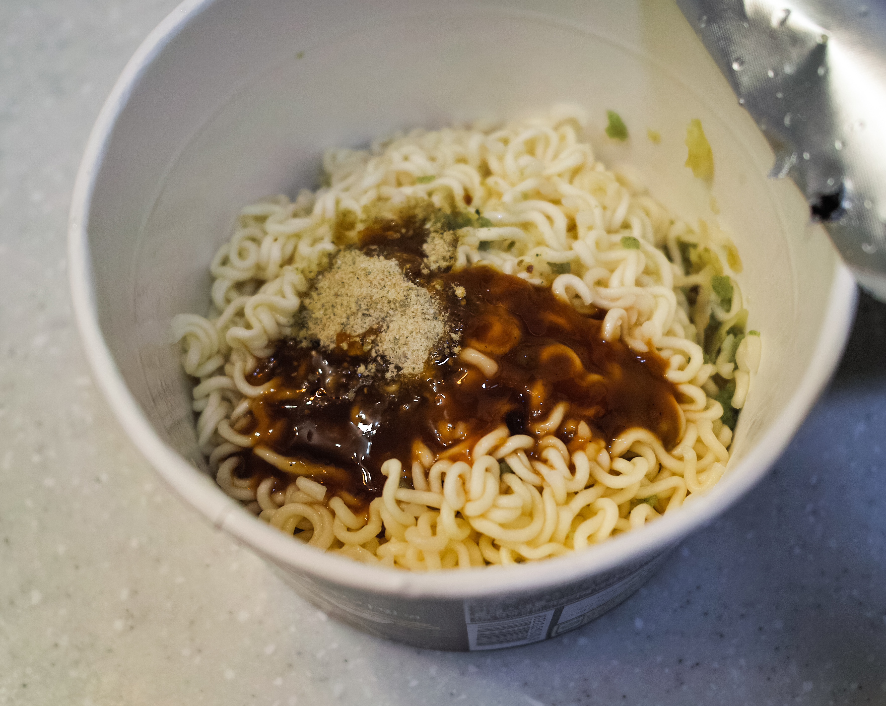 먹태깡 큰 사발면의 모습은 위와 같습니다. 일본의 볶음면(?) 컵라면과 비슷한 느낌으로 물을 붓고 만드는 컵라면이었는데, 조리방법도 은근히 간단해서 가볍게 먹을 수 있었습니다.