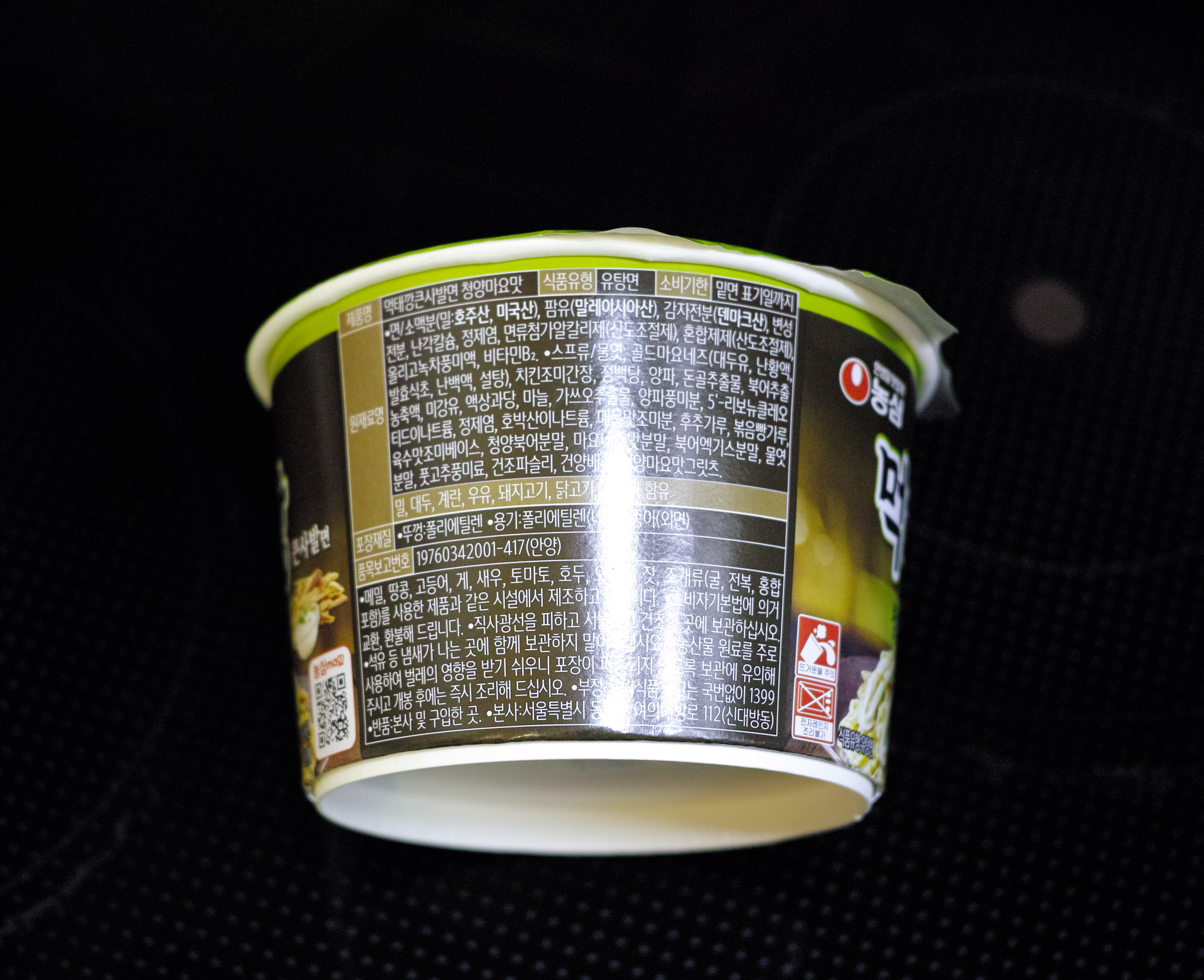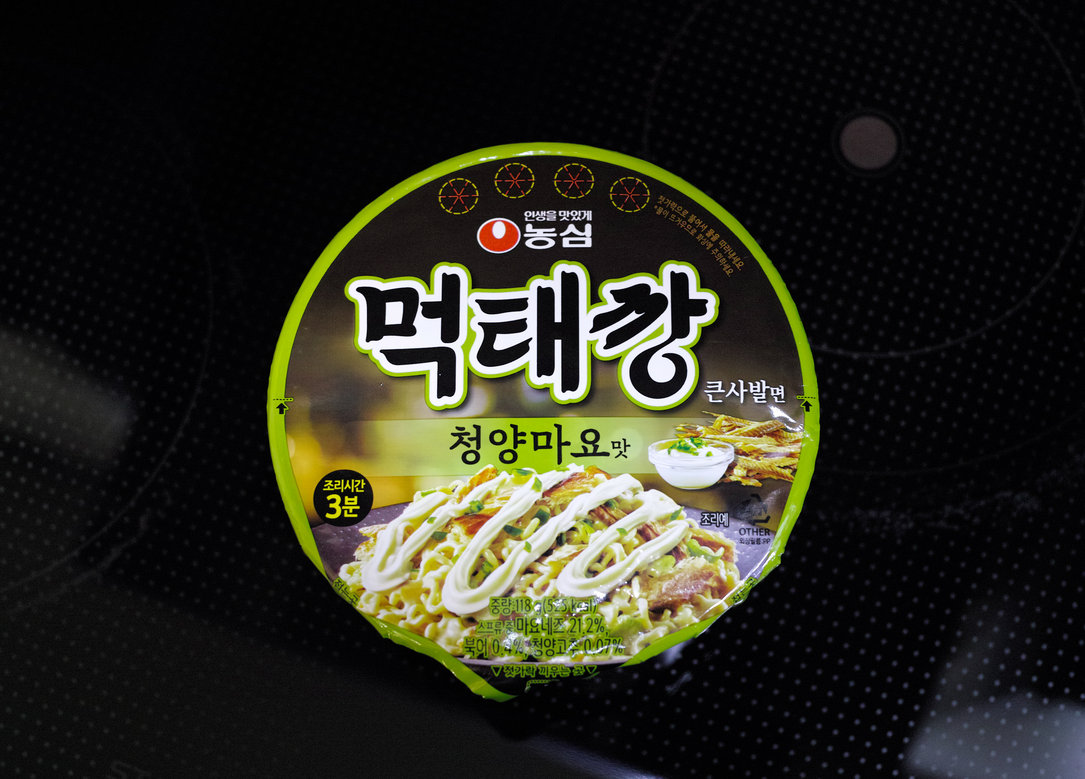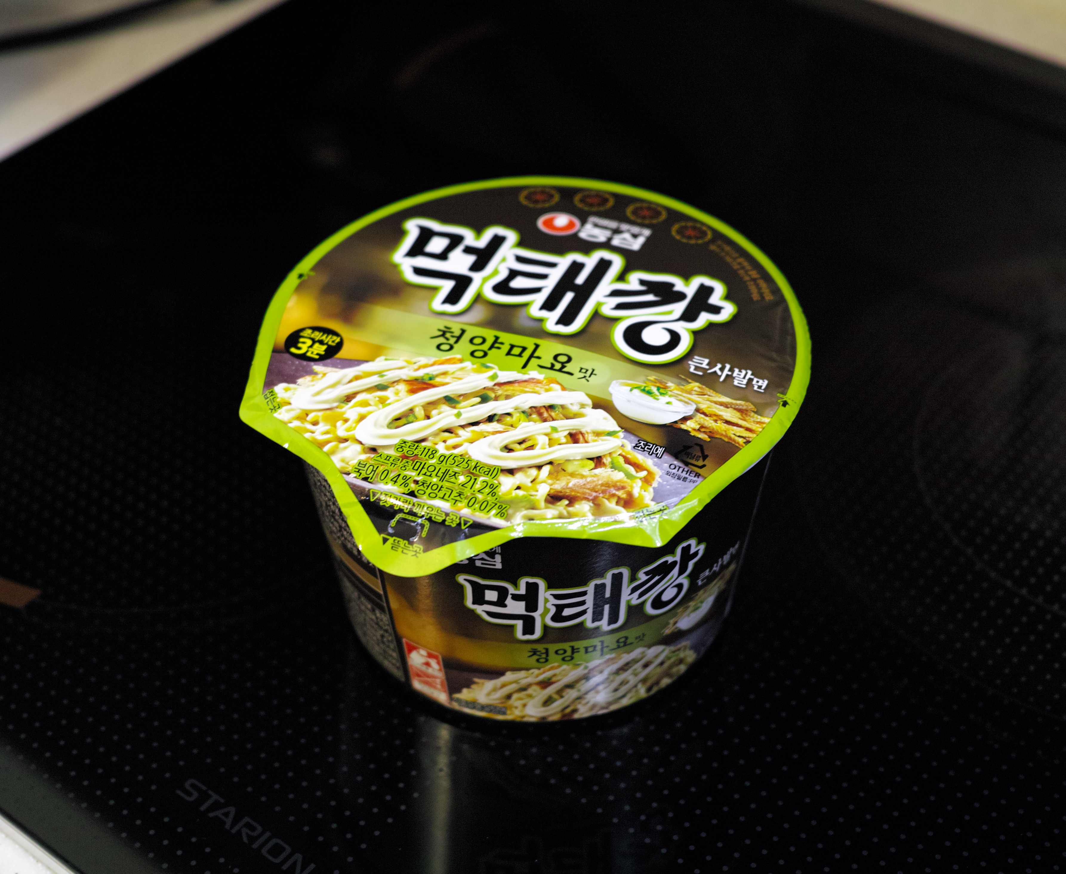 정식 명칭은 '농심 먹태깡 큰사발면 청양마요맛'으로 위 모습과 같이 생겼습니다. 먹태깡은 새우깡 모양의 먹태맛 과자로 먹태깡의 달콤 짭짤한 맛을 라면으로 잘 살린 것 같더라고요. 먹태깡 큰사발면은 온라인에서 약 1,650원 정도에 판매 중입니다.