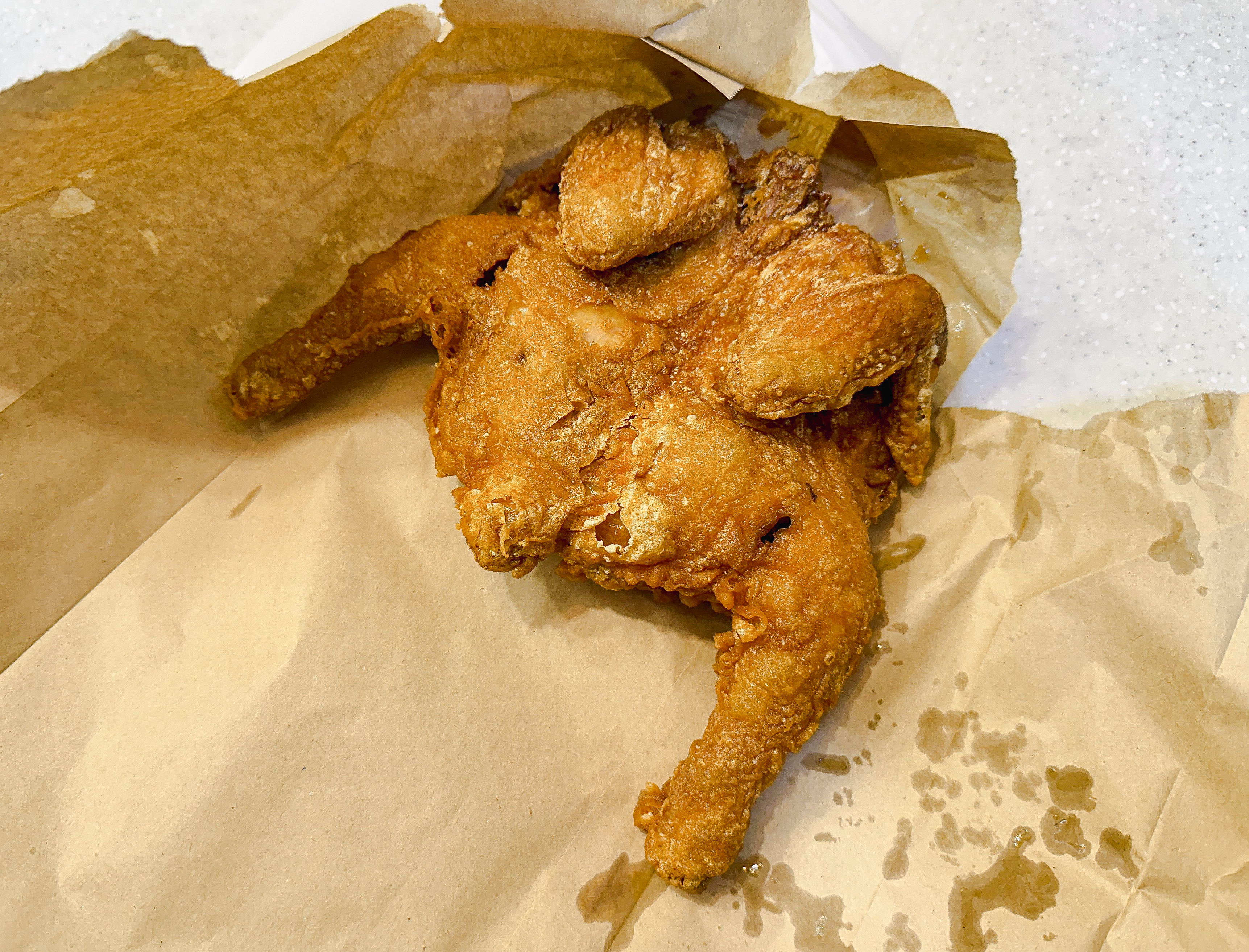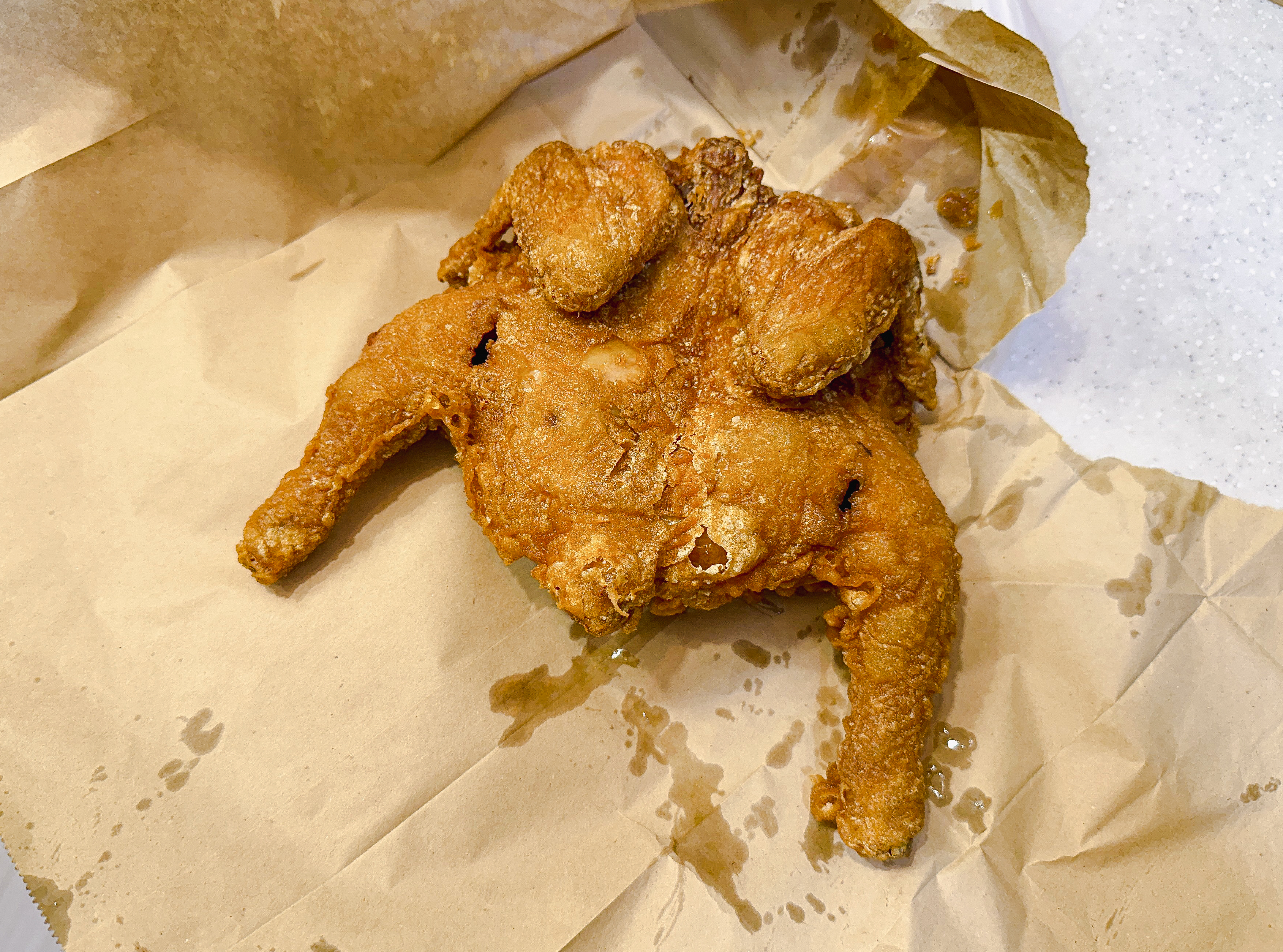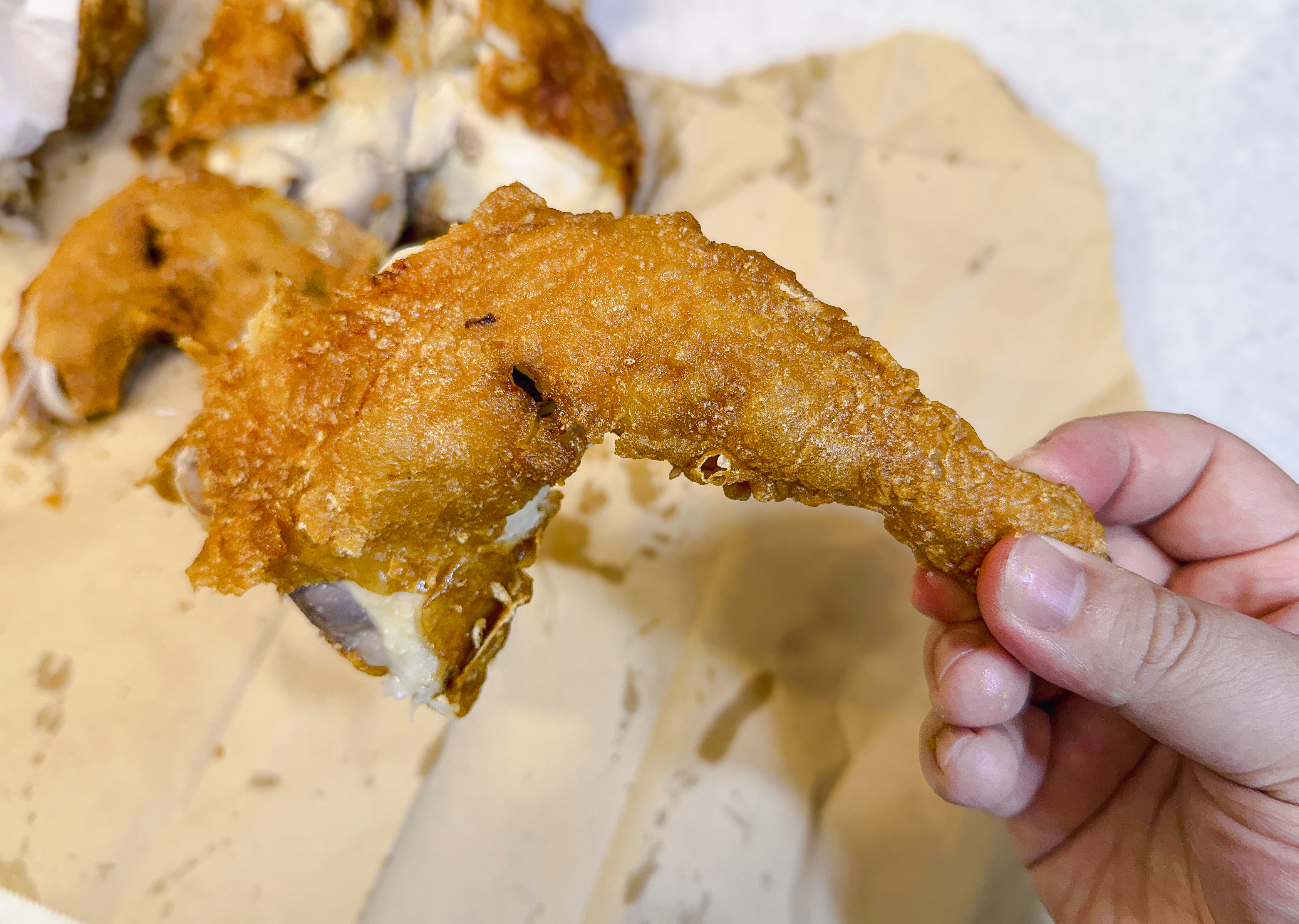 통닭을 주문하고 나오는 데까지 약 10분 정도 소요되었습니다. 명가통닭의 옛날통닭 모습은 위와 같습니다. 바삭한 튀김옷에 촉촉하고 부드러운 속살이 있는 이 치킨은 9,000원이라는 가격에 비해서 크게 나쁘지 않았고, 저는 오히려 요즘 들어 크리스피 한 튀김옷을 치킨에 비해서 이렇게 옛날통닭이 더 입맛에 잘 맞는 것 같습니다.