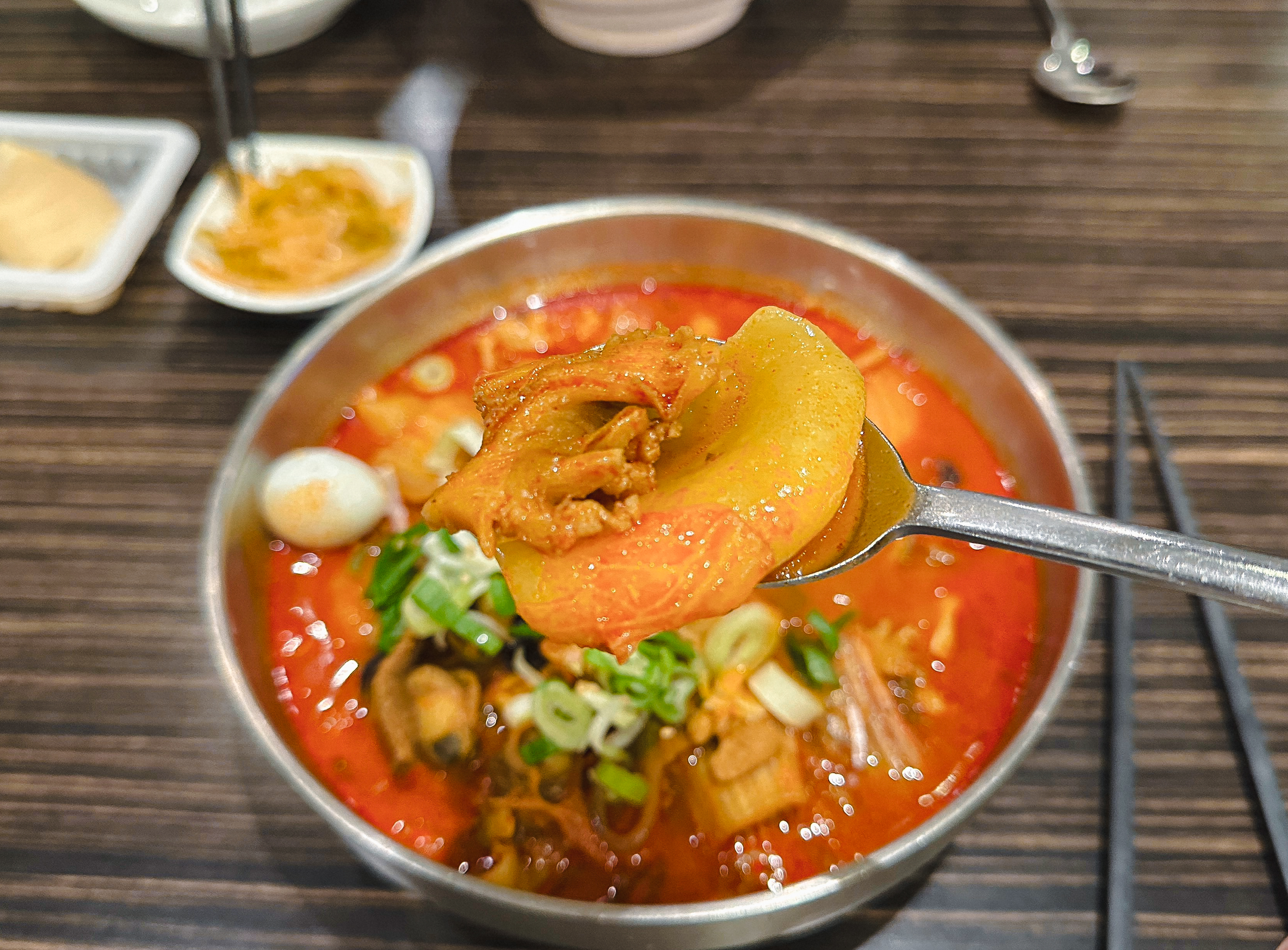 추가로 국물에 밥을 말아먹기 위해 밥솥에서 밥을 직접 덜어왔습니다. 꼬들한 밥과 국물이 잘 어울려서 맛있게 먹을 수 있었고, 덕분에 국물을 꽤나 비울 수 있었던 것 같습니다.