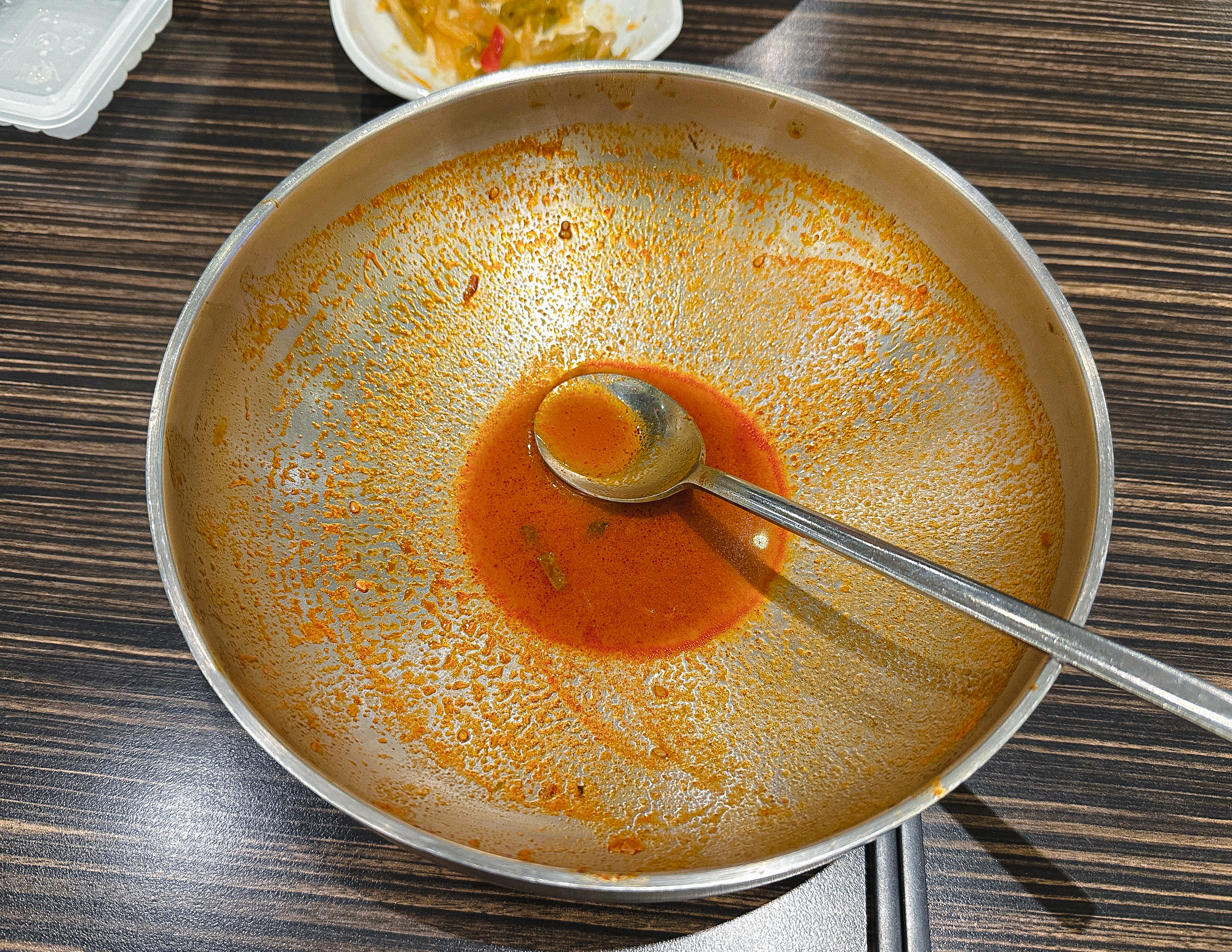 추가로 국물에 밥을 말아먹기 위해 밥솥에서 밥을 직접 덜어왔습니다. 꼬들한 밥과 국물이 잘 어울려서 맛있게 먹을 수 있었고, 덕분에 국물을 꽤나 비울 수 있었던 것 같습니다.