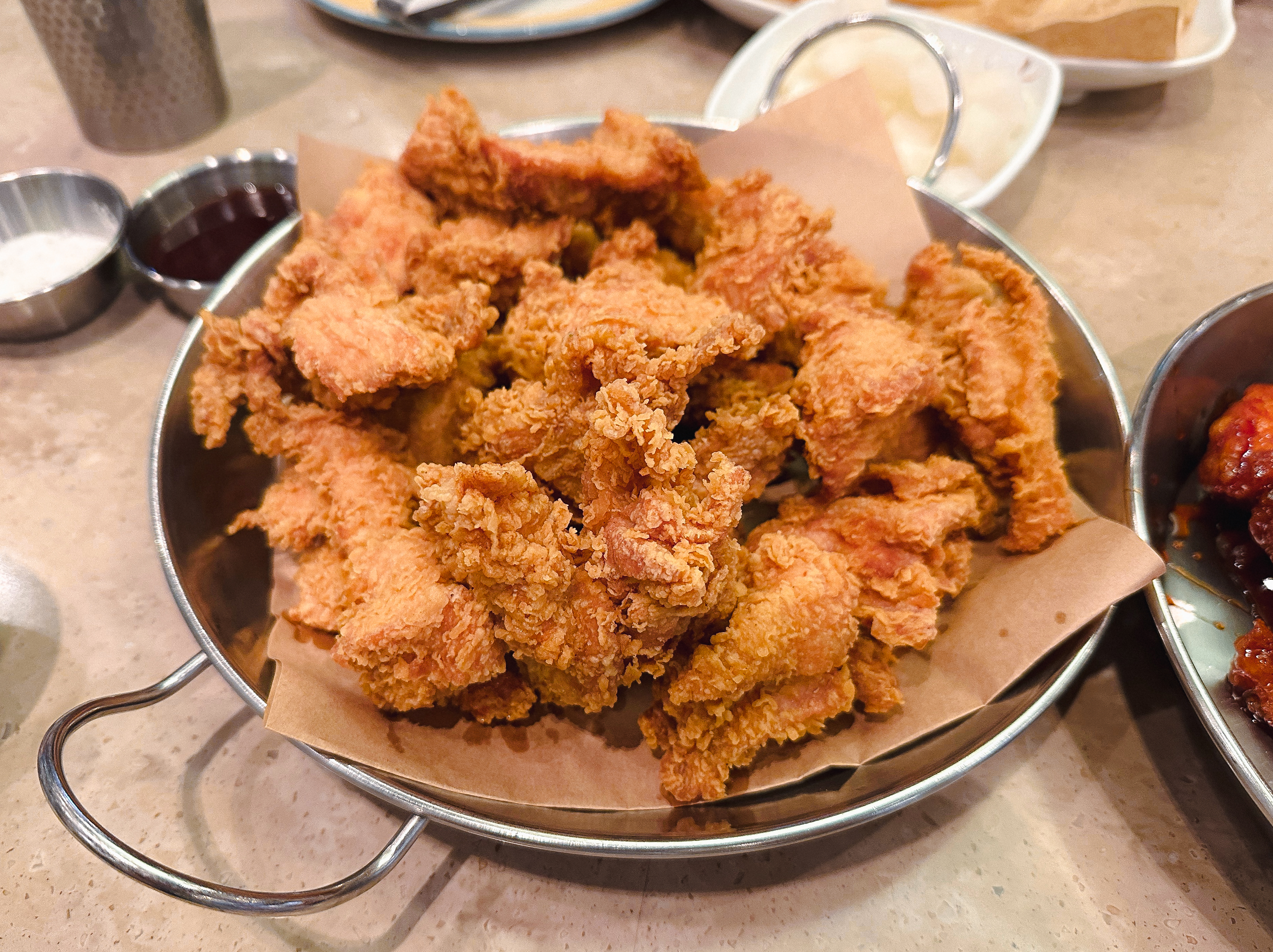 본사가 있는 문정동 BBQ에 이탈리아에서 온 친구를 데리고 방문했습니다. 아무래도 한국 치킨 중에 가장 스테디셀러인 BBQ 황금올리브 치킨과 양념치킨을 소개해주었는데, 다행히 만족하며 먹었고 덕분에 다음에 제가 이탈리아에 여행하게 되거든 가이드해주기로 약속도 얻어낸 하루였습니다.