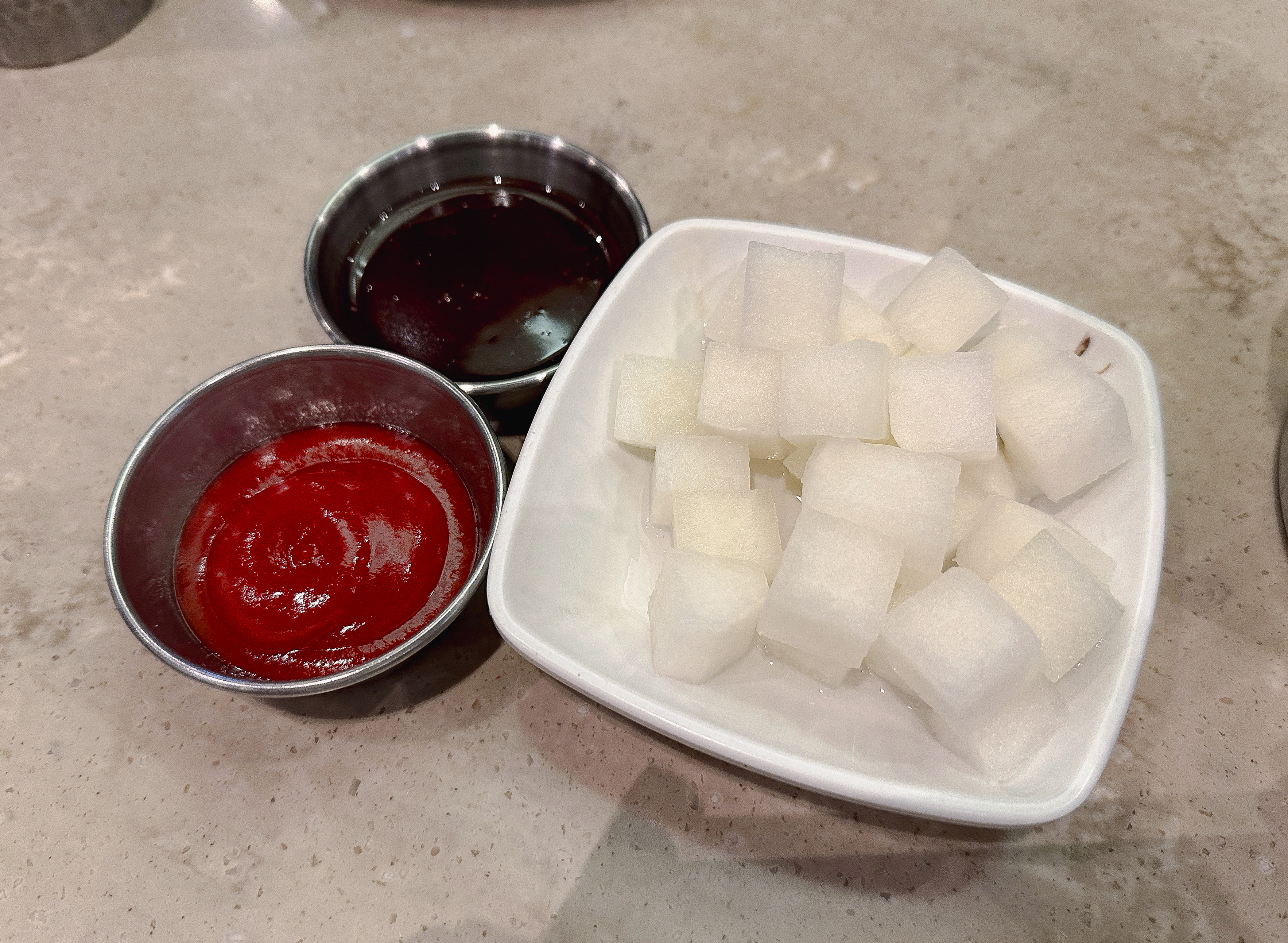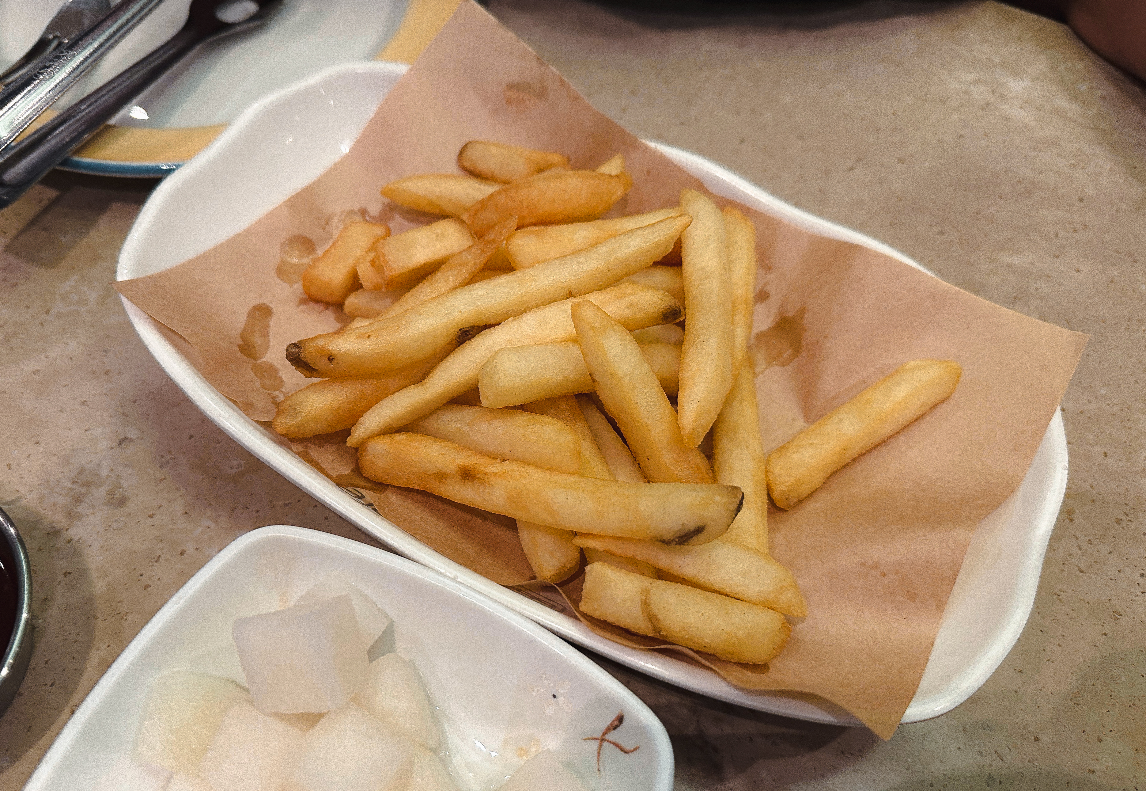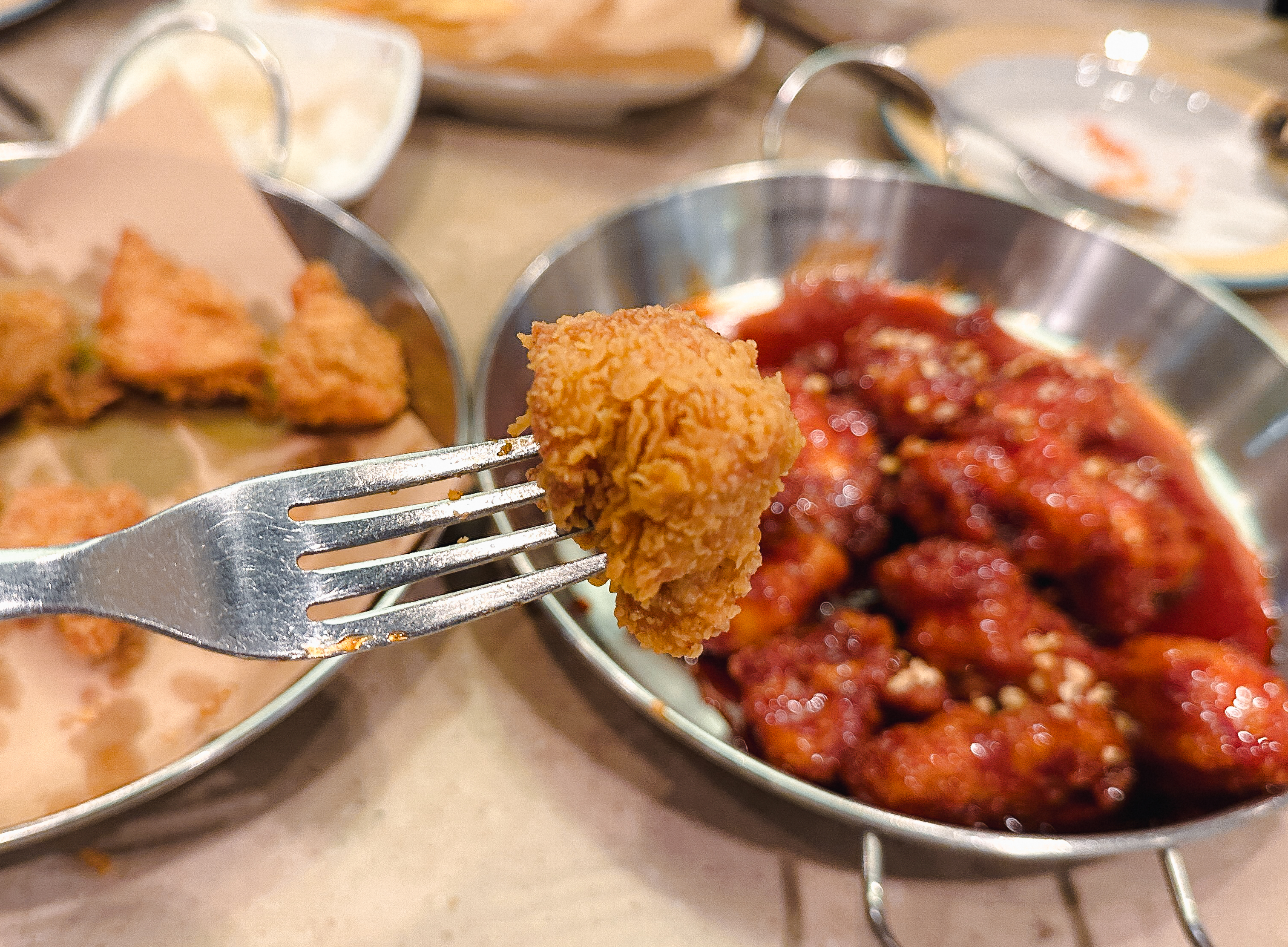 원래는 접시를 사용하기보다는 치킨 접시에서 직접 집게로 가져다 먹었는데, 외국인 친구에게 맞춰주어 치킨을 접시에 따로 덜어낸 다음 포크로 먹었습니다. 평소 습관이 들어있다면 편했을 텐데, 안 하던걸 하려니 어색하긴 했지만, 나중에 이탈리아에 가게 되면 가이드해준다는 말에 열심히 적응하려 노력했습니다.