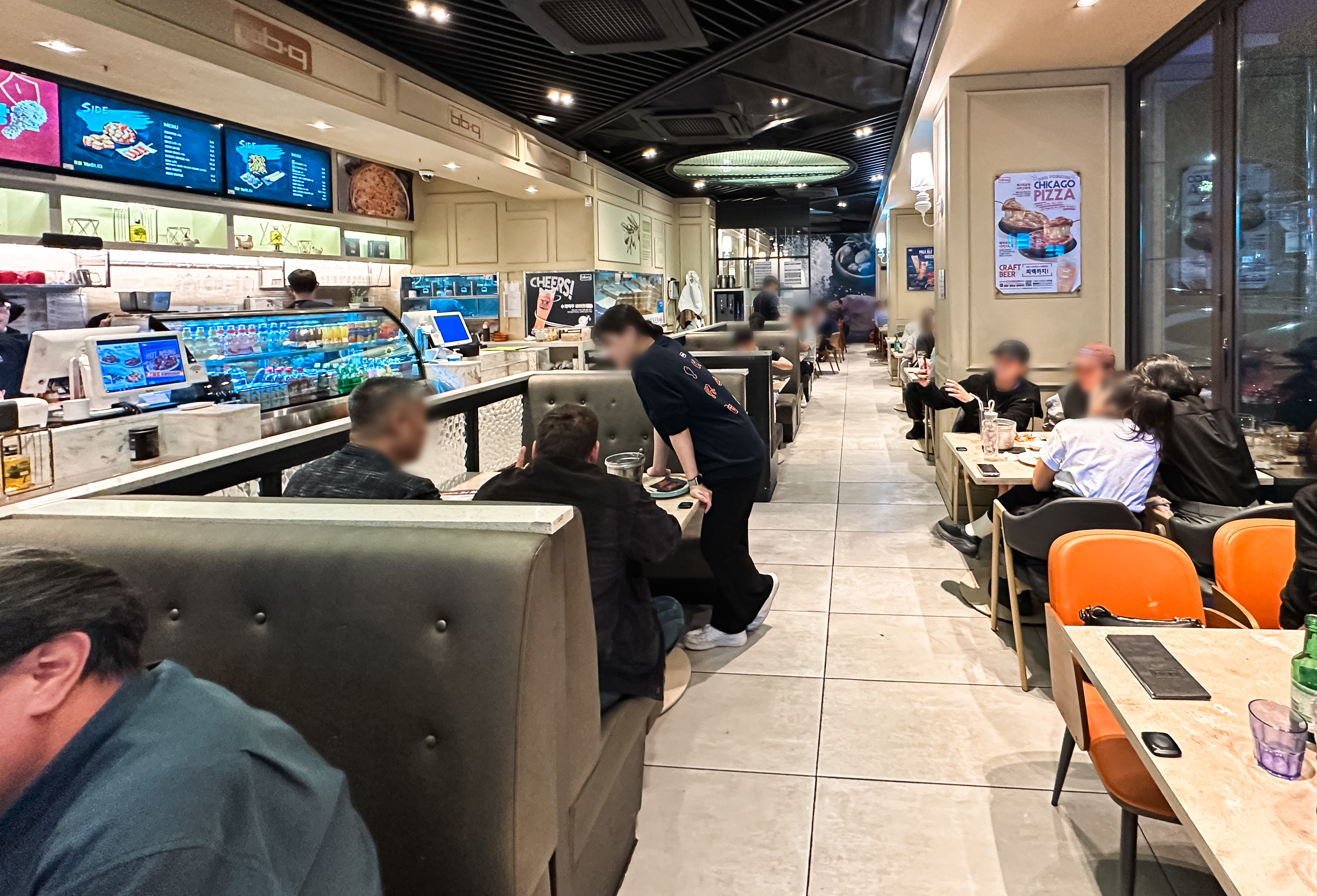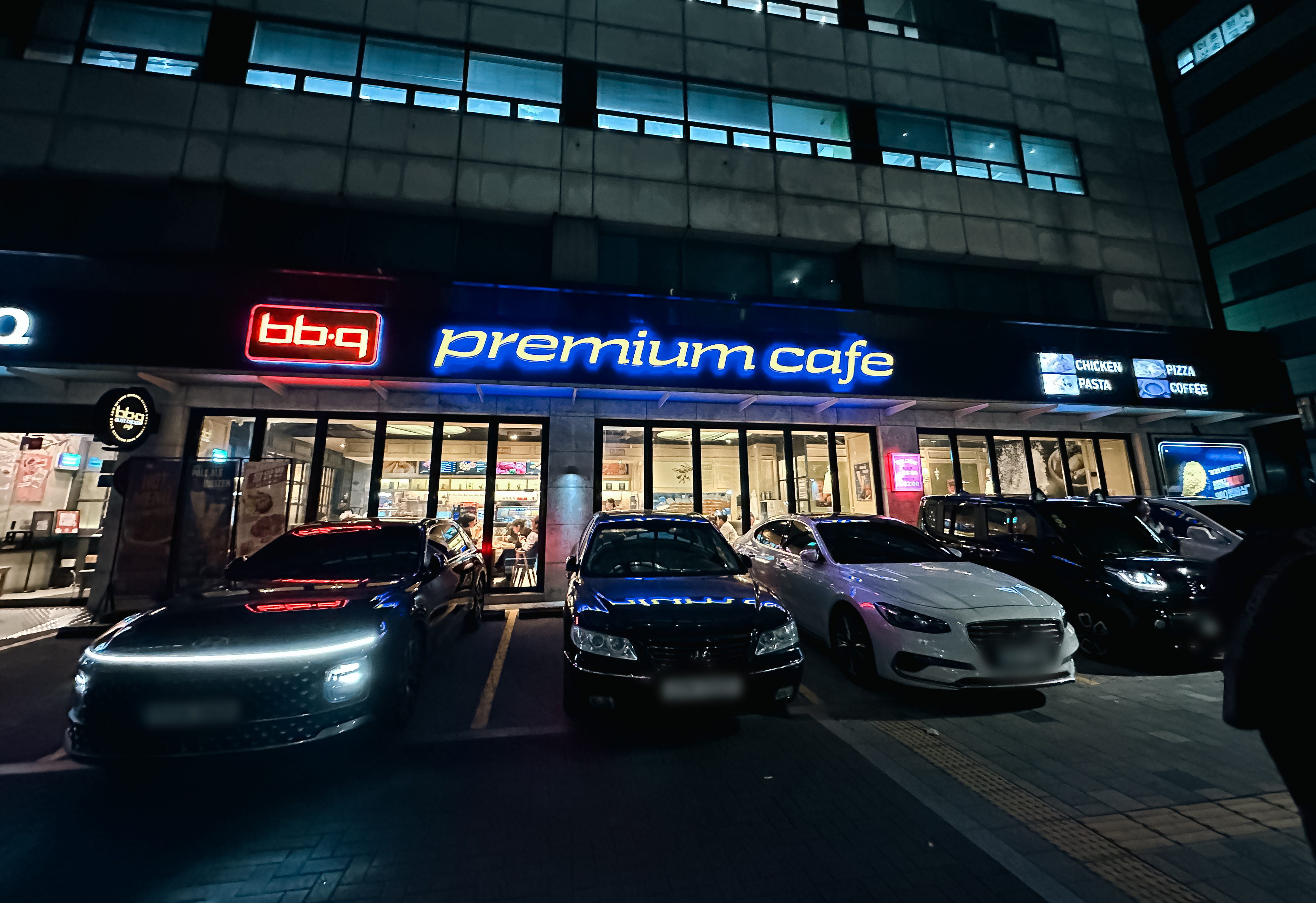 BBQ 본사가 운영하는 치킨집은 서울 송파구 중대로 64, 제너시스빌딩 1층에 위치해 있습니다. 주차공간은 건물 주위로 약 10대가량 가능했습니다. 가게의 간판은 ⎡BBQ 프리미엄 카페⎦라고 되어있었습니다. 가게 내부는 꽤 넓은 편이었고, 깔끔한 분위기였습니다.
