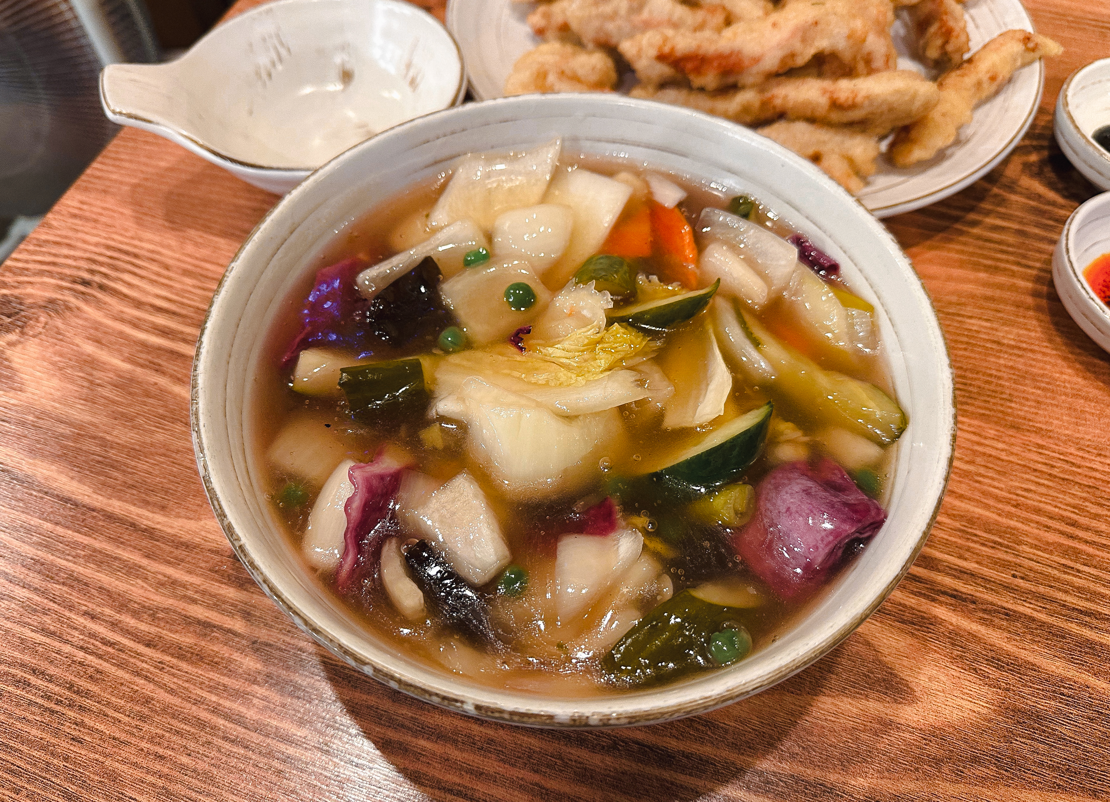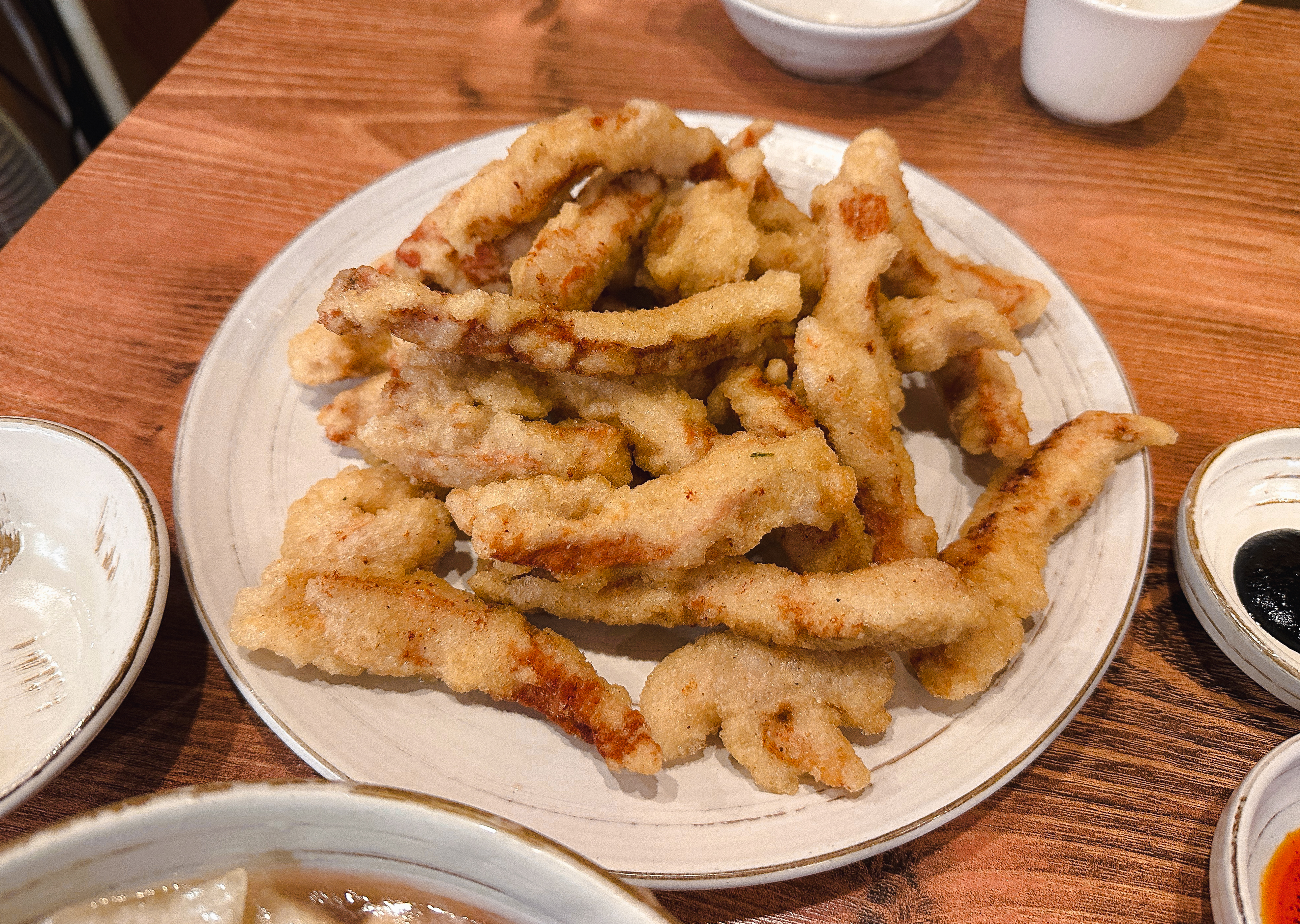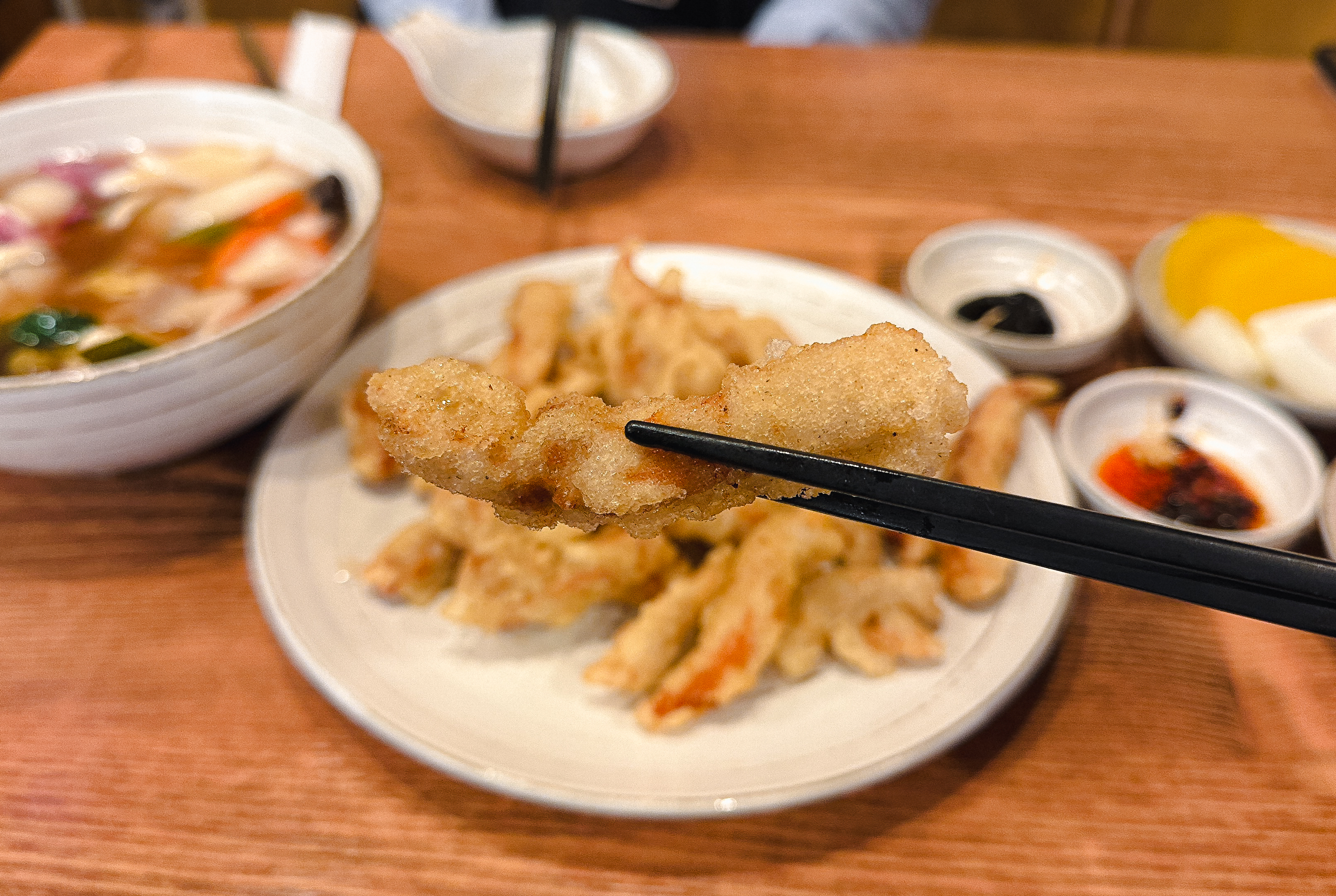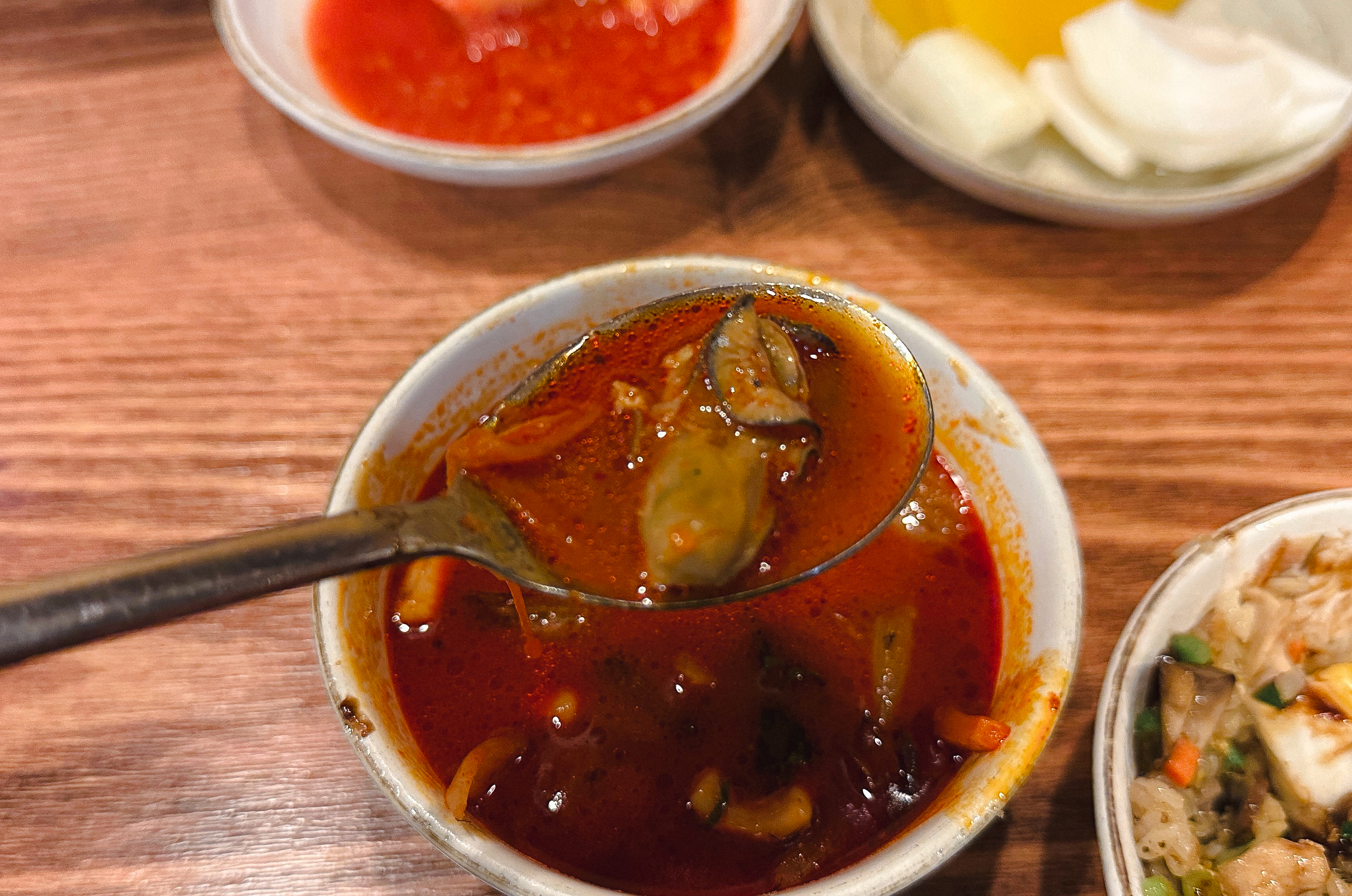 탕수육과 볶음밥 구성을 주문하면 나오는 짬뽕국물에는 굴과 오징어 등 해산물이 다양하게 들어있는데, 부족하면 추가로 더 주시기도 하더라고요. 짬뽕국물도 웬만한 중식당보다 진하고 맛있고, 해산물도 신선해서 자꾸만 손이 갑니다.
