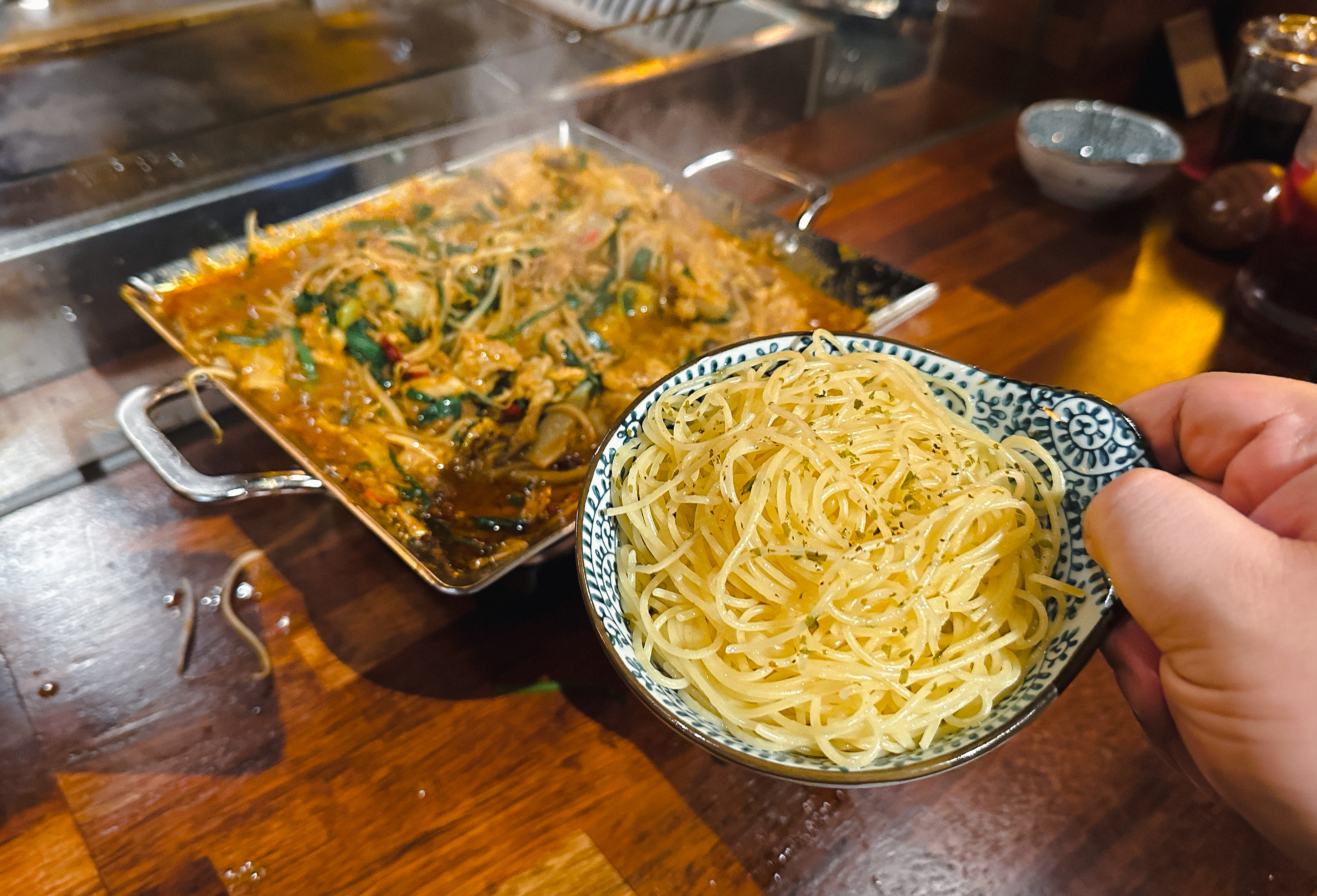 참고로, 저의 추천은 철판요리가 전체적으로 기름을 많이 쓴 요리이기 때문에 자칫 느끼하게 느낄 수 있는데, 여기에 시원한 하이볼을 같이 곁들이면 기름진 것도 잡아주고 맛있게 먹을 수 있었습니다. 타키의 와규블랙타이거를 어느 정도 먹은 다음 오사카식철판볶음을 먹었습니다.
